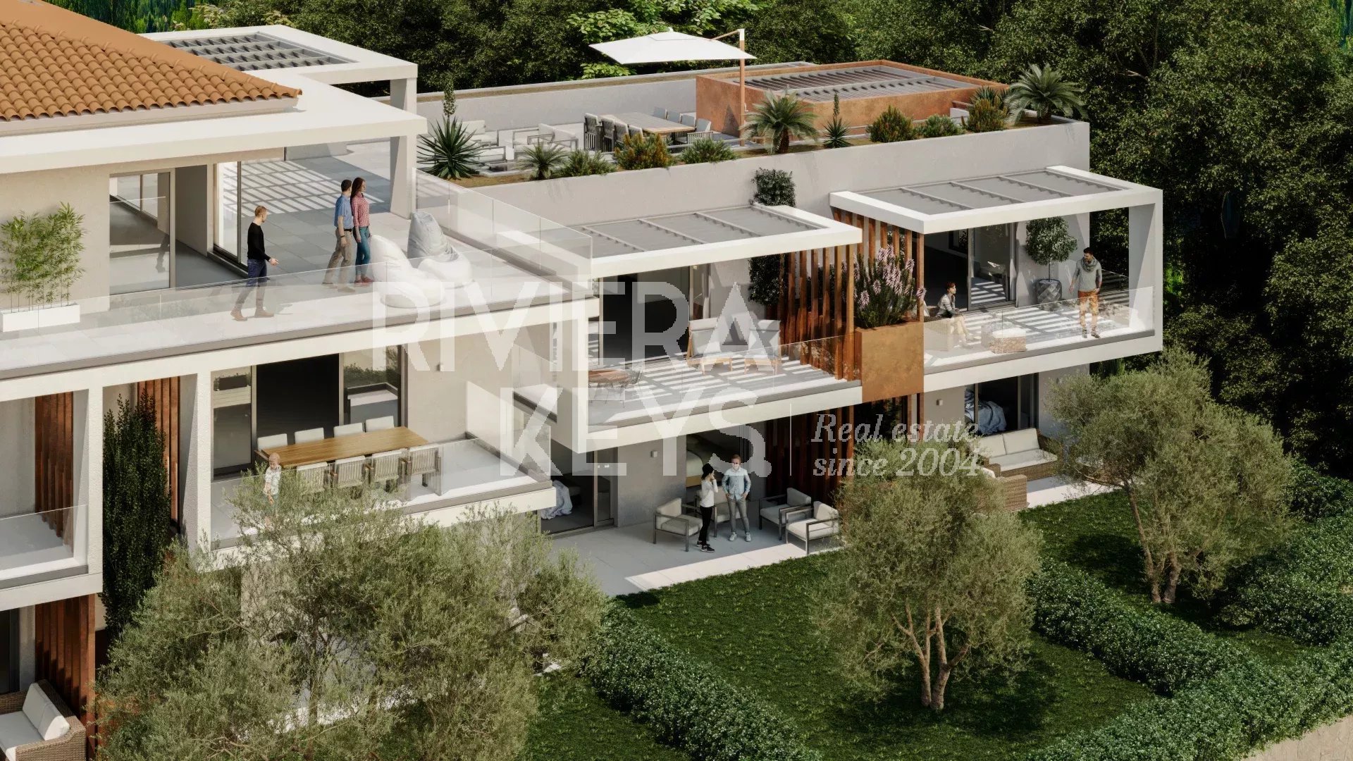 In der charmanten provenzalischen Stadt Biot, zwischen Cannes und Nizza, bietet diese neue Wohnanlage nur 5 Wohnungen, zwischen 140 und 145 m² auf zwei Ebenen. Die Wohnungen haben alle 3 Schlafzimmer und 2 Bäder, große Terrassen und einen Garten von 75 bis 130 m².