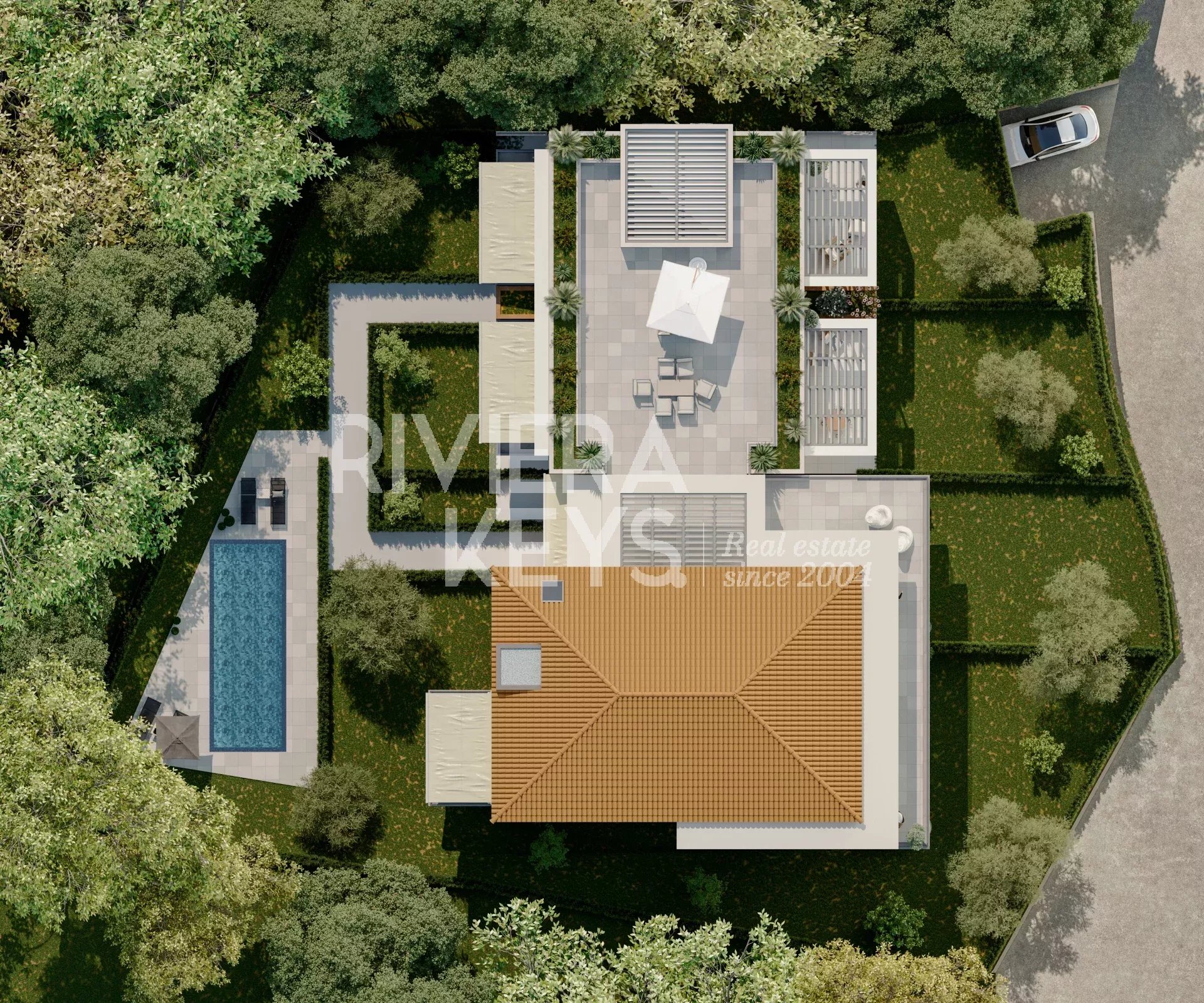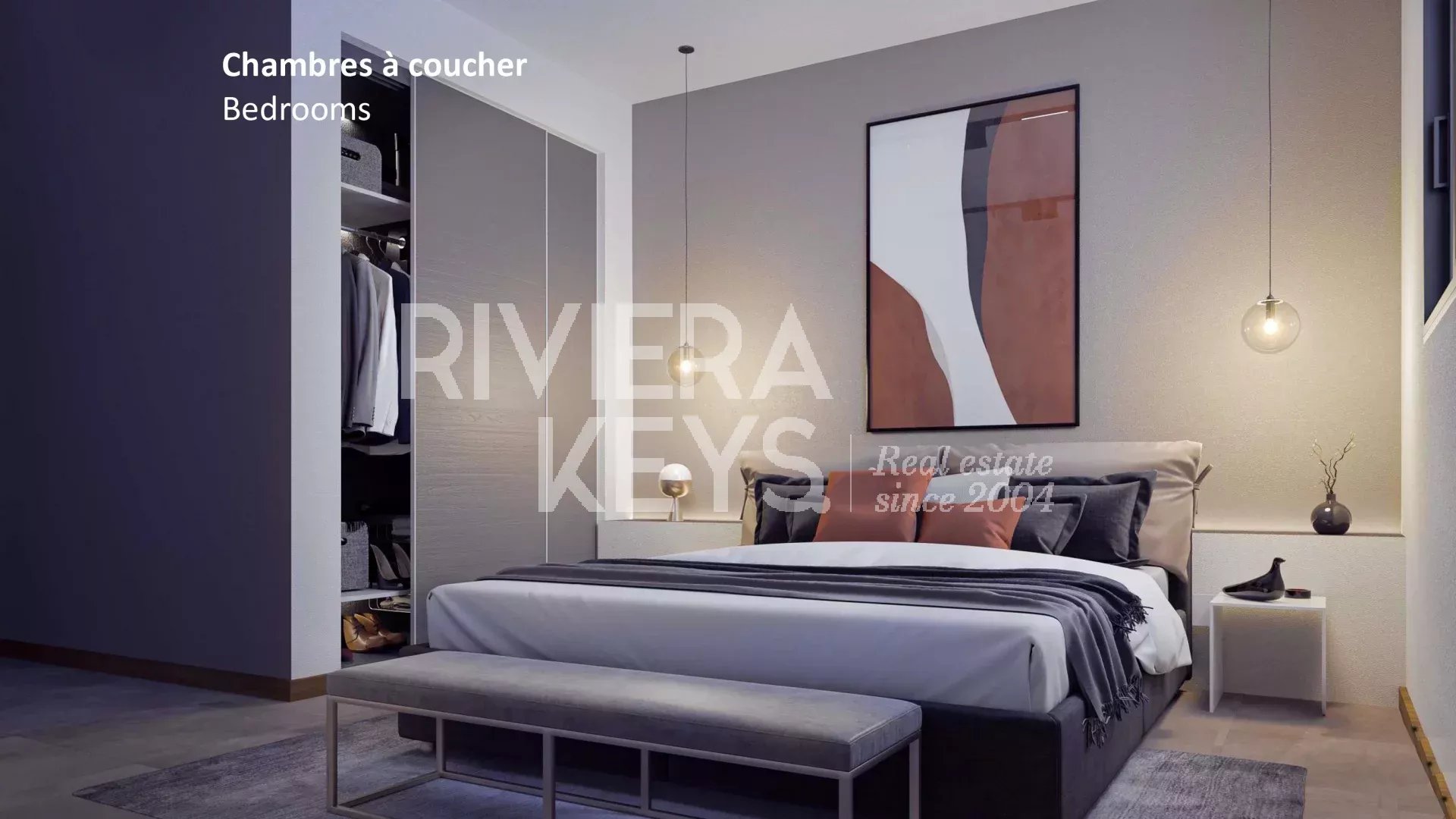 Die Wohnungen sind modern und elegant gestaltet und verfügen über eine hochwertige Ausstattung: Eingebaute Klimaanlage mit Warm- und Kaltluft, Fenster mit Aluminiumrahmen, elektrische Fensterläden, Schiebetüren, die in die Wand eingelassen sind, Bodenfliesen 90x90 cm und Wandtoiletten. Die gesicherte Anlage liegt in einem wunderschön gestaltetem Park mit Schwimmbad für die Bewohner.