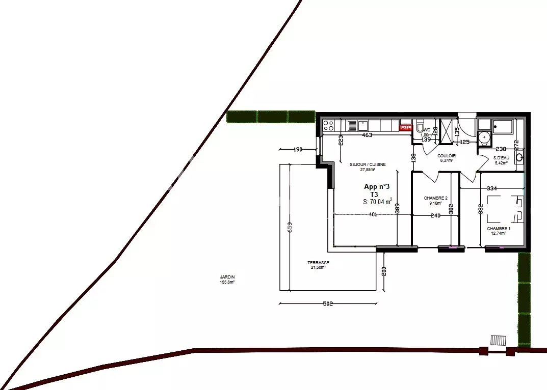 • 1 Terrasse 22 m²