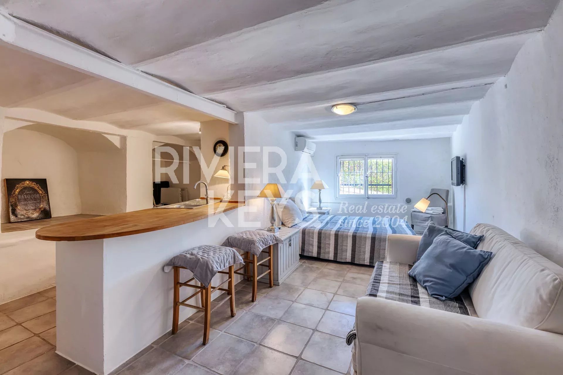 Ein eigenes Studio von 33,45 m² ergänzt die Immobilie. Über eine Treppe von der Terrasse oder einen privaten Eingang von der Straße erreichbar, verfügt es über eine Kochnische, Stauraum und ein Badezimmer mit WC – ideal für Gäste, um Jugendlichen ein unabhängiges Zimmer zu bieten oder ein Büro einzurichten.