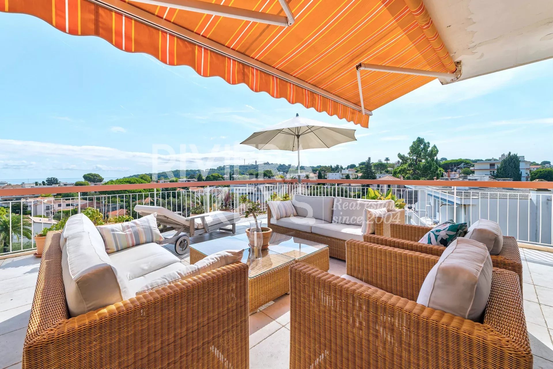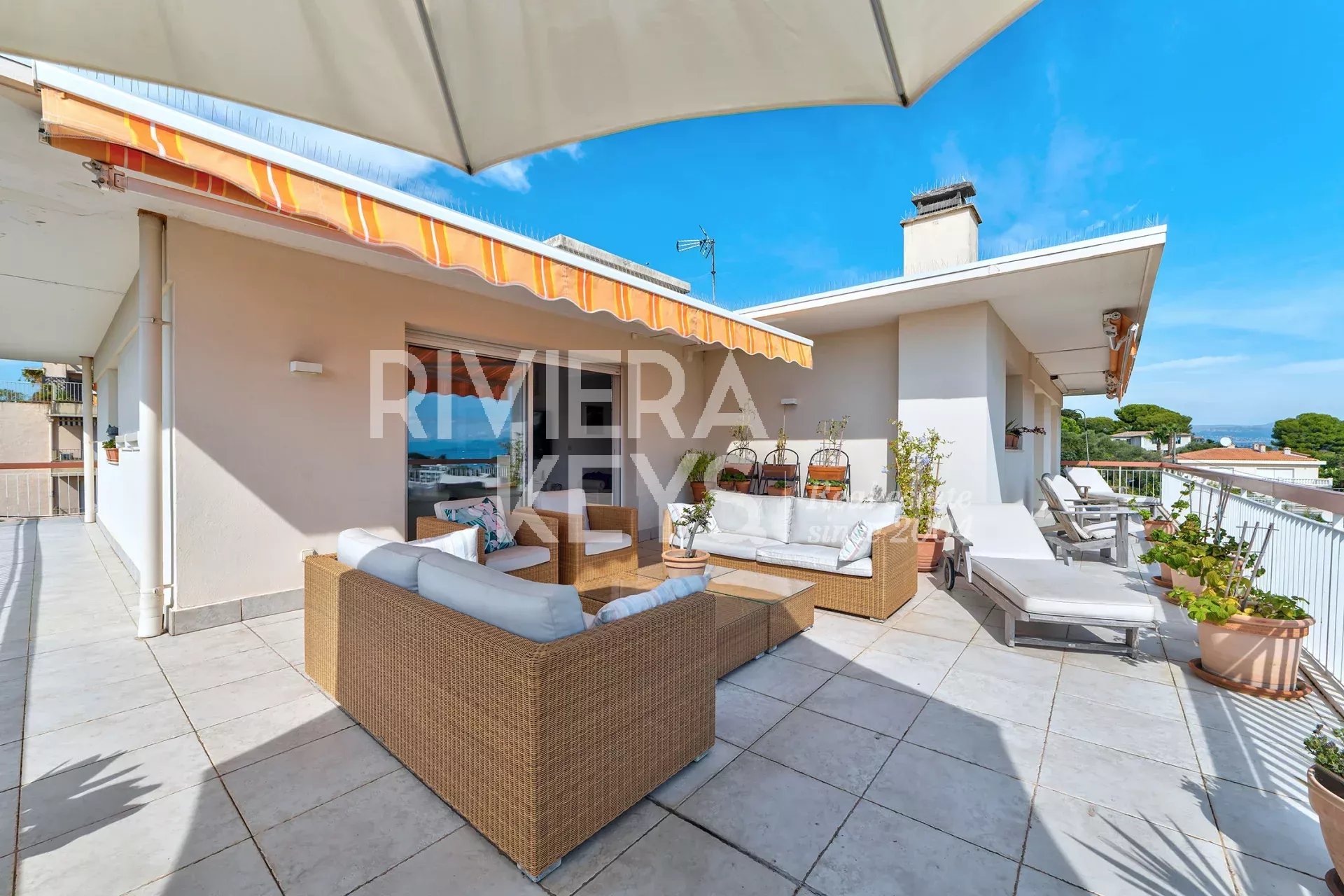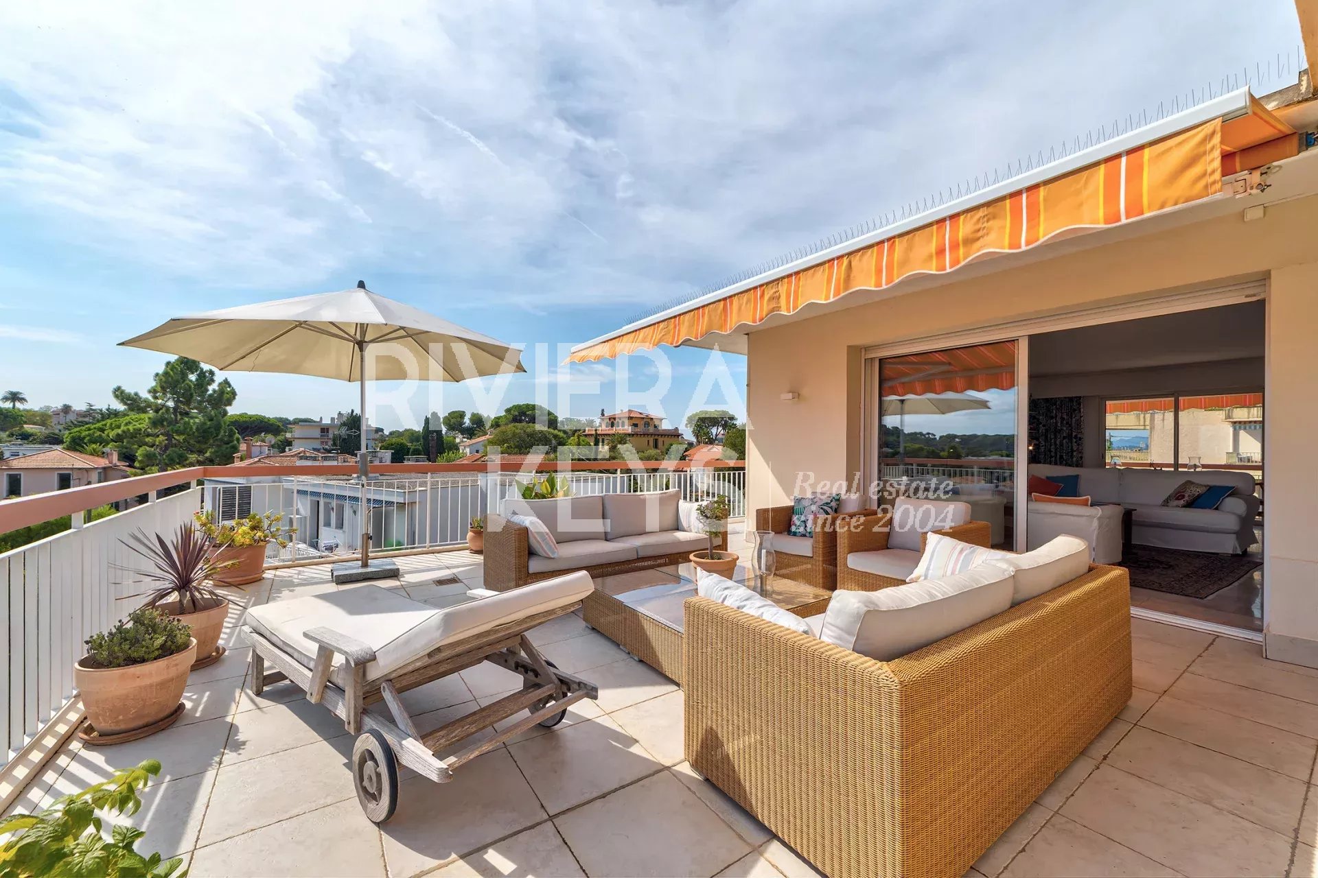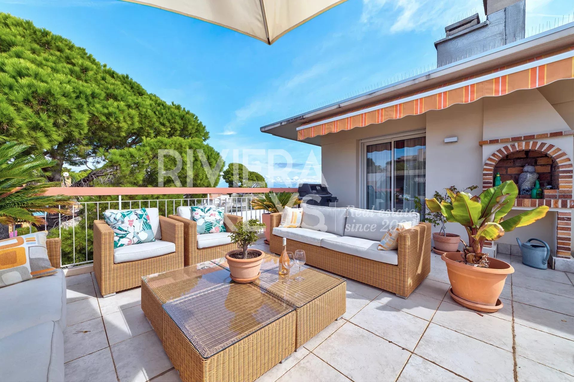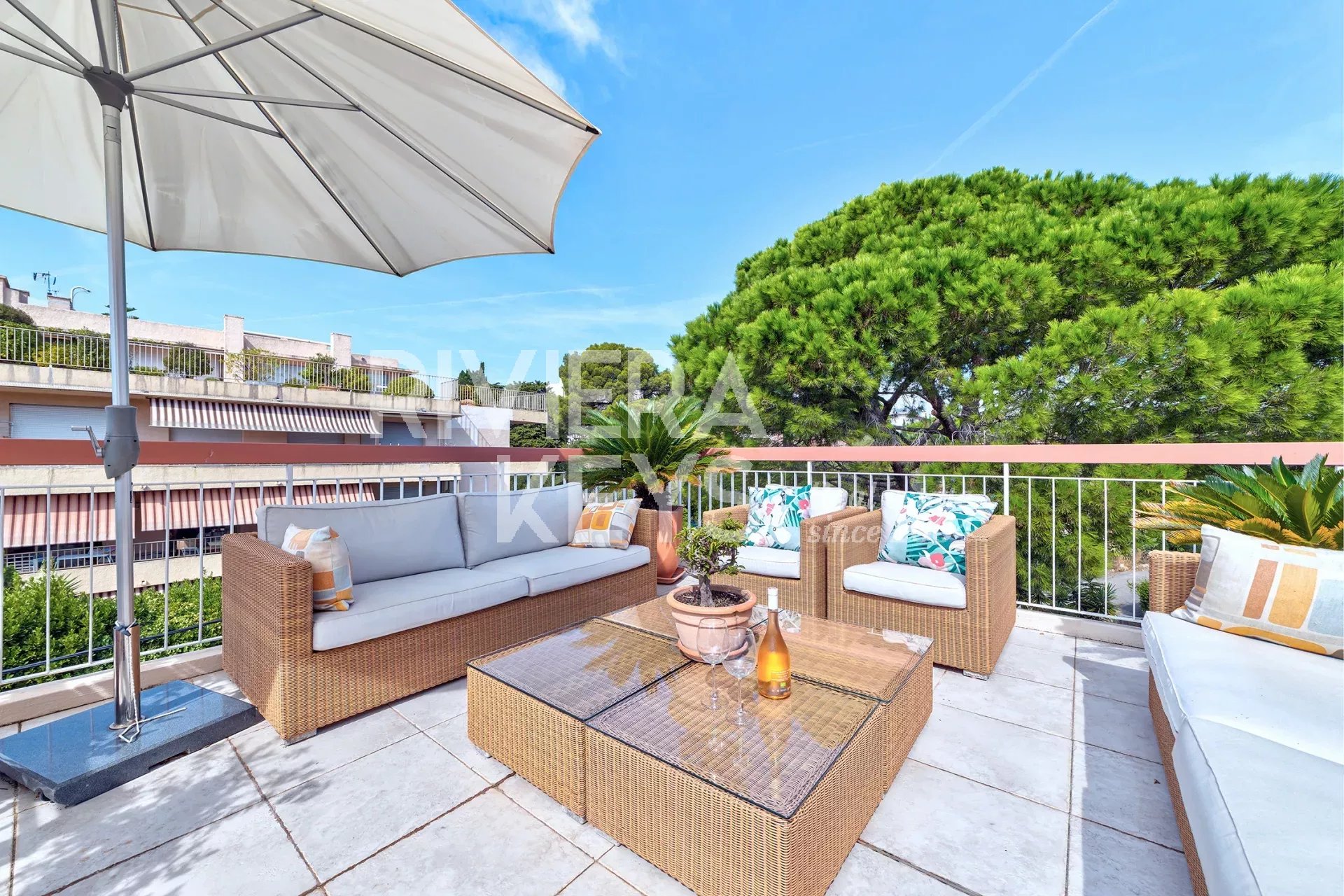 Between Juan-les-Pins and Antibes, you'll find this stunning penthouse in the heart of the sought-after Rostagne area. Just a few steps from the beaches and city center, this rare property offers a peaceful living environment in an exclusive small residence.