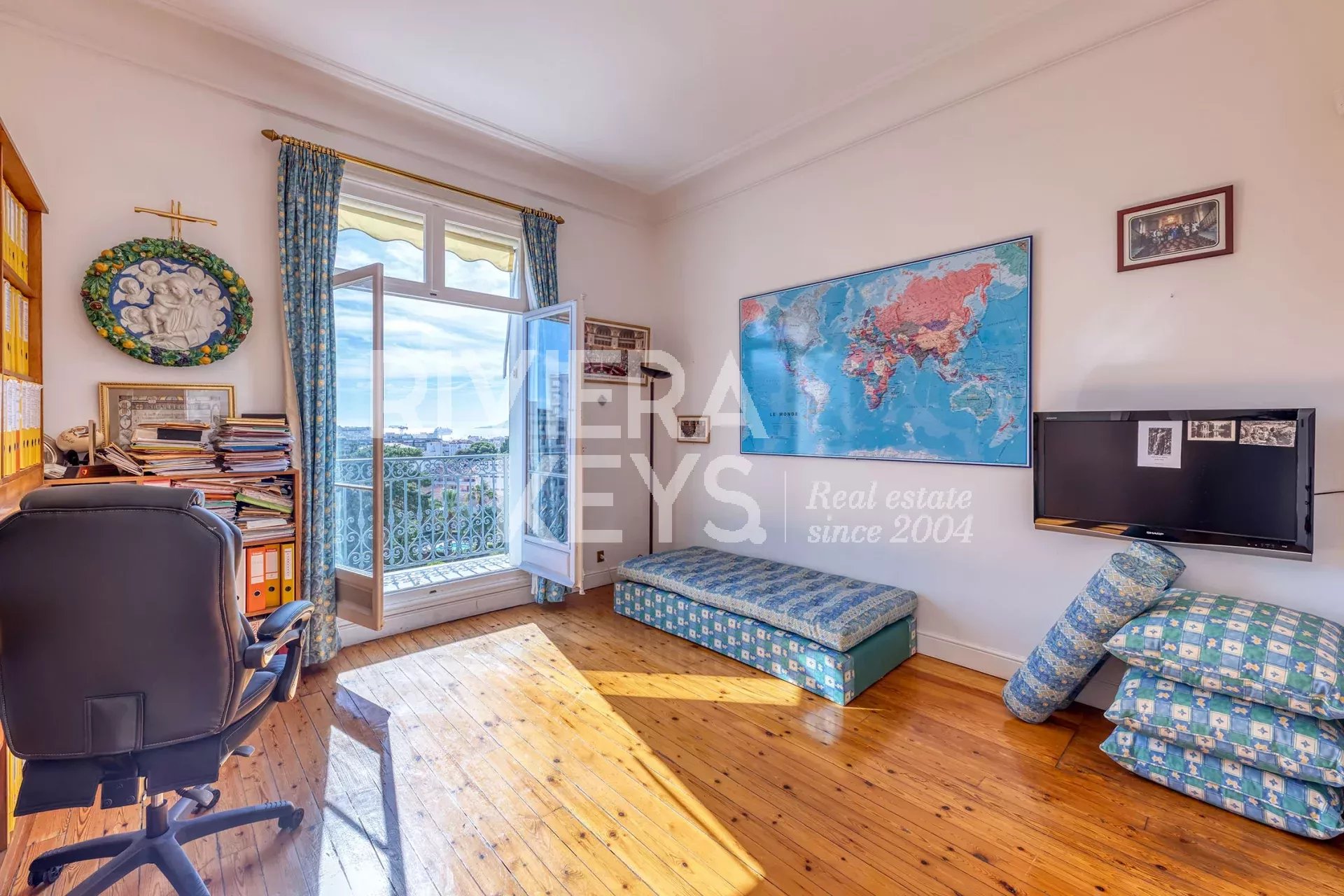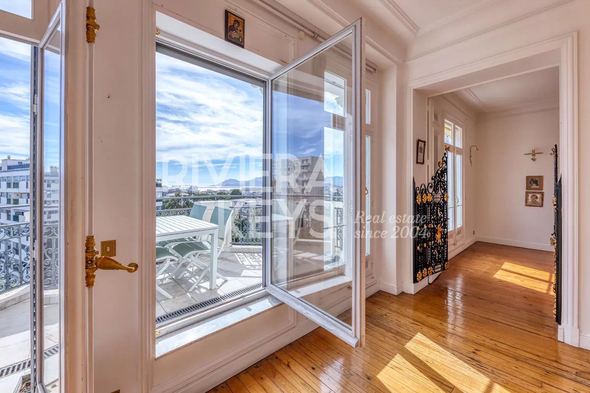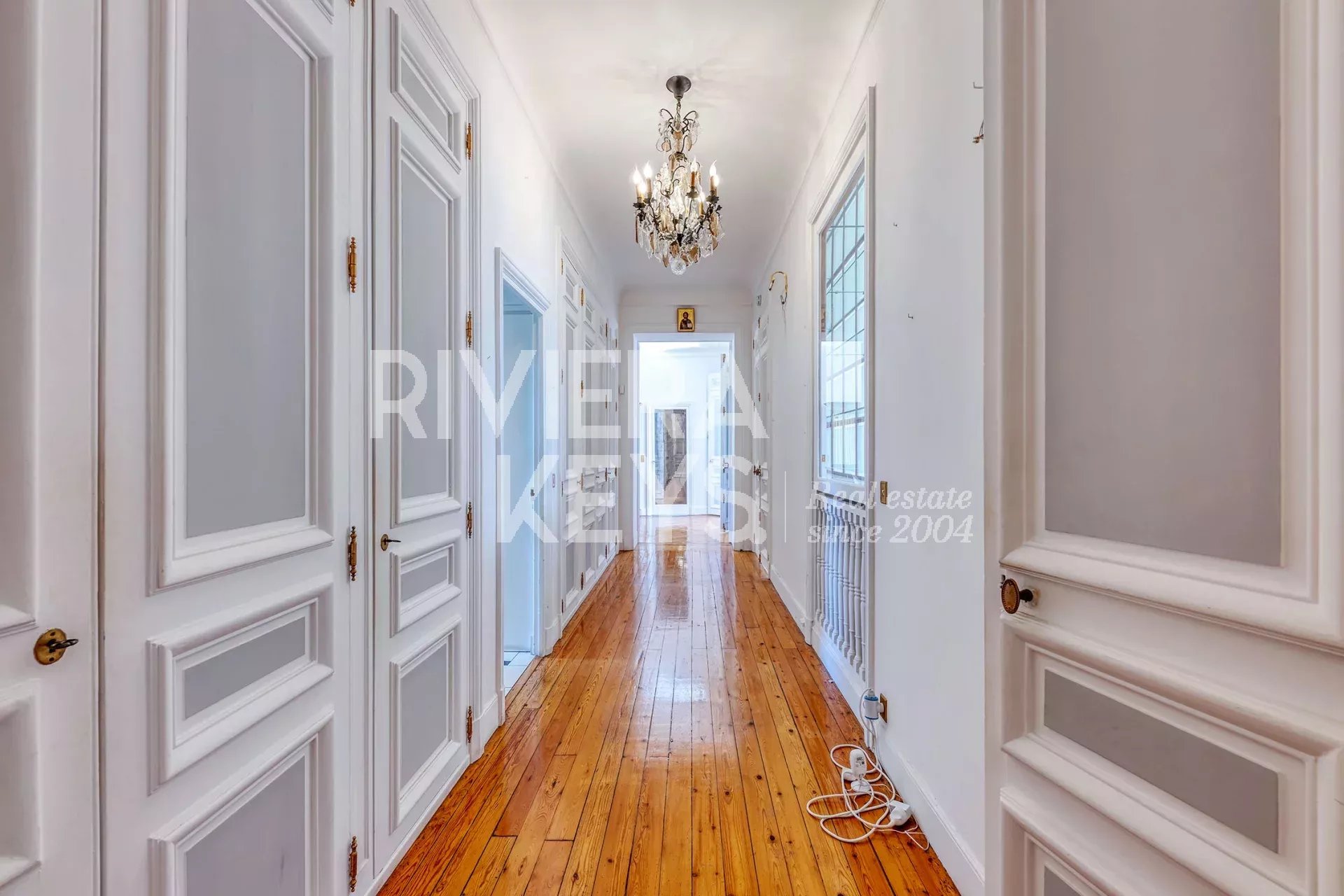 200 m² apartment on the fourth floor of a luxury building with lift, 10 minutes'walk from rue d'Antibes, in Cannes. On the top floor: south facing living room with a view of the Mediterranean, dining room, terrace of around 10 m² with sea view, fitted kitchen with back kitchen, 3 bedrooms, one of which is en suite with bath and wc, and another with wc and possibility of a shower. In the attic: small apartment with living room, 2 bedrooms and bathroom with shower and toilet. 2 large cellars and 1 garage. Luxury and secure building, in a sought-after area, within walking distance to all amenities. Excellent condition !