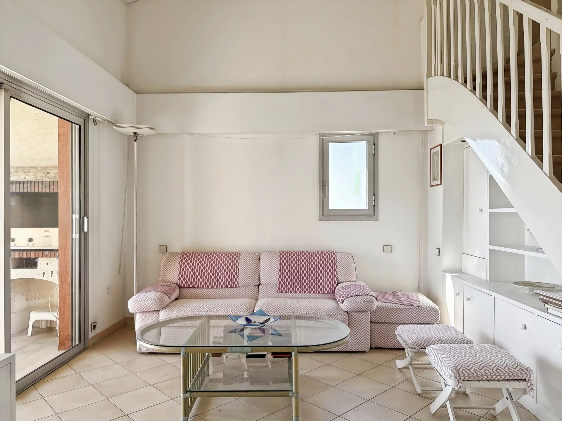 Ideally located at the Port of Fréjus, this 90 m² apartment (110 m² total floor area) occupies the top floor of a secure and well-maintained residence. It enjoys an open view of the sea, the port, and the beaches.
