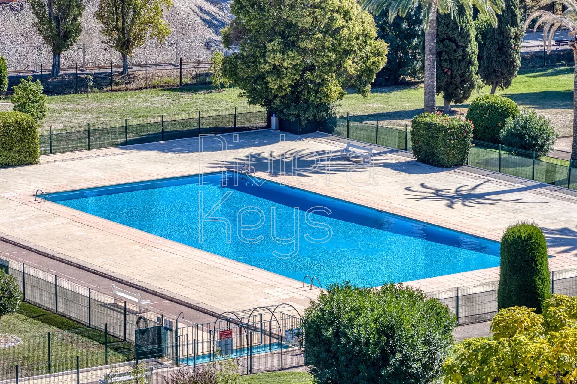 Secure residence with high-end amenities: surveillance cameras in common areas, double secure access system, reinforced entrance door, caretaker, landscaped park, swimming pool, and pétanque court.