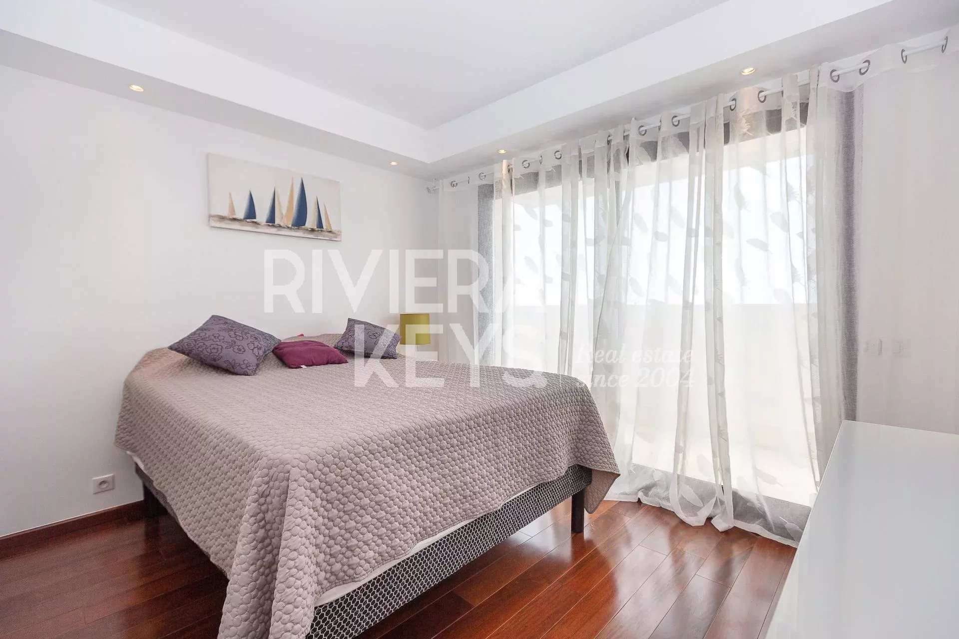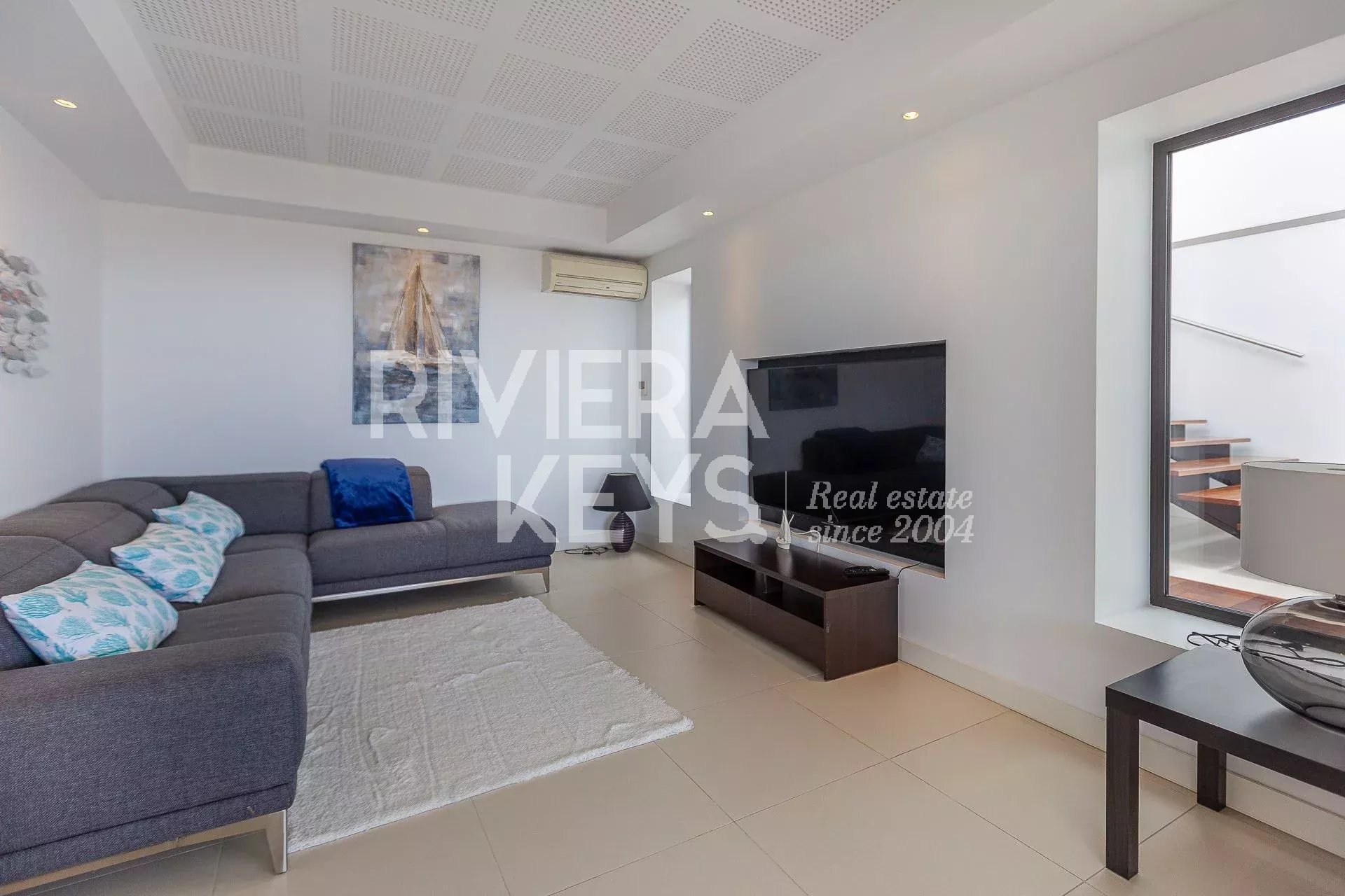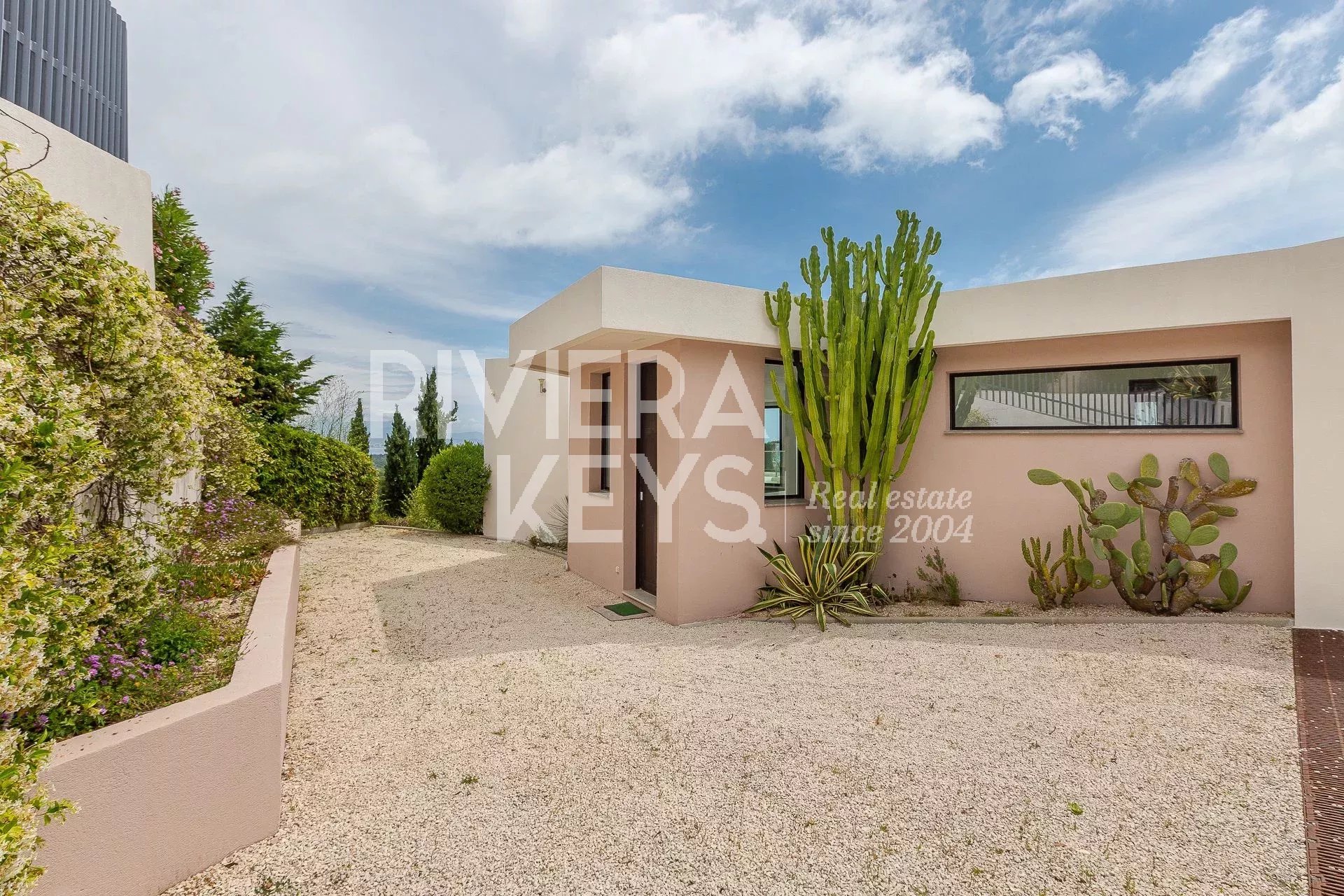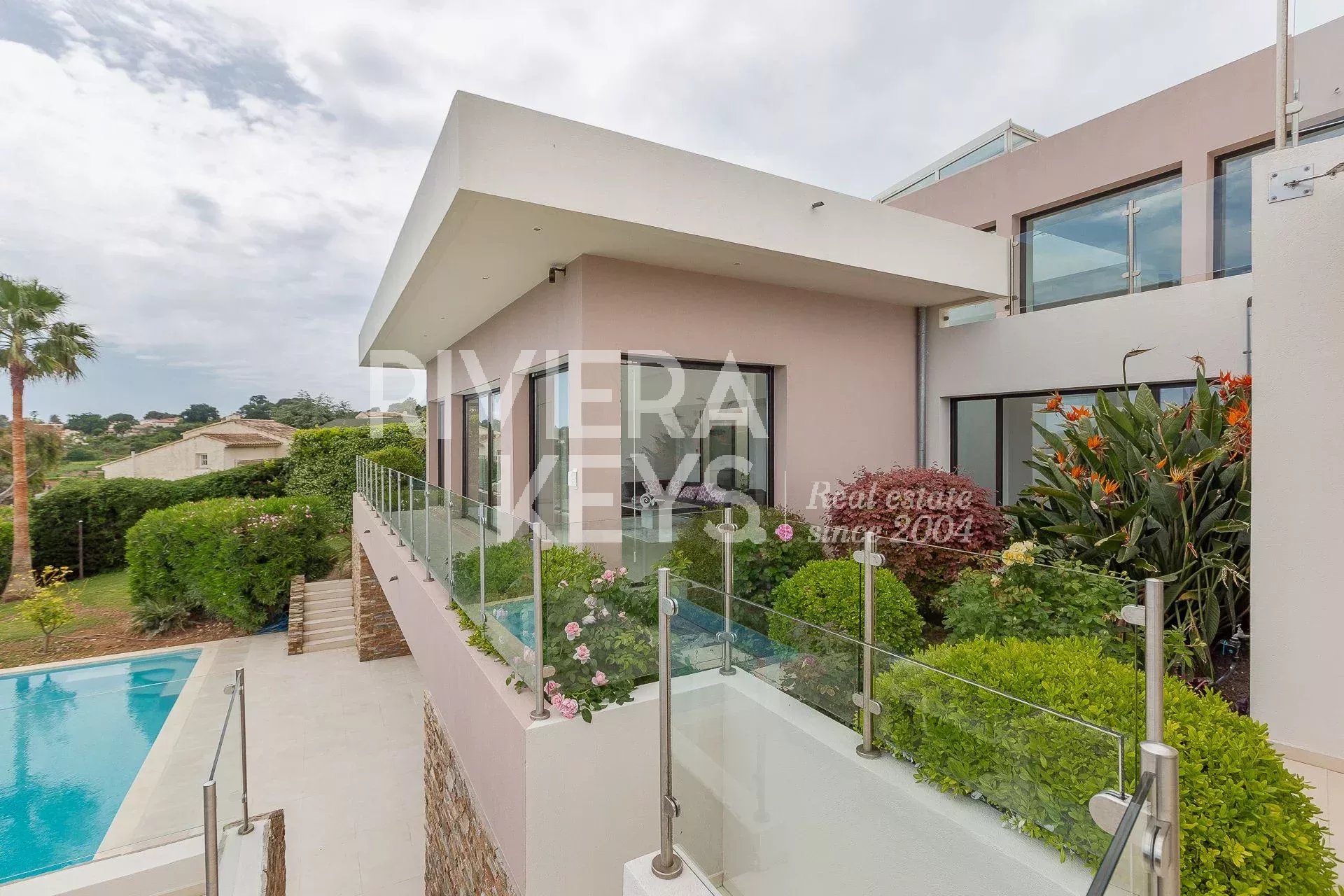 This modern-style villa, located in a secure private estate in Antibes, offers 240 sqm of living space and boasts panoramic views of the sea and surrounding landscape. Set on a 1,800 sqm plot, the property features a spacious, light-filled living room opening onto a terrace, a TV lounge, and four bedrooms, each with its own en-suite bathroom. The fully equipped kitchen also opens onto a terrace.