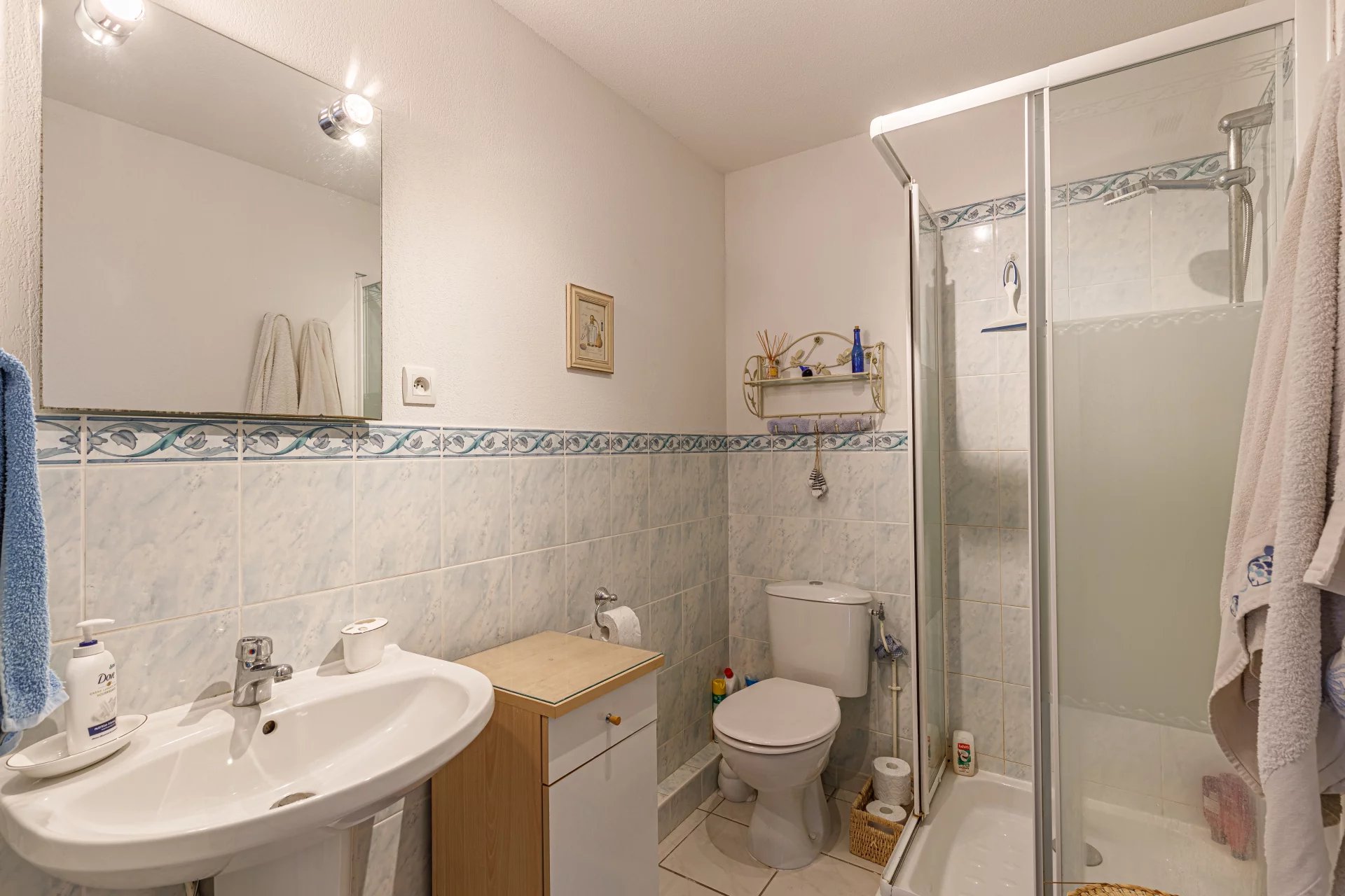 Pleasant garden in a quiet area, without any vis-à-vis, for this lovely semi-detached single-storey house of about 50 m² on a 213 m² plot of land. The villa includes: a living/dining room, an open-plan kitchen, two bedrooms, a separate toilet and a shower room with wc. There is also a storeroom and a private parking space. Ideal location in a quiet residence with swimming pool, only a few steps from the golf course and 15 minutes from the beaches.