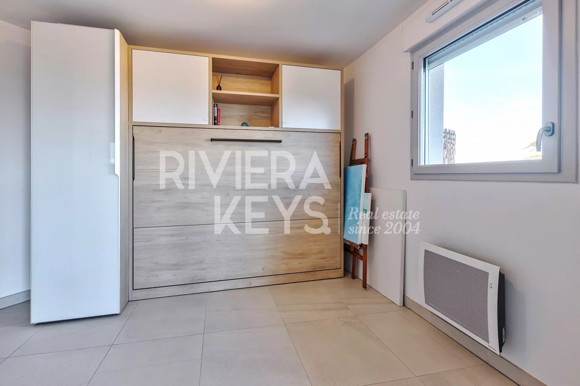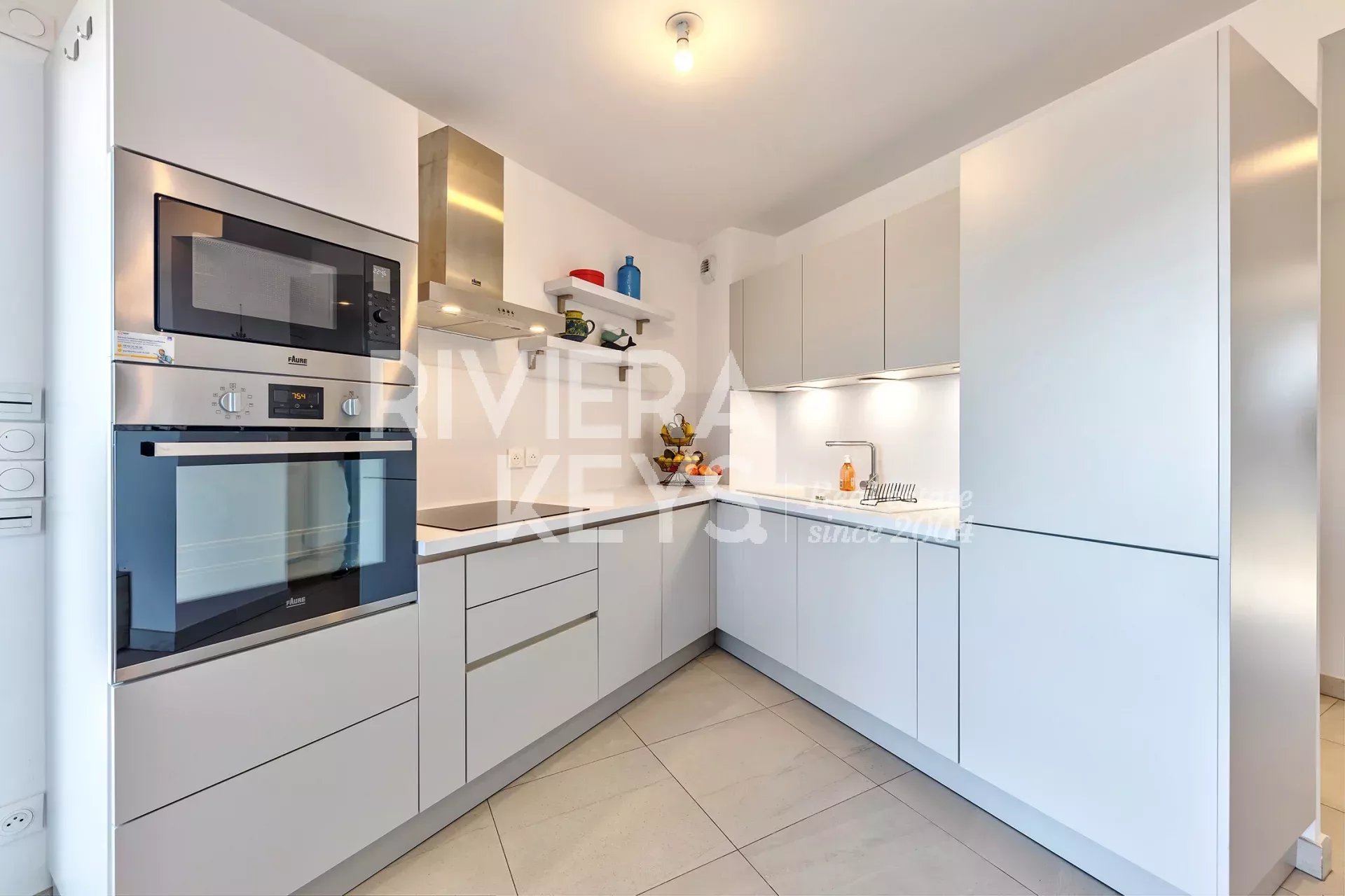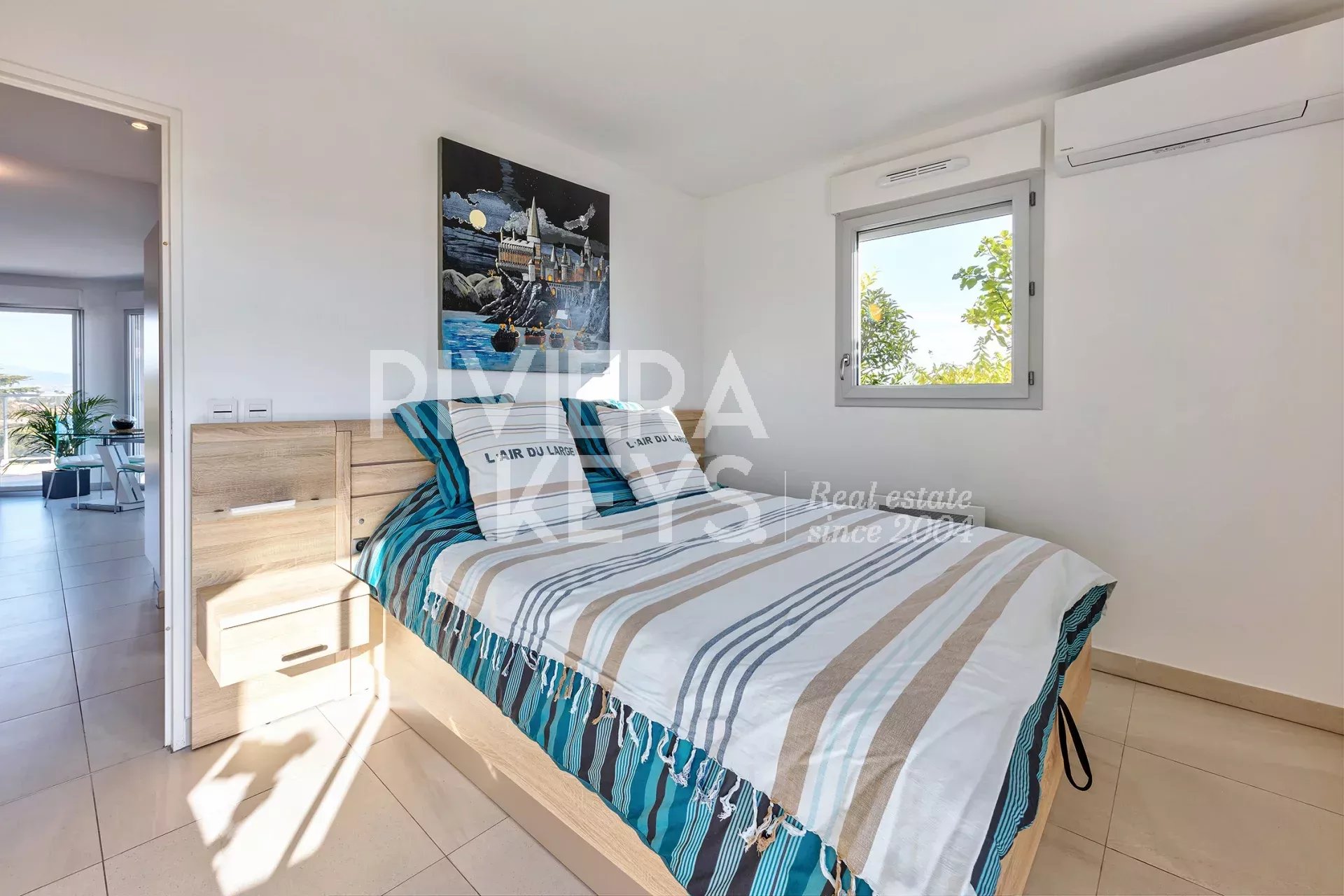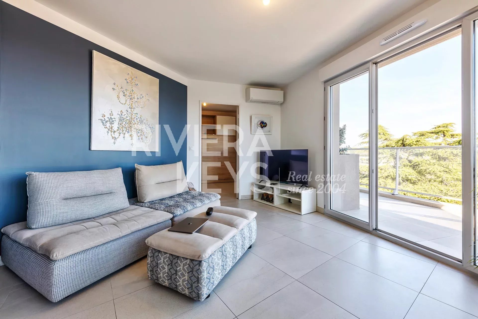 SOUS OFFRE ACCEPTEE .Dans le secteur prisé des Combes à Antibes, ce superbe appartement de 3 pièces, situé au dernier étage d'une petite résidence de standing récente, offre un cadre exceptionnel. Bénéficiant d'une climatisation intégrée, il se compose d'un séjour lumineux avec une cuisine ouverte entièrement équipée, de 2 chambres, chacune dotée d'une salle d'eau dont une avec WC, d'une terrasse de plain-pied et d'un vaste solarium de plus de 50 m². Ce dernier révèle une vue imprenable sur la Méditerranée et les montagnes environnantes.