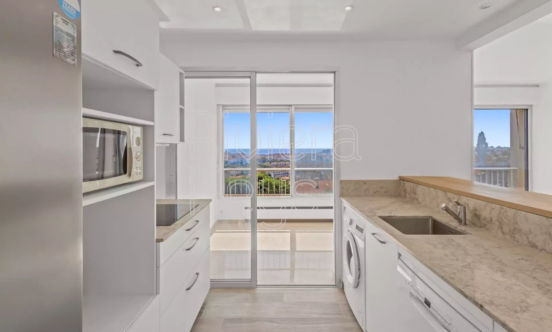 SOUS OFFRE ACCEPTEE . Dans une résidence de standing très recherchée avec piscine, tennis et gardien, à proximité immédiate des commerces, beau deux pièces lumineux, entièrement rénové, offrant une magnifique vue mer panoramique. L'appartement se compose d'une entrée, d'un séjour avec cuisine équipée semi ouverte, un WC, une salle de douche, un dressing, une chambre, et une agréable loggia. Une cave et une place de parking viennent compléter le confort de ce très agréable appartement.