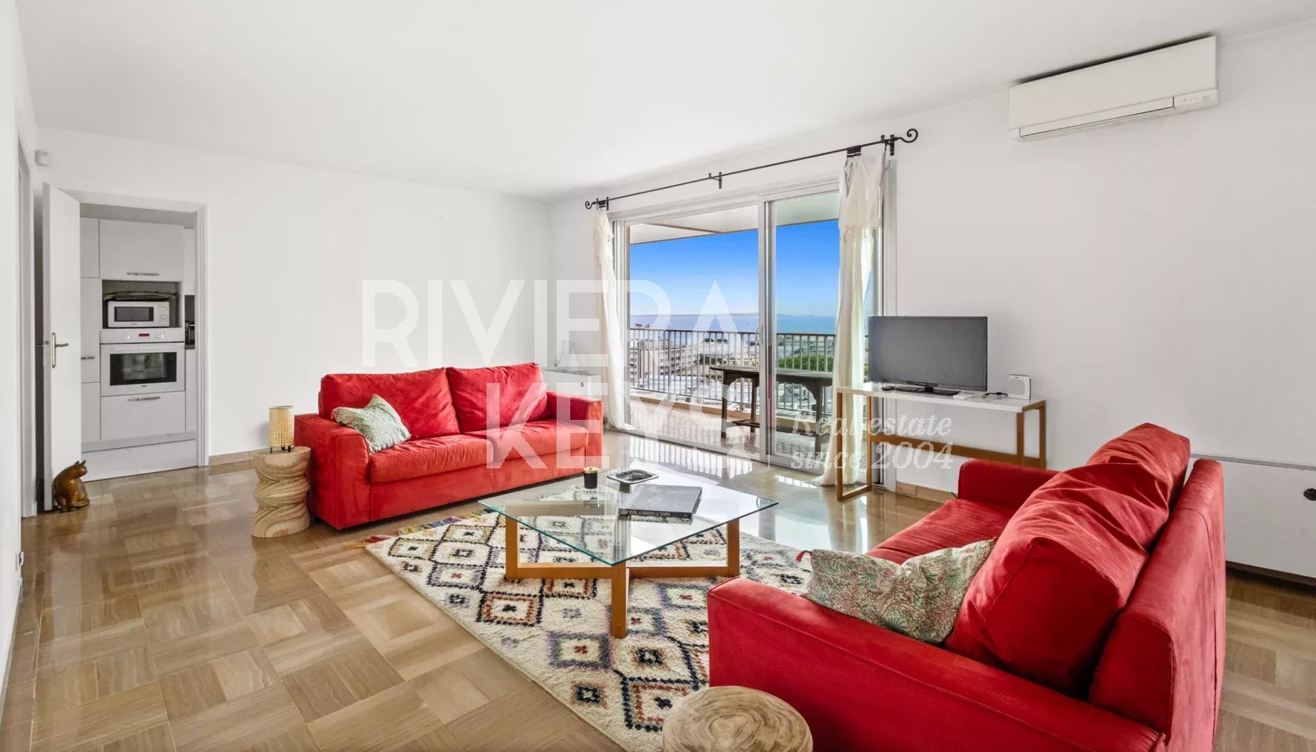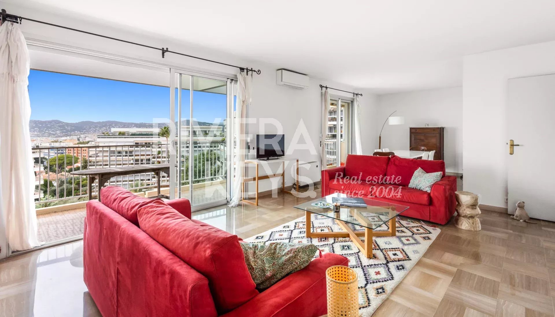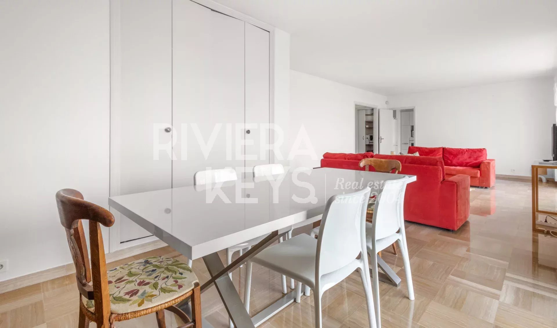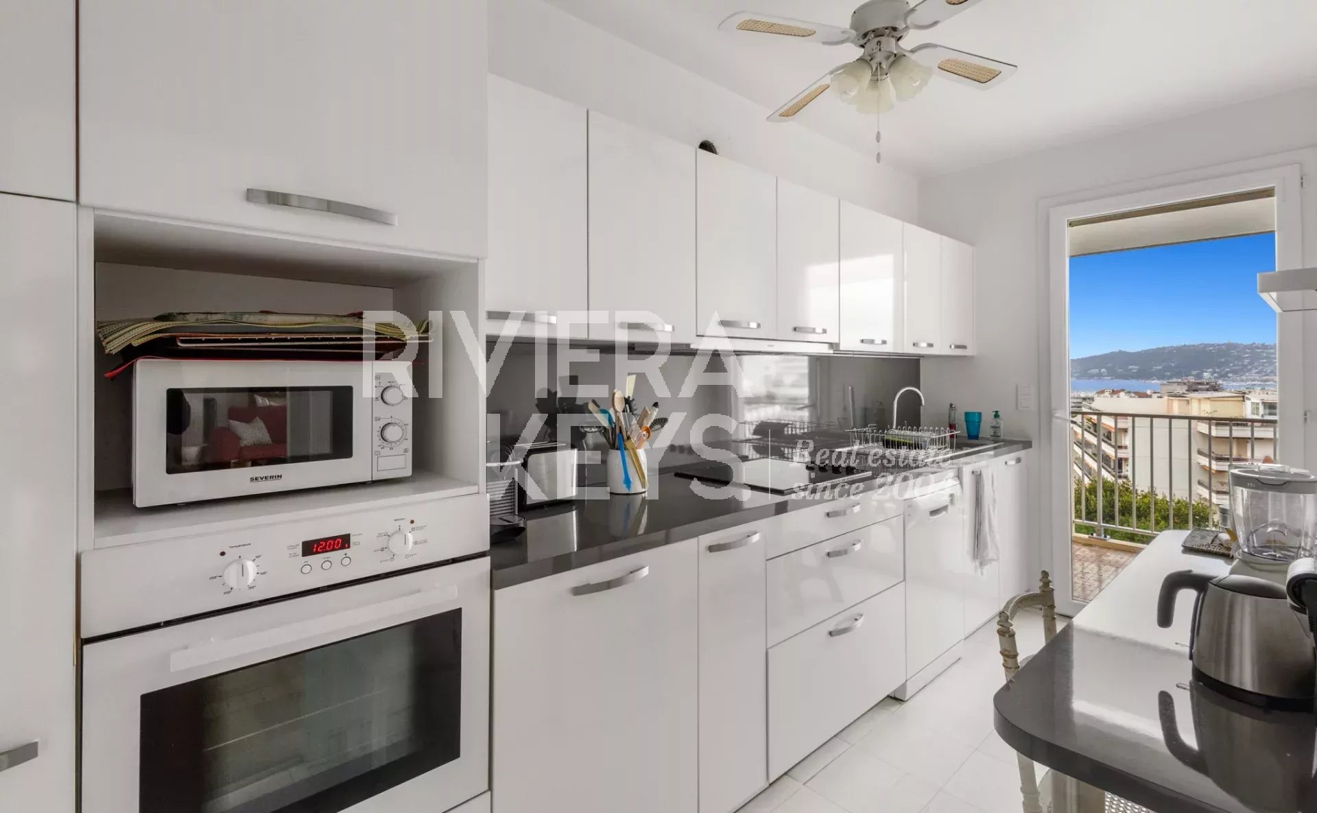Situé au dernier étage d’une petite résidence, il offre plus de 100 m² habitables et une vue mer spectaculaire à 360° sur Antibes, Juan-les-Pins et les îles de Lérins.