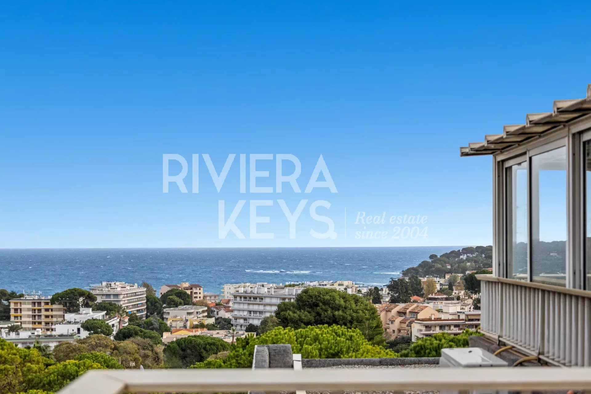 Dans le quartier recherché de la Rostagne, à 10 minutes à pied des plages et du centre de Juan-les-Pins, découvrez ce superbe appartement-villa sur le toit, unique en son genre.