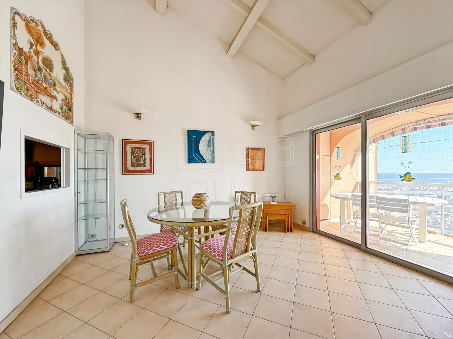 Idéalement situé, cet appartement de 90 m² Carrez (110 m² au sol) occupe le dernier étage d’une résidence sécurisée et bien entretenue. Il offre une belle vue dégagée sur la mer, le port et les plages.