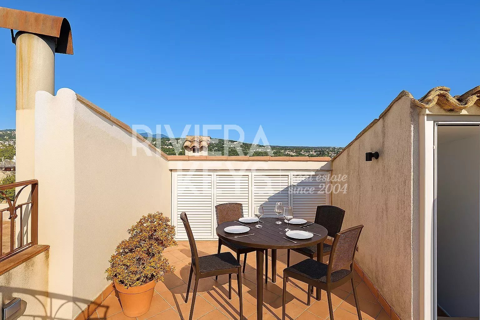 - Tout en haut, une terrasse ensoleillée, pouvant accueillir jusqu’à huit personnes pour profiter de repas au printemps, en été et en automne.