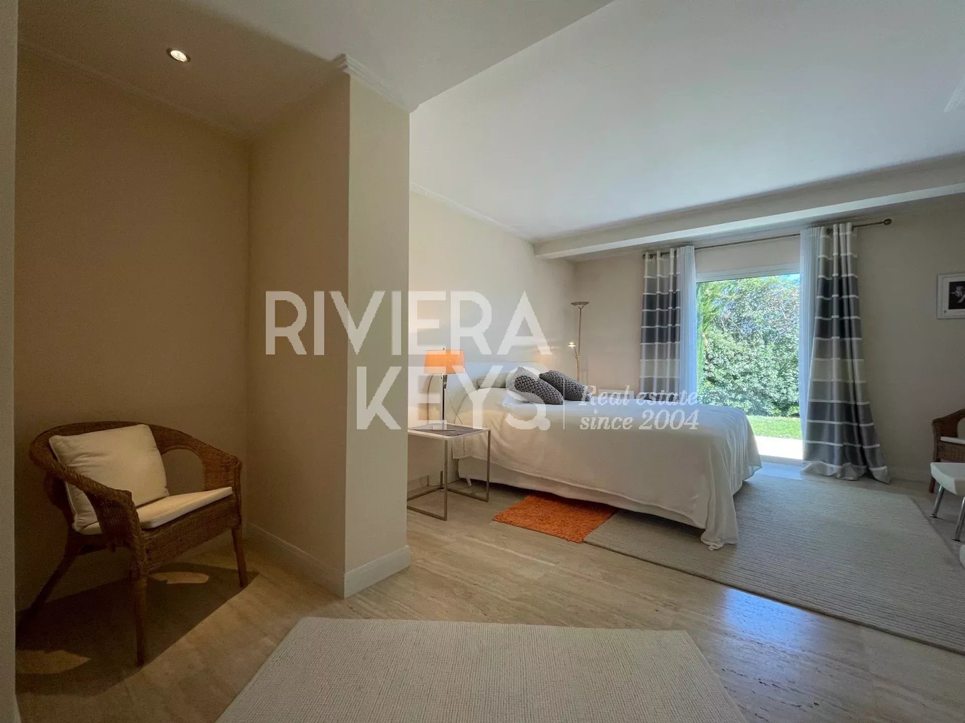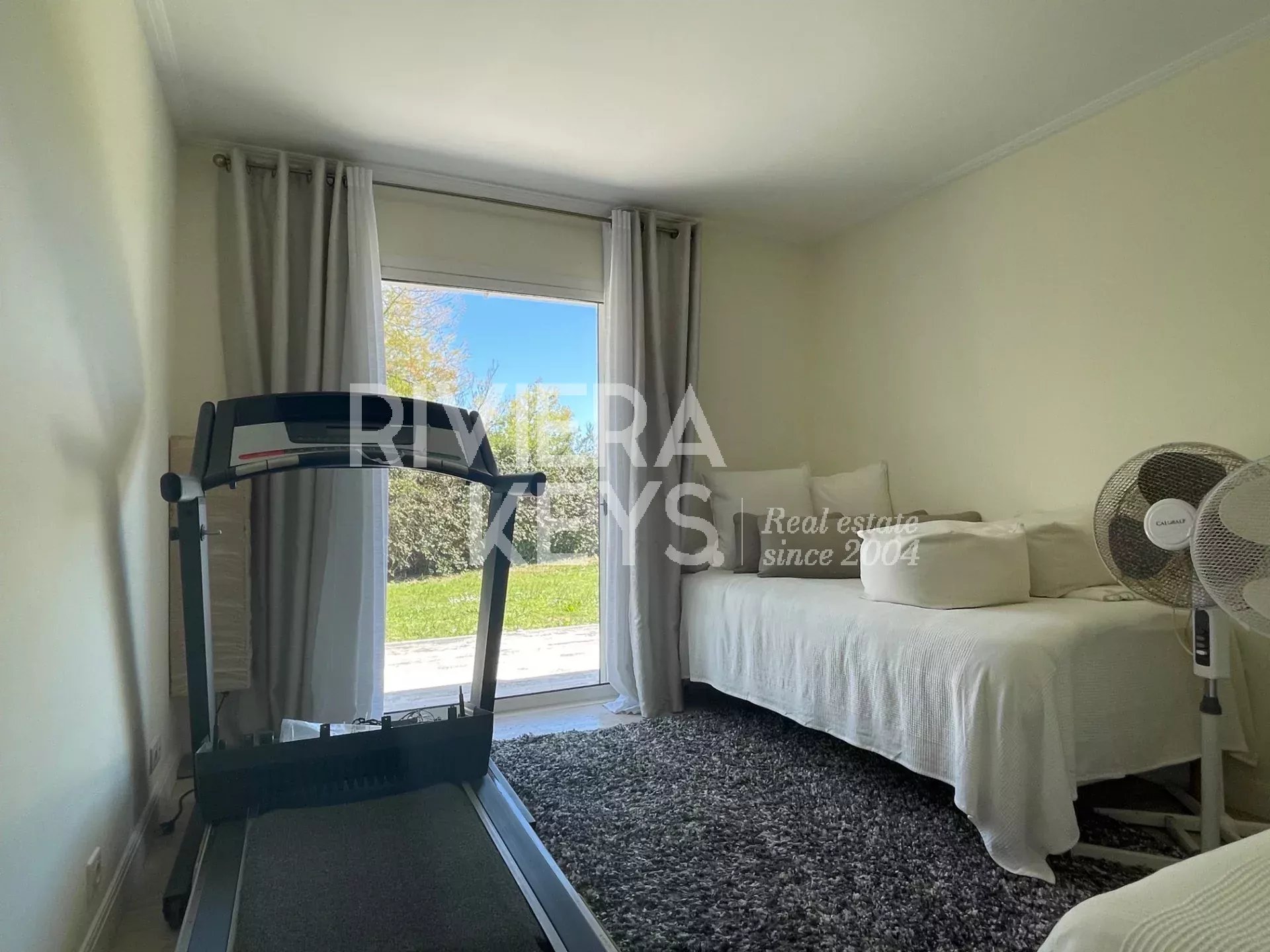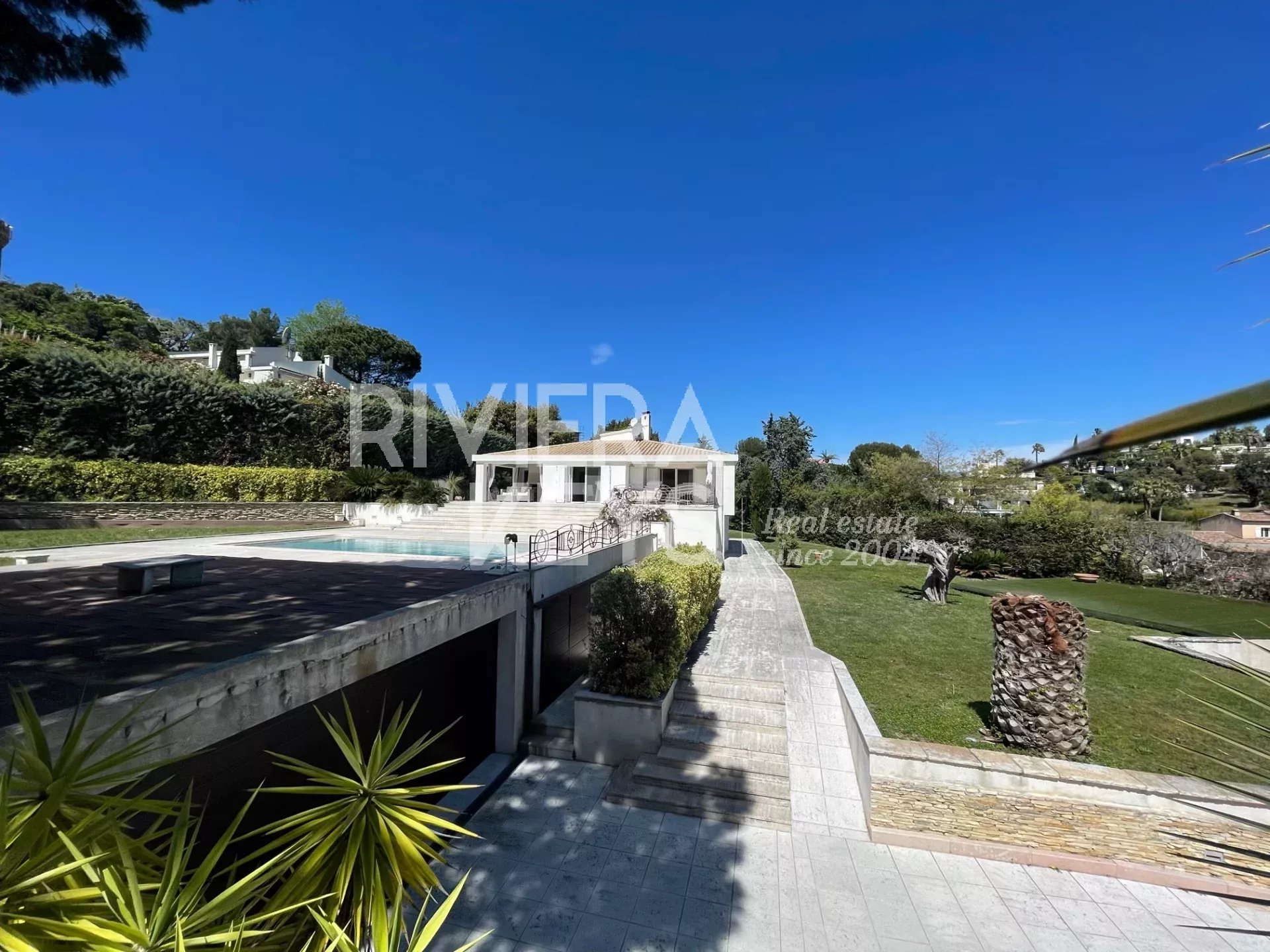 Le jardin plat de 3558 m², magnifiquement entretenu, est orné d’oliviers anciens et d’essences méditerranéennes. Une belle piscine invite à la détente, et deux garages permettent d’accueillir jusqu’à six véhicules.
