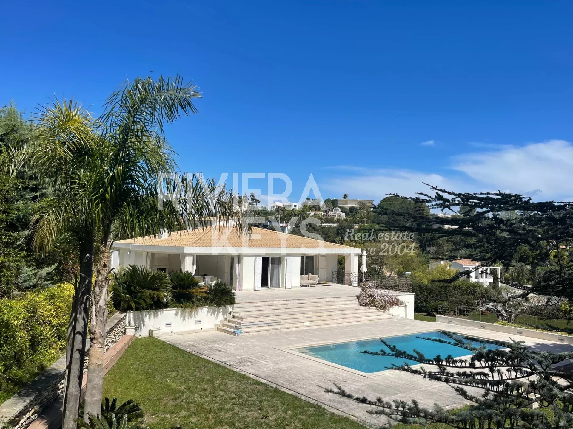 Rare et récemment proposé - Située dans un quartier résidentiel, au calme absolu, recherché sur les hauteurs de Super-Cannes, cette villa d’environ 220 m² bénéficie d’une exposition traversante, profitant du soleil tout au long de la journée. Sa façade principale ainsi que la piscine sont orientées sud-est.