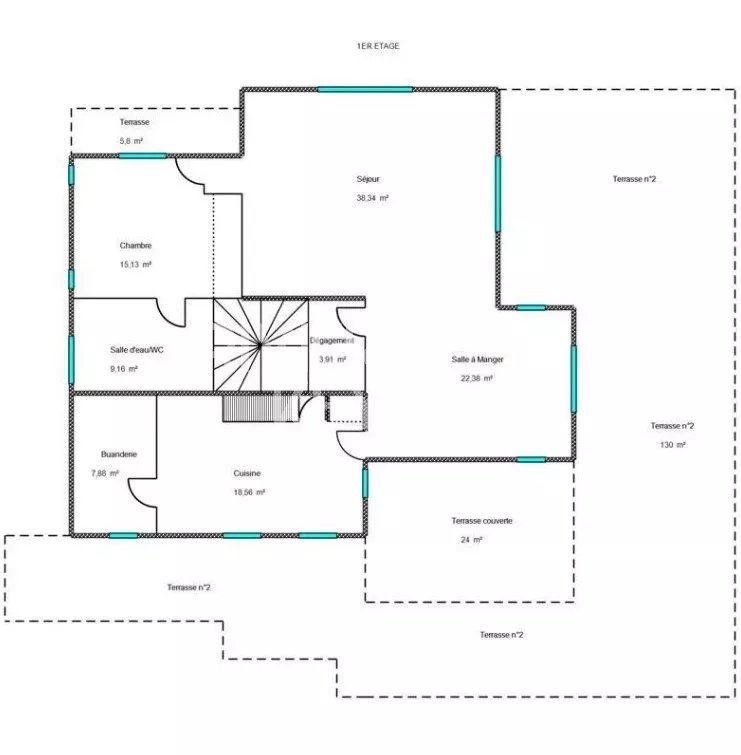 Une extension de la surface habitable est envisageable, jusqu’à environ 200 m², sous réserve de permis de construire.