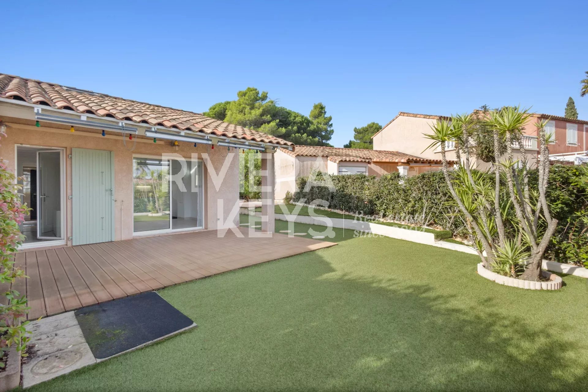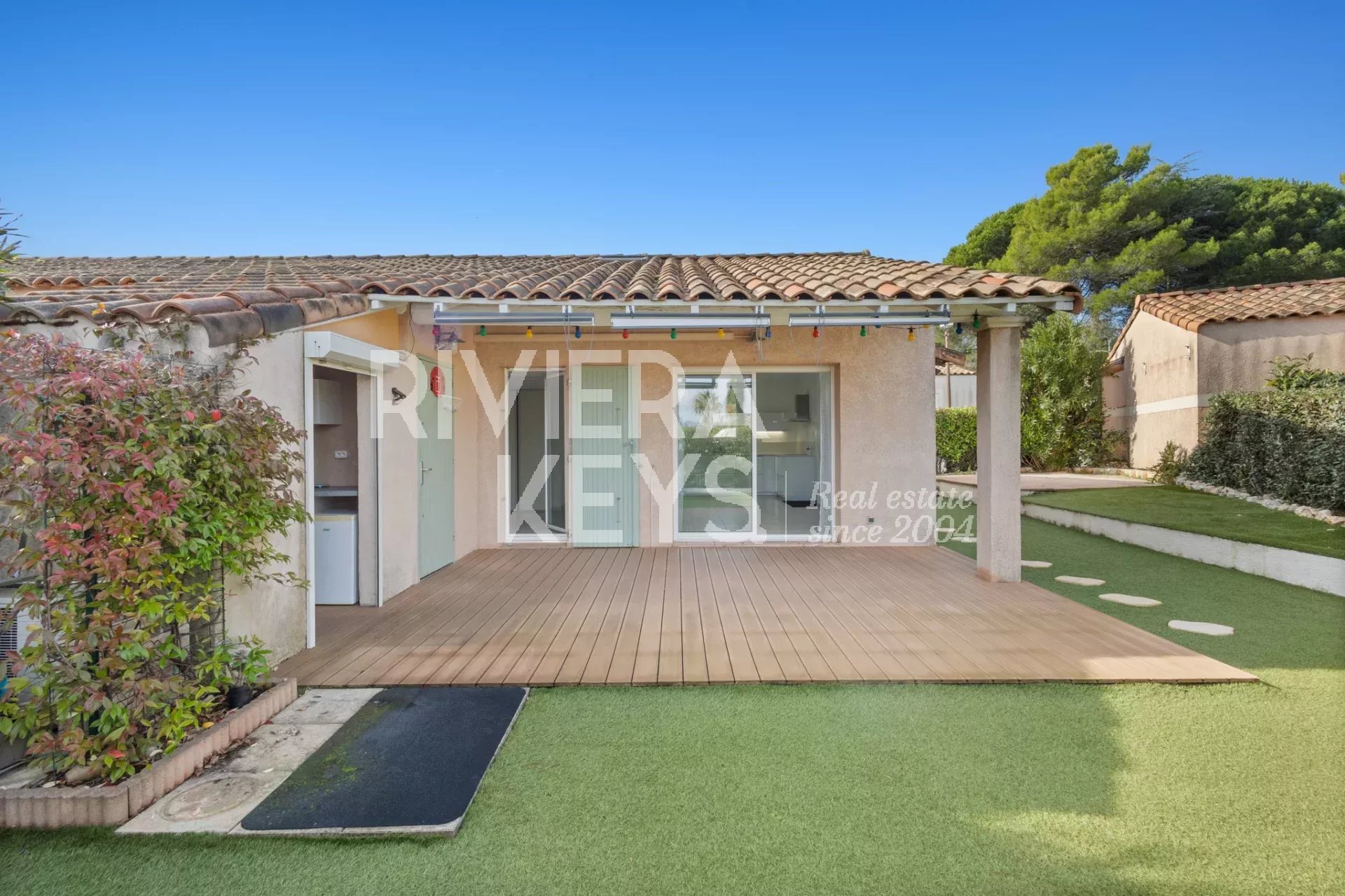 Cette charmante maison de 57,75 m2 dont 42,85 m² surface carrez offre un cadre de vie paisible et soigné, au cœur d’une résidence calme et sécurisée avec piscine, à proximité immédiate du Golf de Roquebrune.
