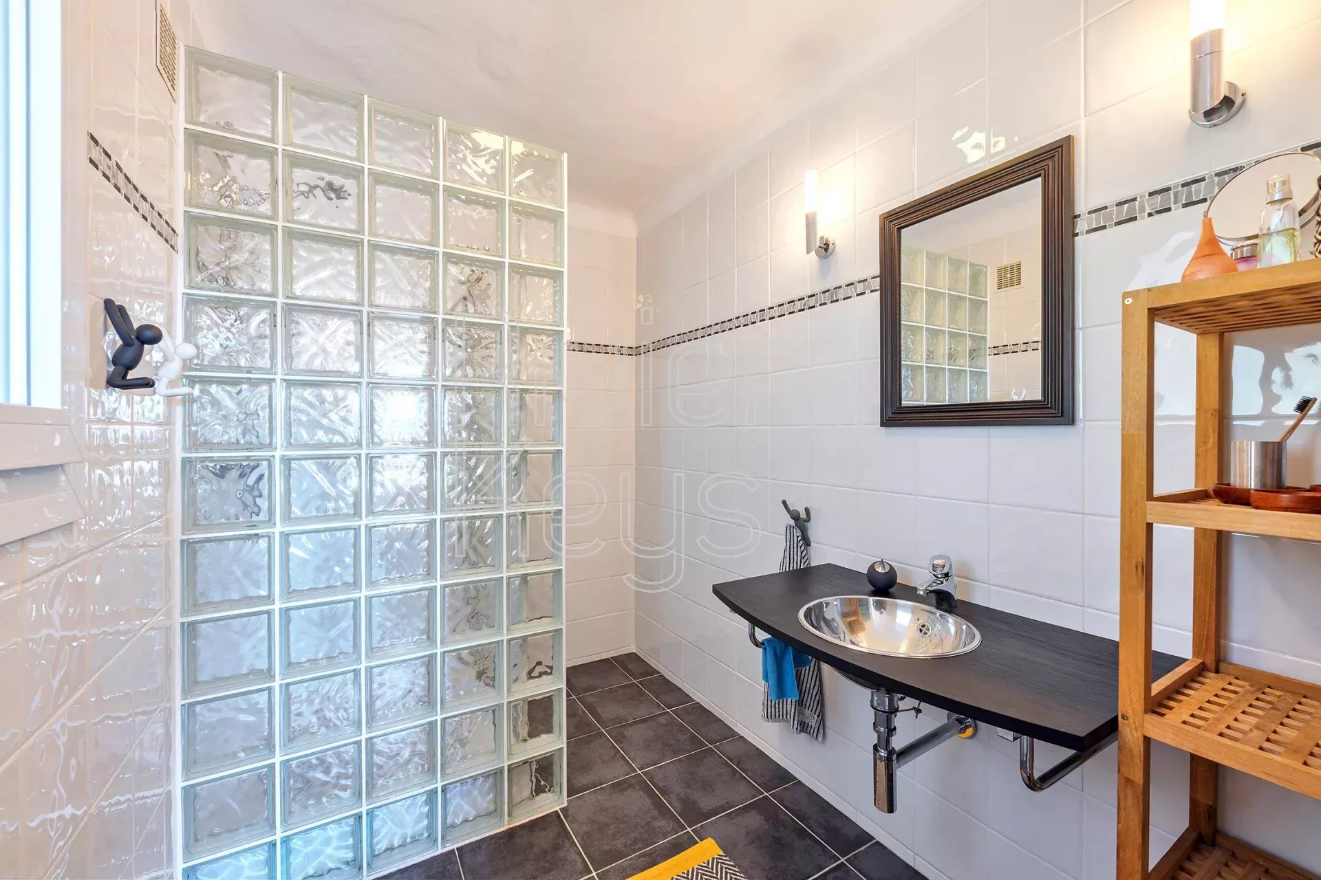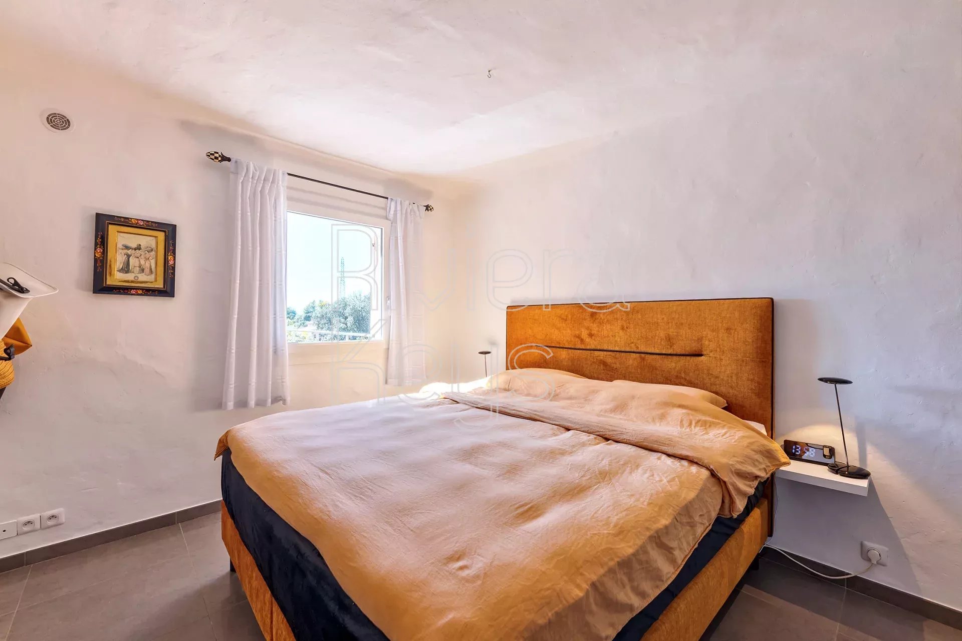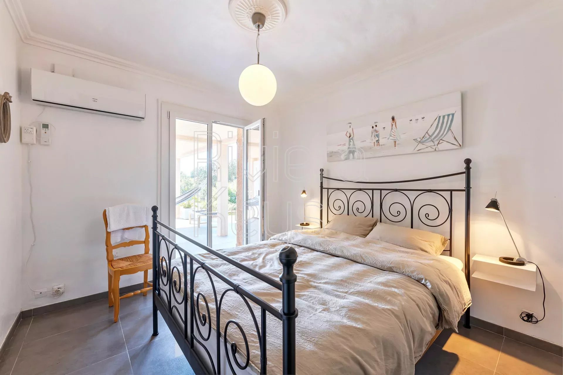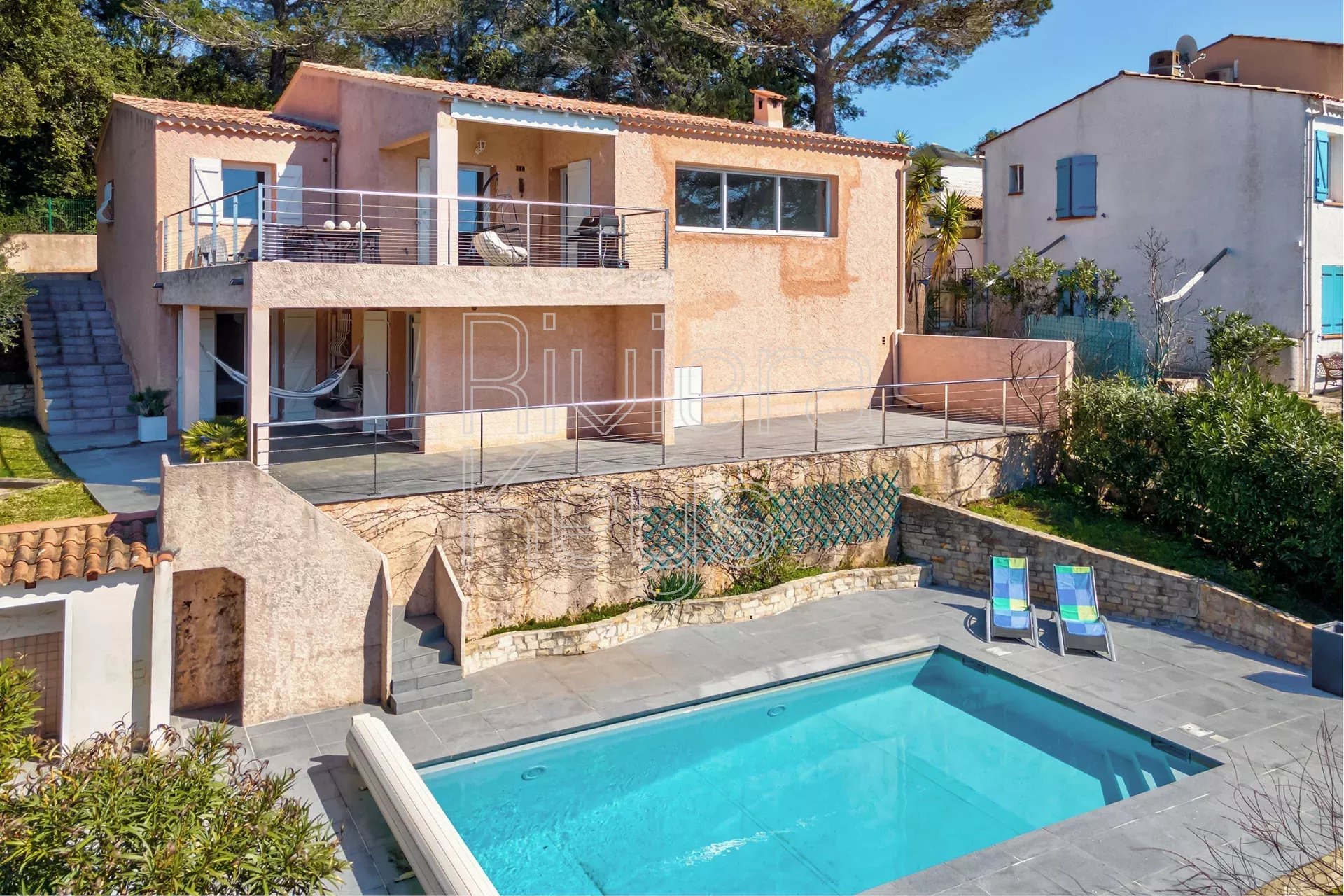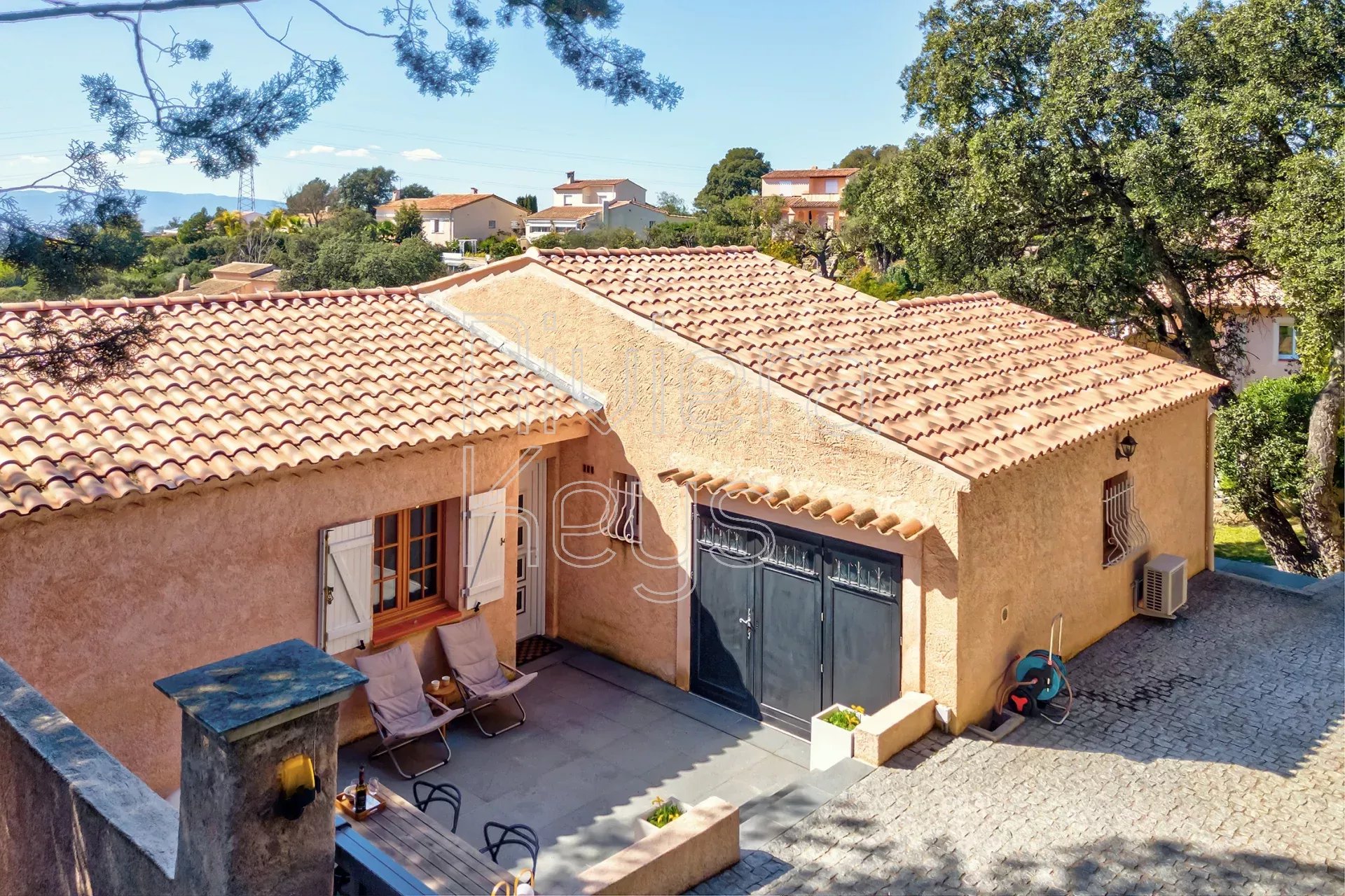 Le jardin aménagé en restanques comprend un terrain de pétanque, une piscine et plusieurs places de parking, le tout sécurisé par un portail automatique.