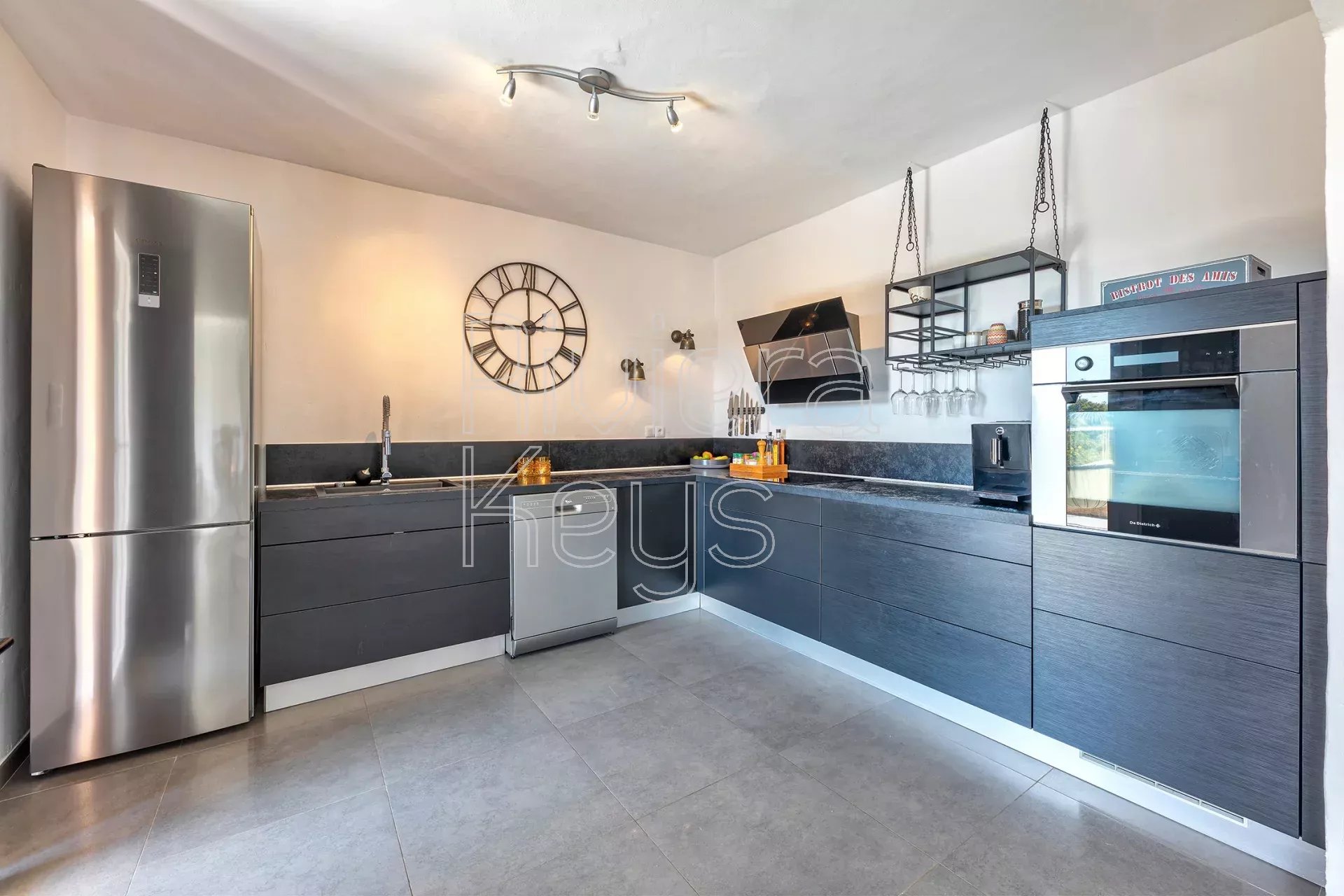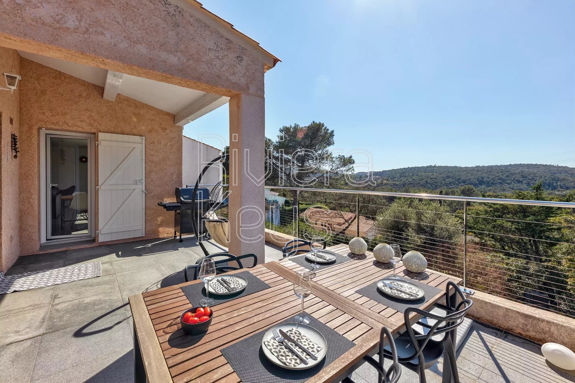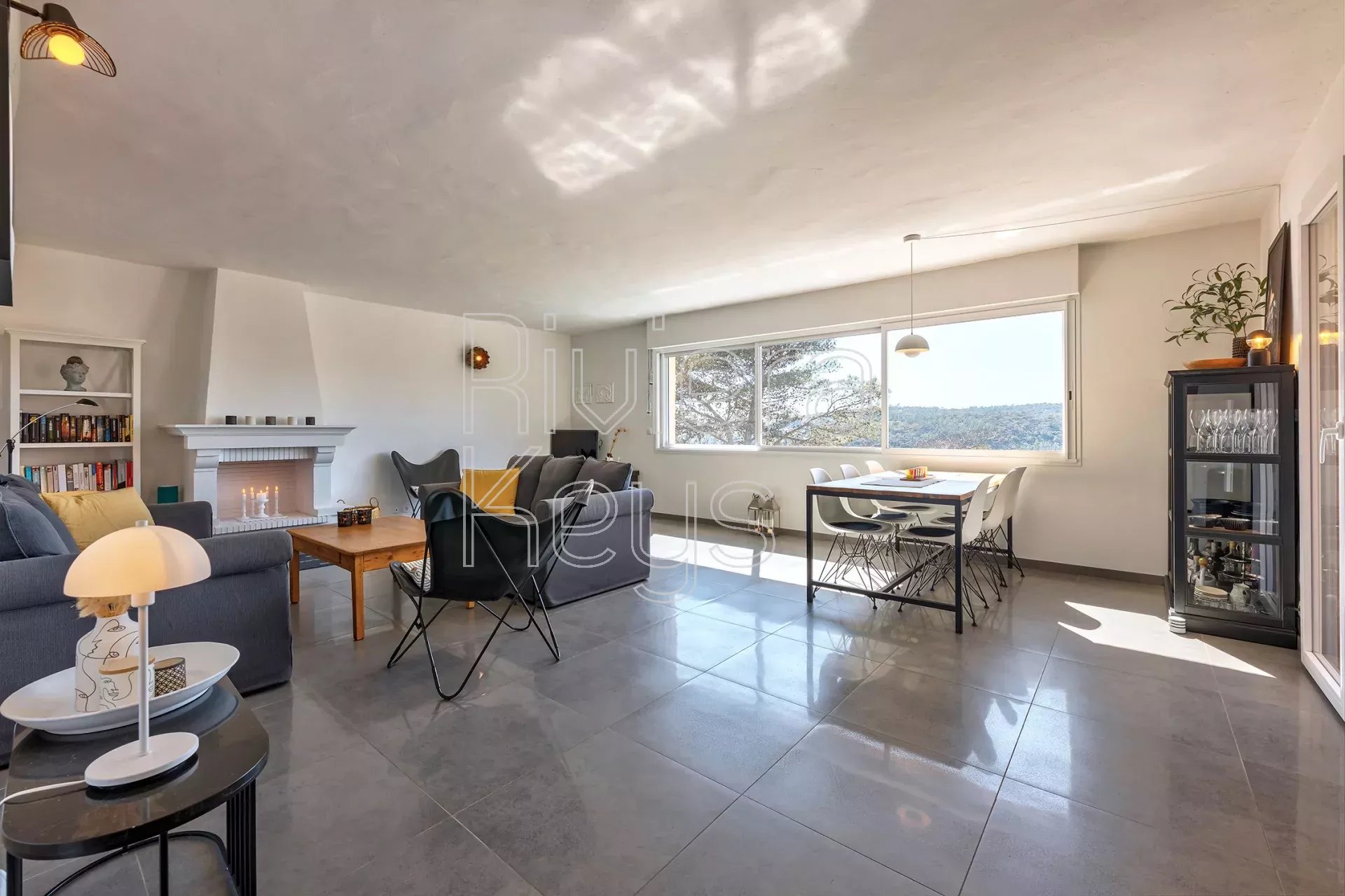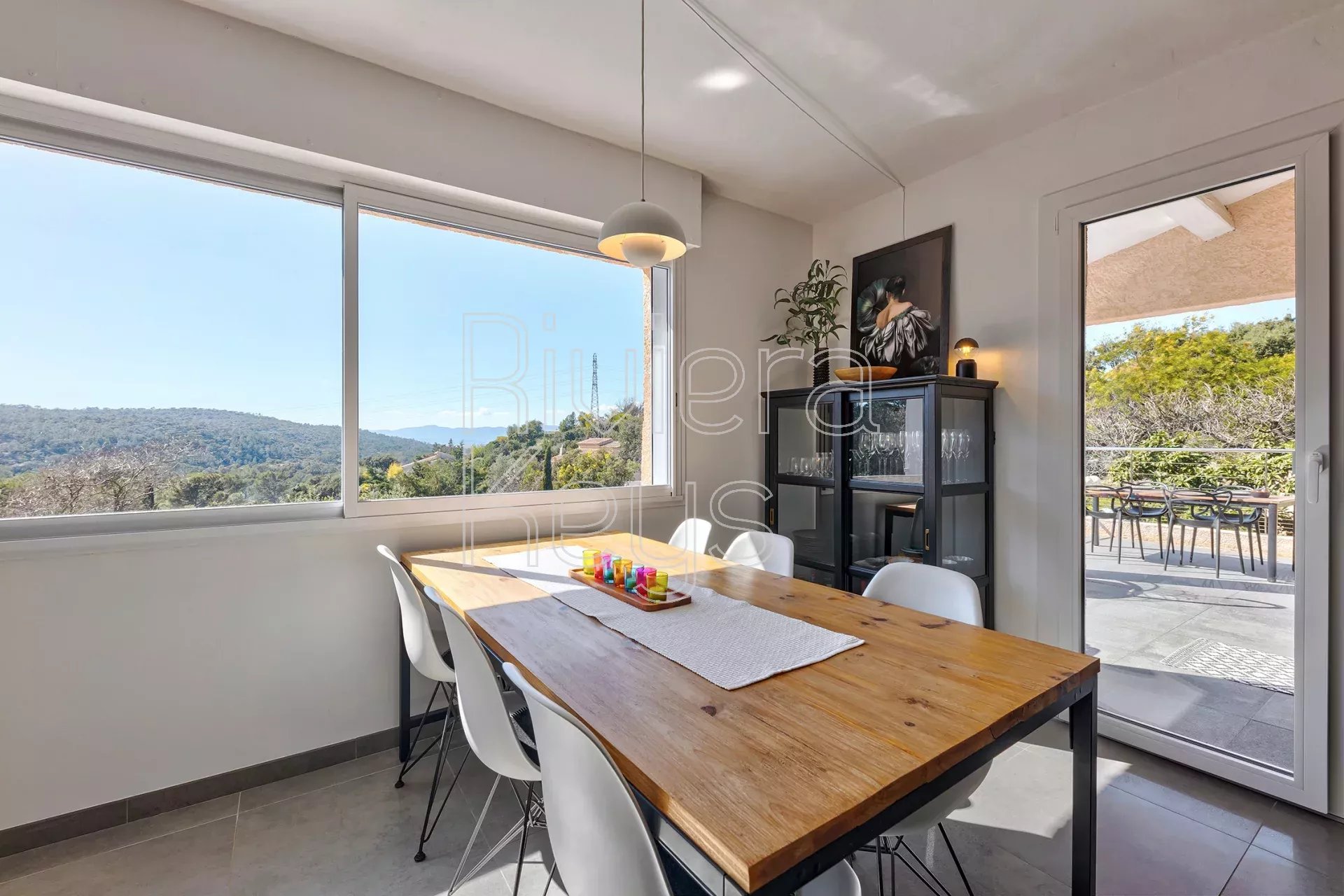 Maison entièrement rénovée d'environ 125m² sur deux niveaux. Le premier niveau ouvre sur l'entrée, le séjour avec une magnifique vue sur la forêt, la cuisine aménagée, la terrasse semi-couverte, une chambre avec salle d'eau, une deuxième chambre, un toilette, et l'accès au garage/buanderie.