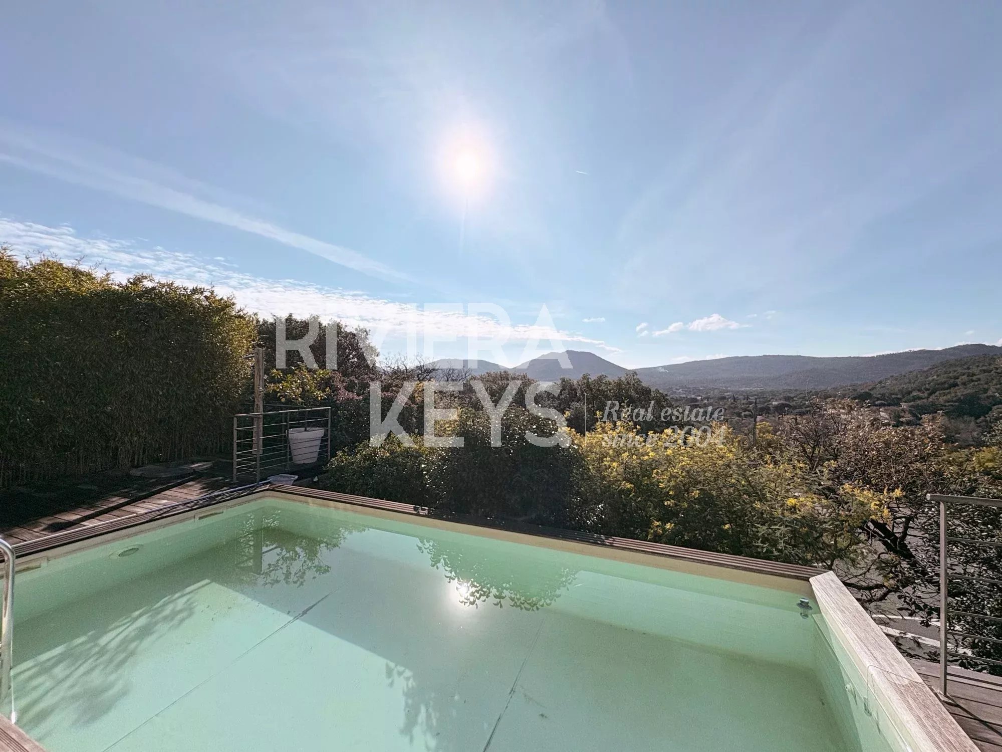 Beliggende i rolige og svært ettertraktede omgivelser, kun 1,4 km fra landsbysentrum, har denne sjarmerende og lyse boligen fri utsikt over åsene i Le Plan-de-la-Tour. Med 120 kvm fullt renovert bruksareal kombinerer eiendommen komfort, funksjonalitet og provençalsk sjarm.
