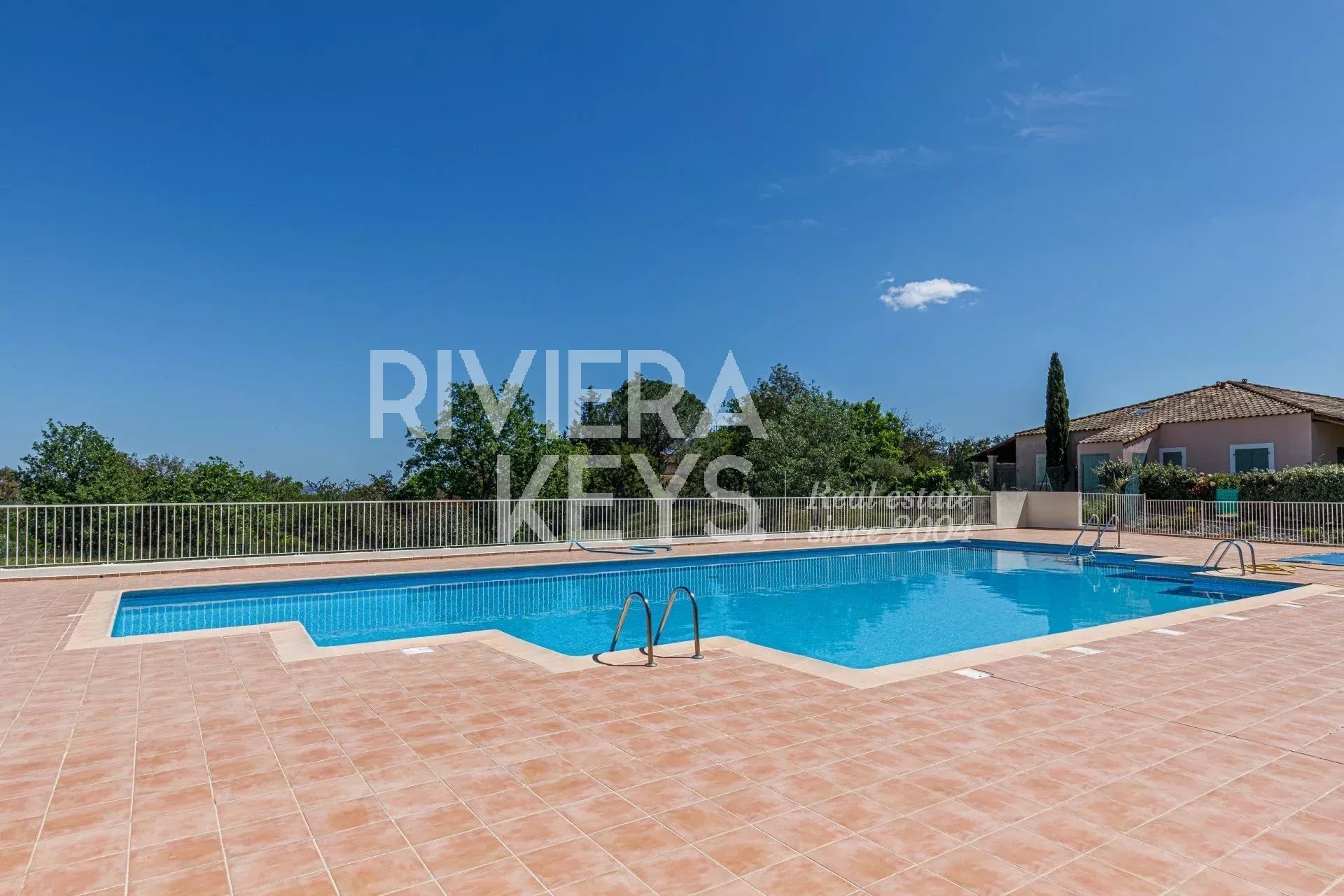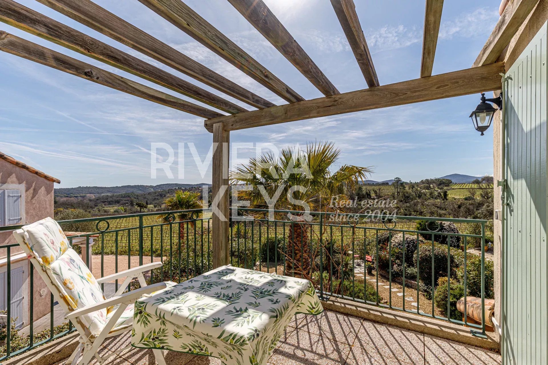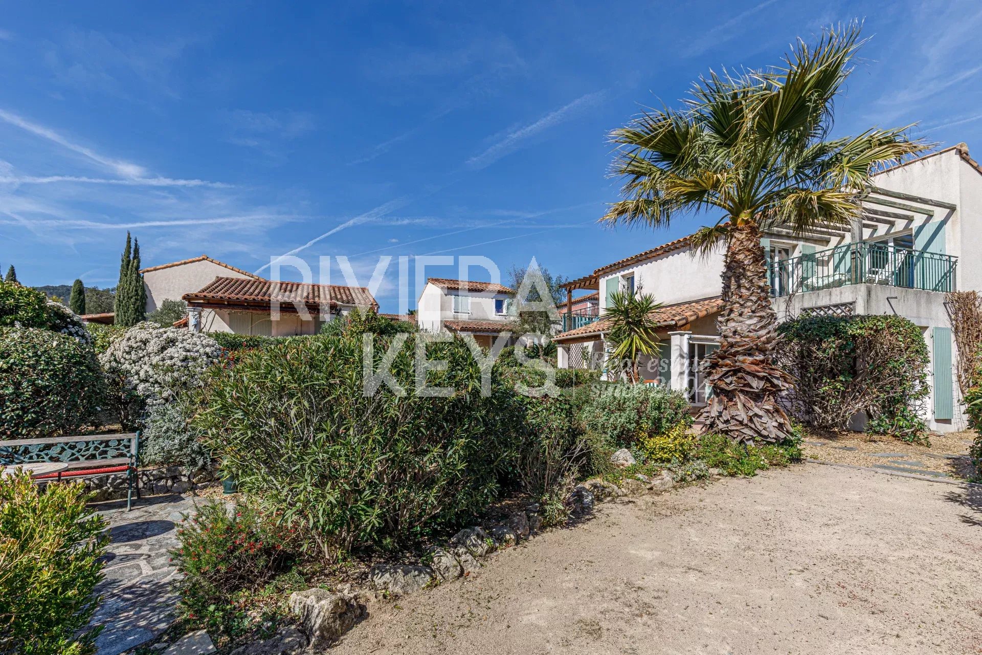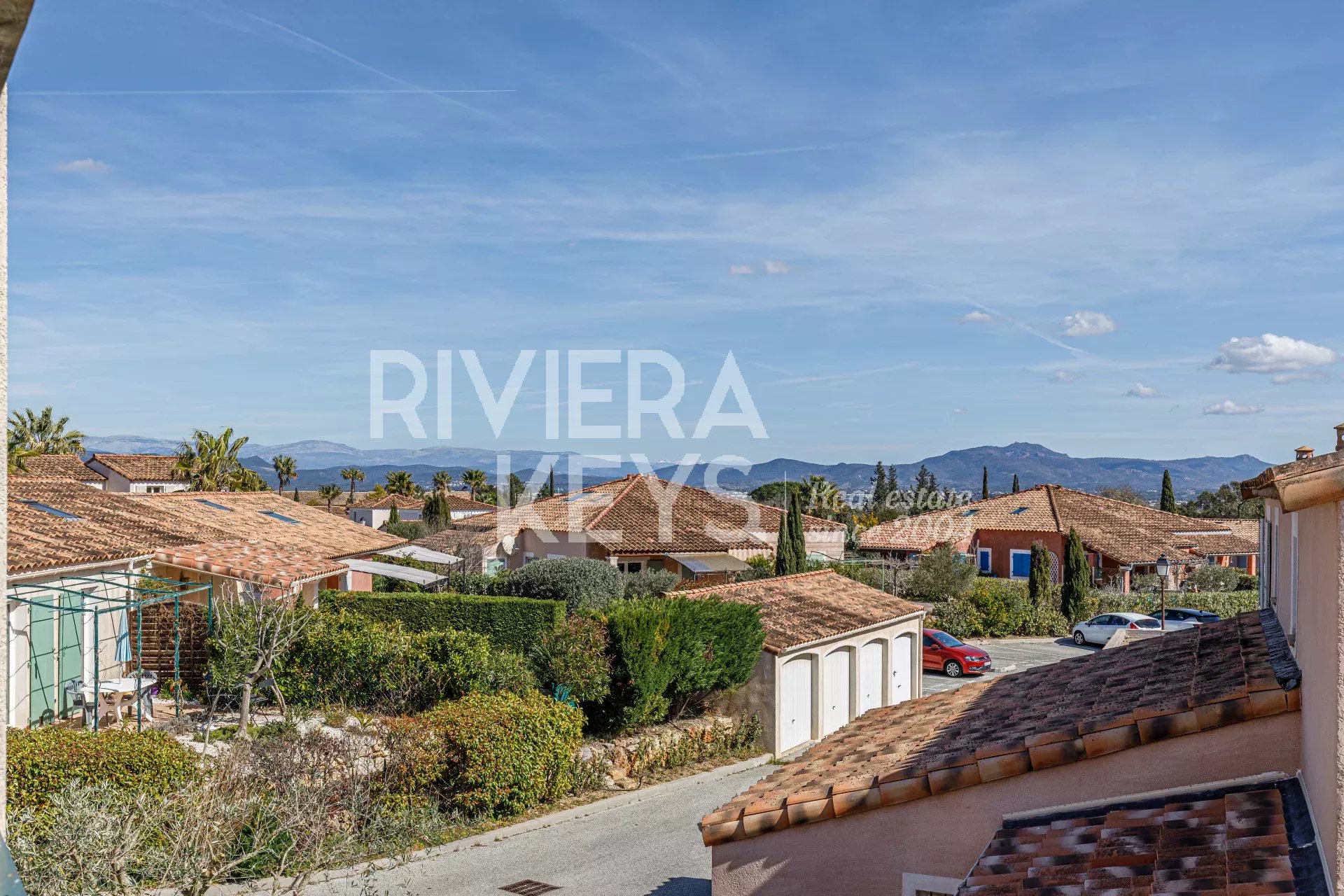 Dette sjarmerende rekkehuset på rundt 60 m² og tomt på 250 m², har flott utsikt over vinranker, og ligger i et lukket husområde nær golfbanen i Roquebrune-sur-Argens.