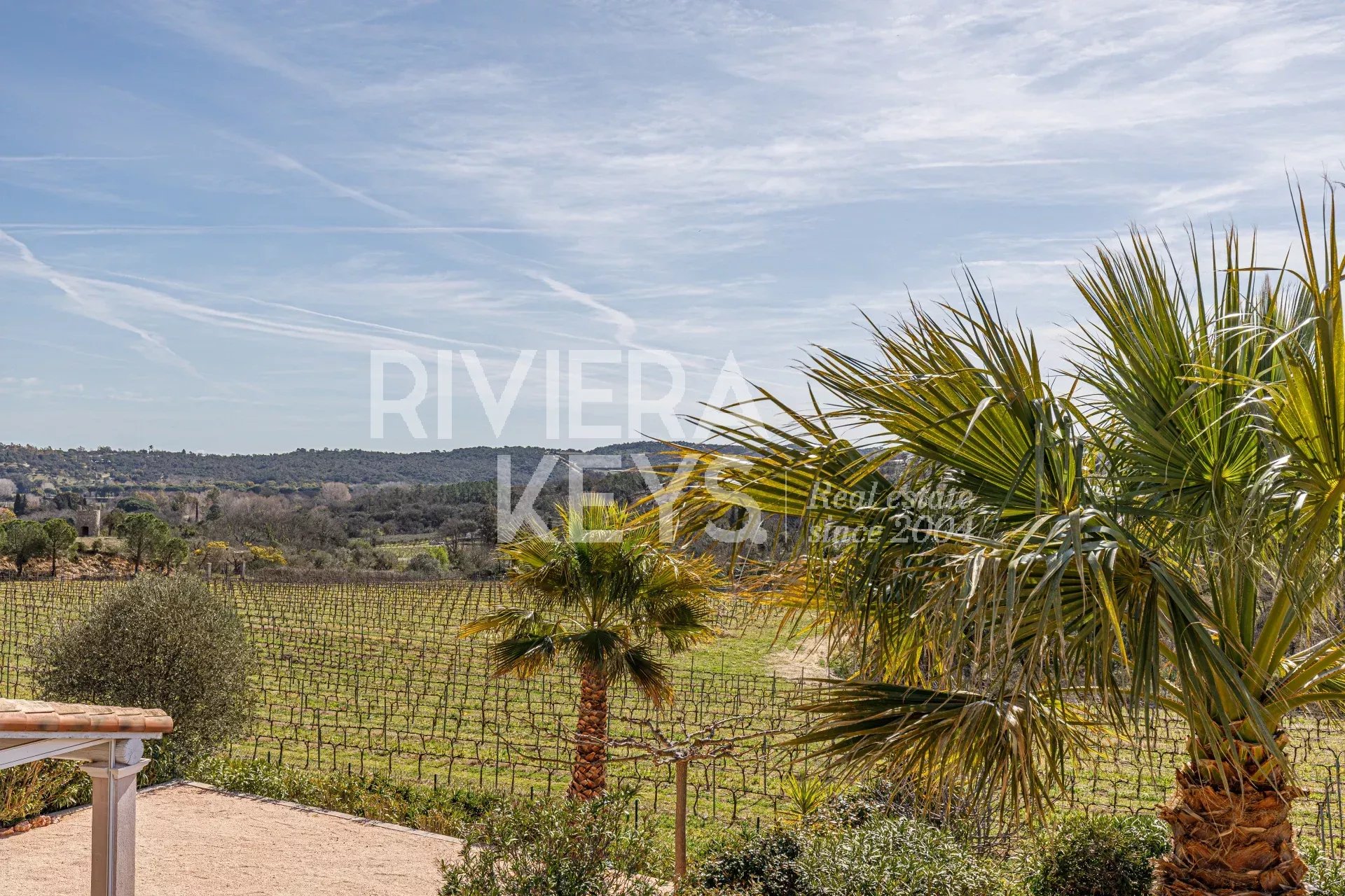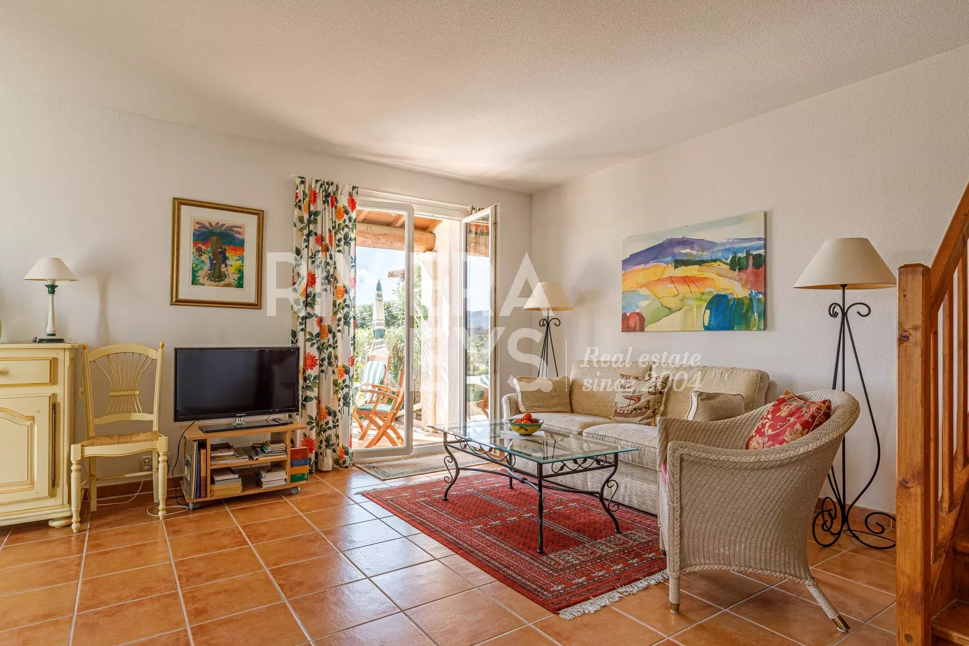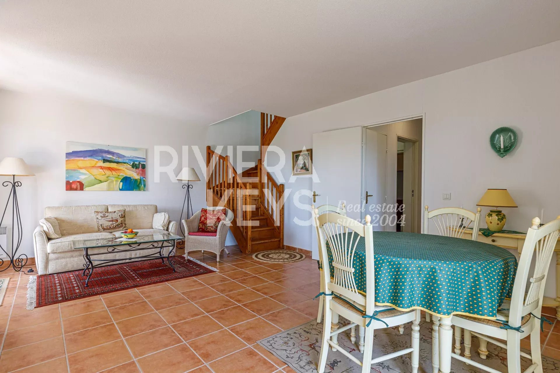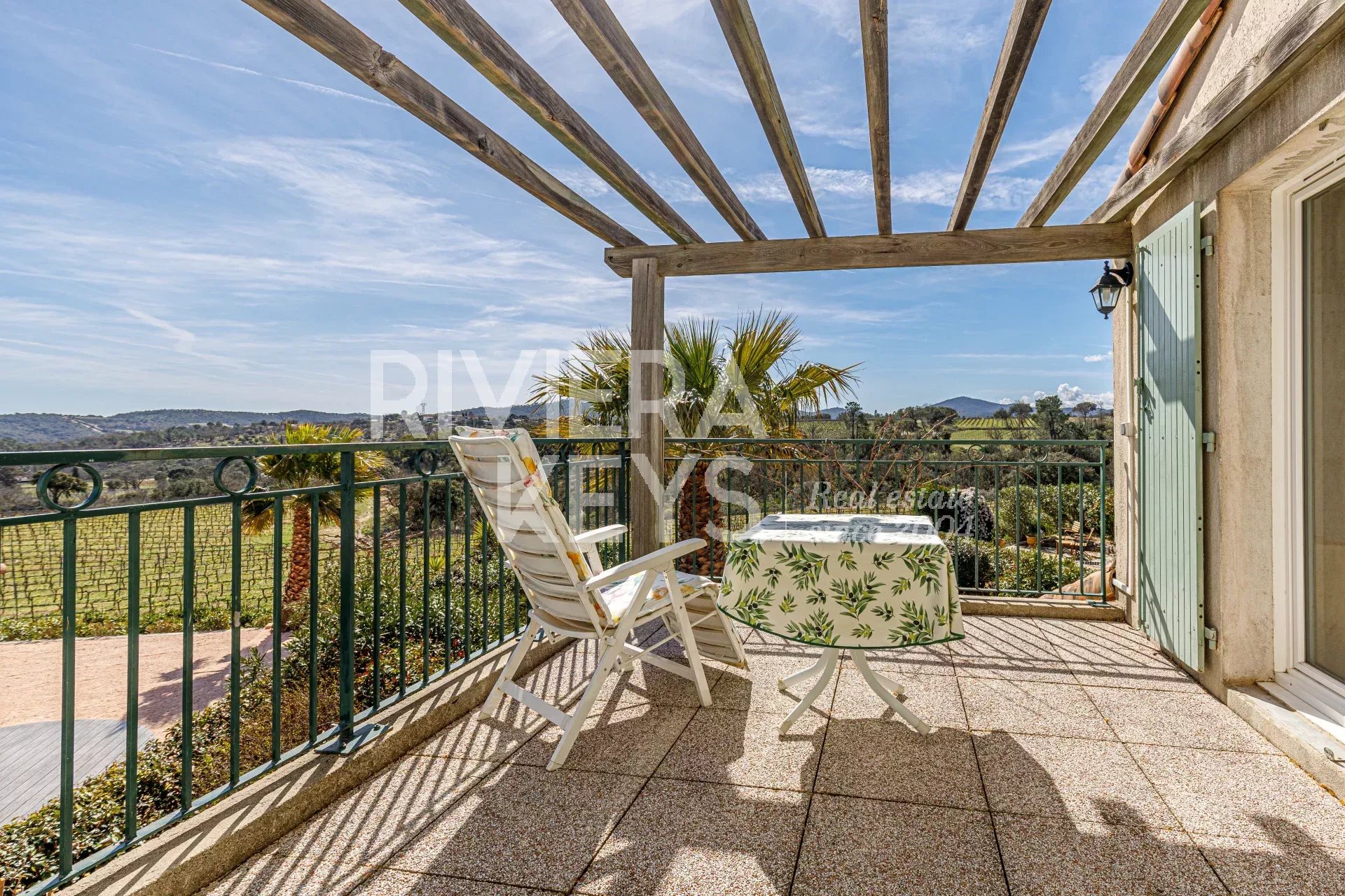 Dette sjarmerende rekkehuset på rundt 60 m² og tomt på 250 m², har flott utsikt over vinranker, og ligger i et lukket husområde nær golfbanen i Roquebrune-sur-Argens.