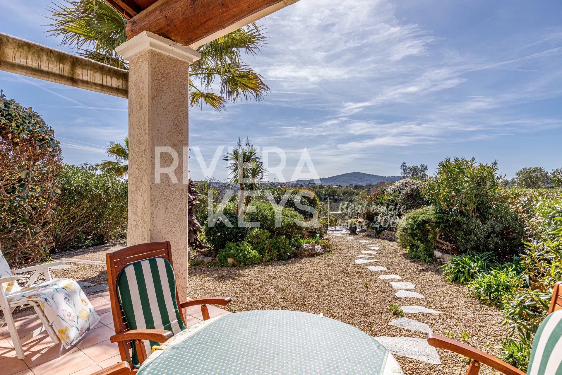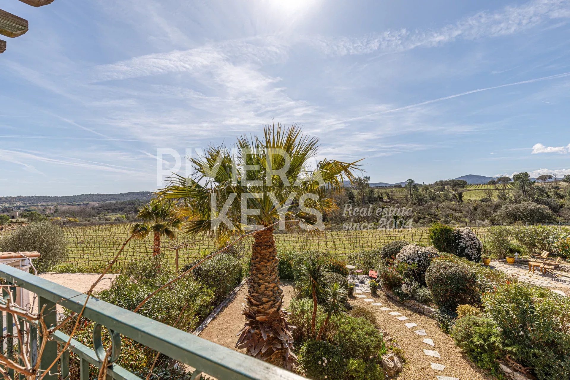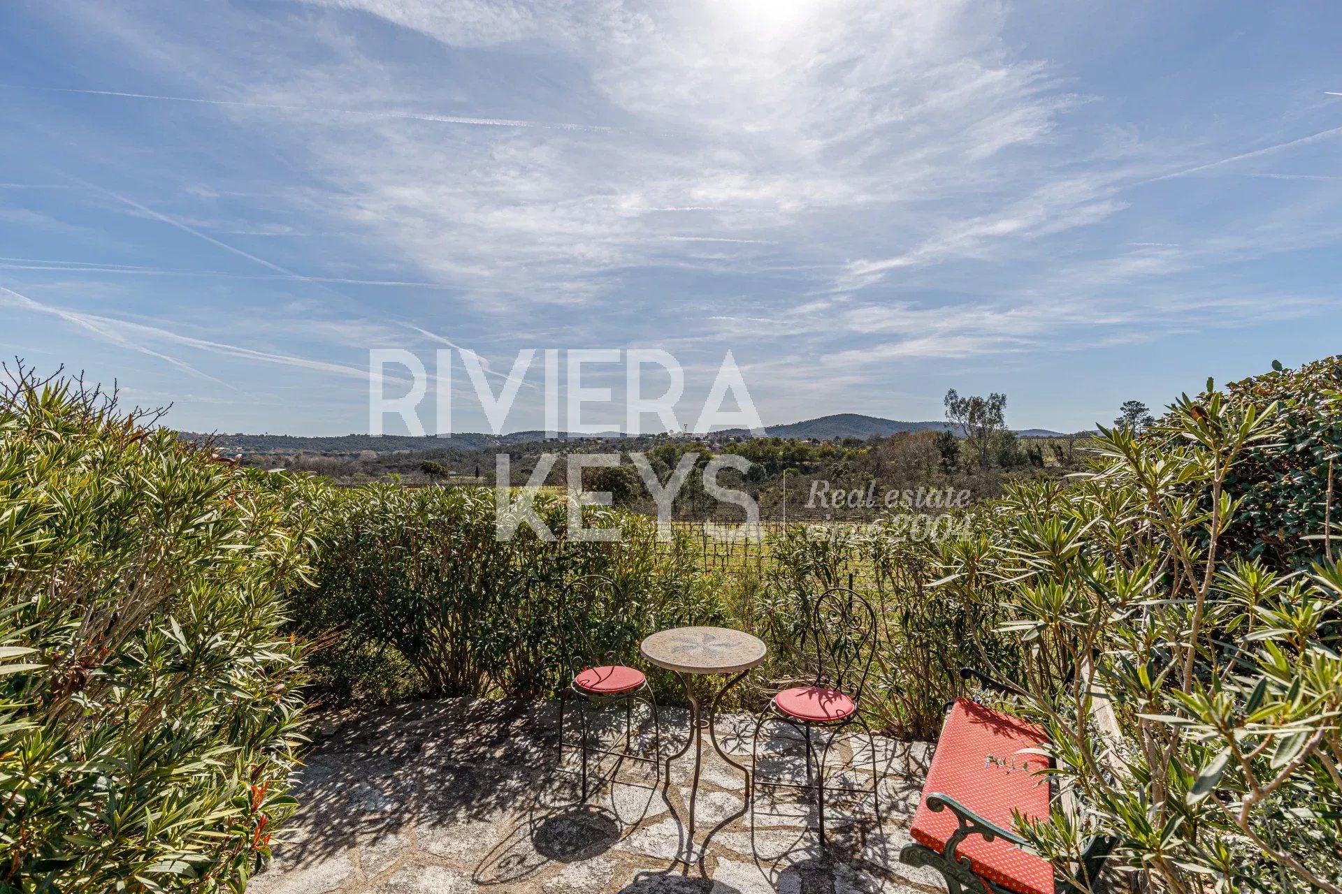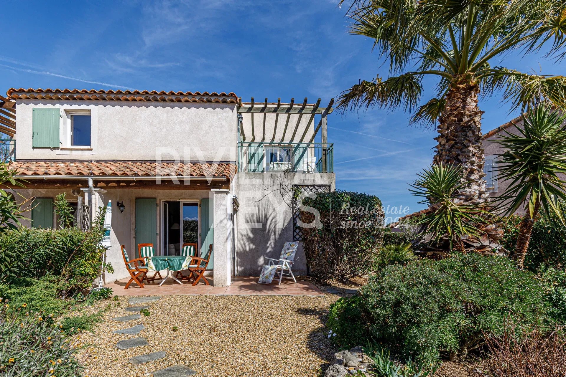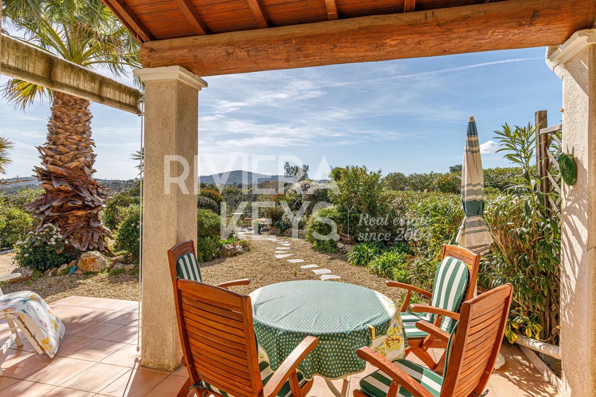 Dette sjarmerende rekkehuset på rundt 60 m² og tomt på 250 m², har flott utsikt over vinranker, og ligger i et lukket husområde nær golfbanen i Roquebrune-sur-Argens.