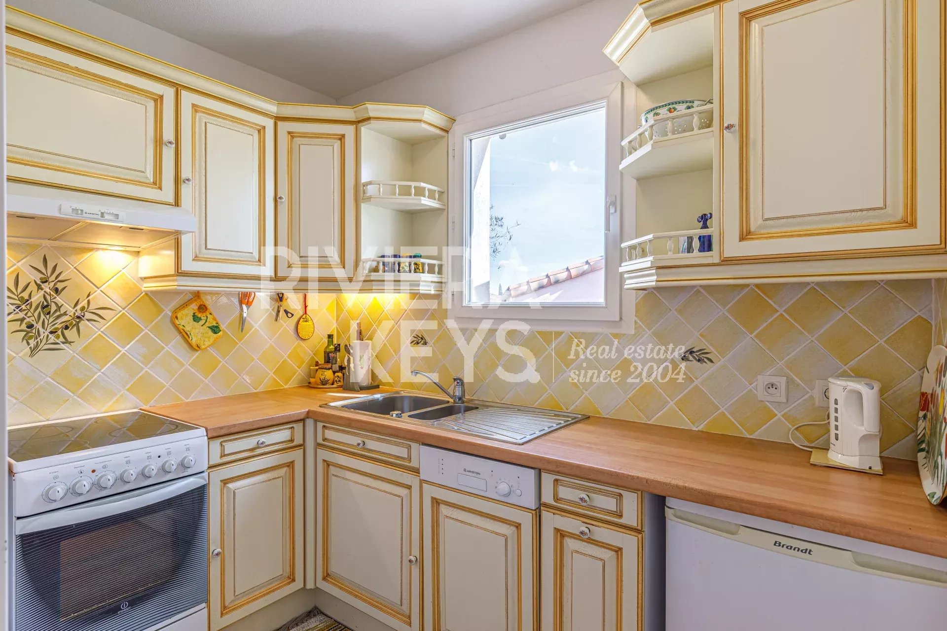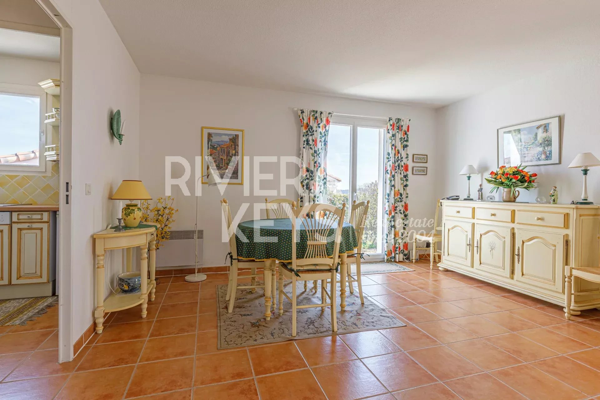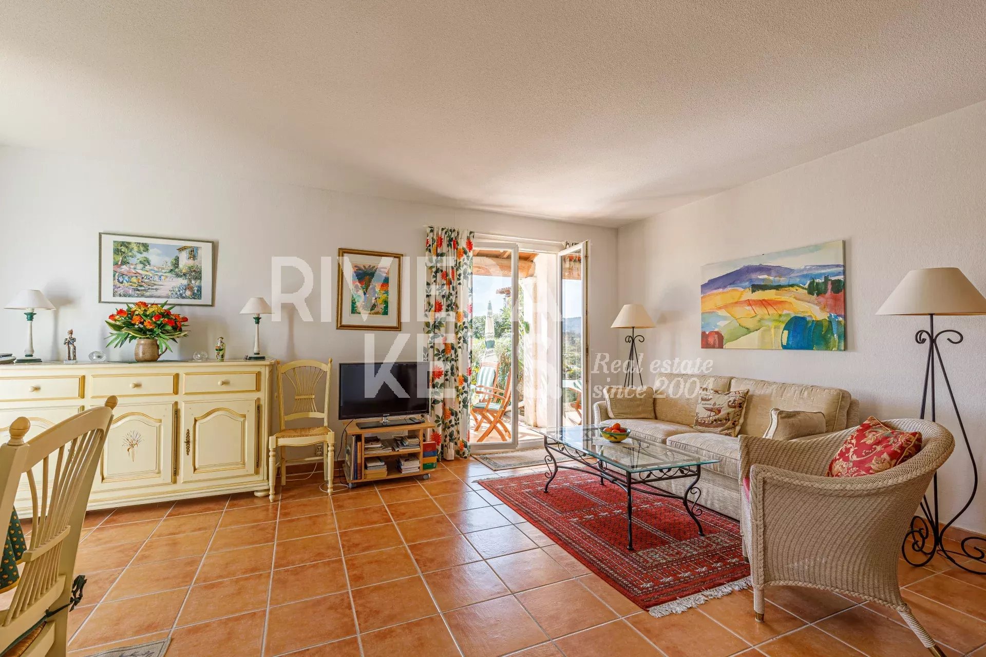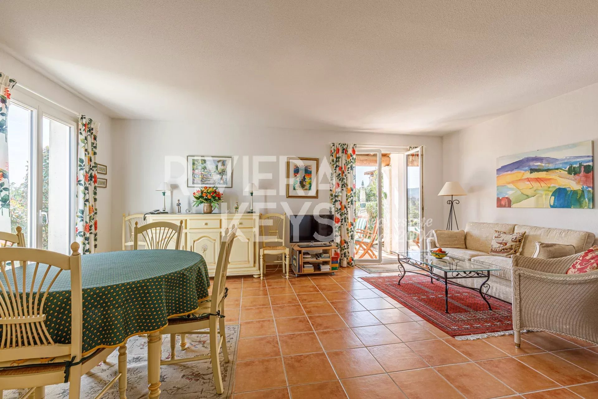 Dette sjarmerende rekkehuset på rundt 60 m² og tomt på 250 m², har flott utsikt over vinranker, og ligger i et lukket husområde nær golfbanen i Roquebrune-sur-Argens.