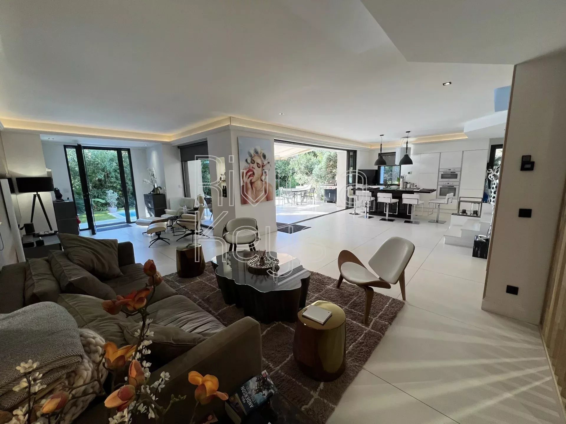 I ett lugnt och säkert område, bara några minuter till fots från stränder och butiker, ligger denna eleganta moderna villa med soligt söderläge. Den omges av en vacker trädgård med saltvattenspool på 13 x 4 m.