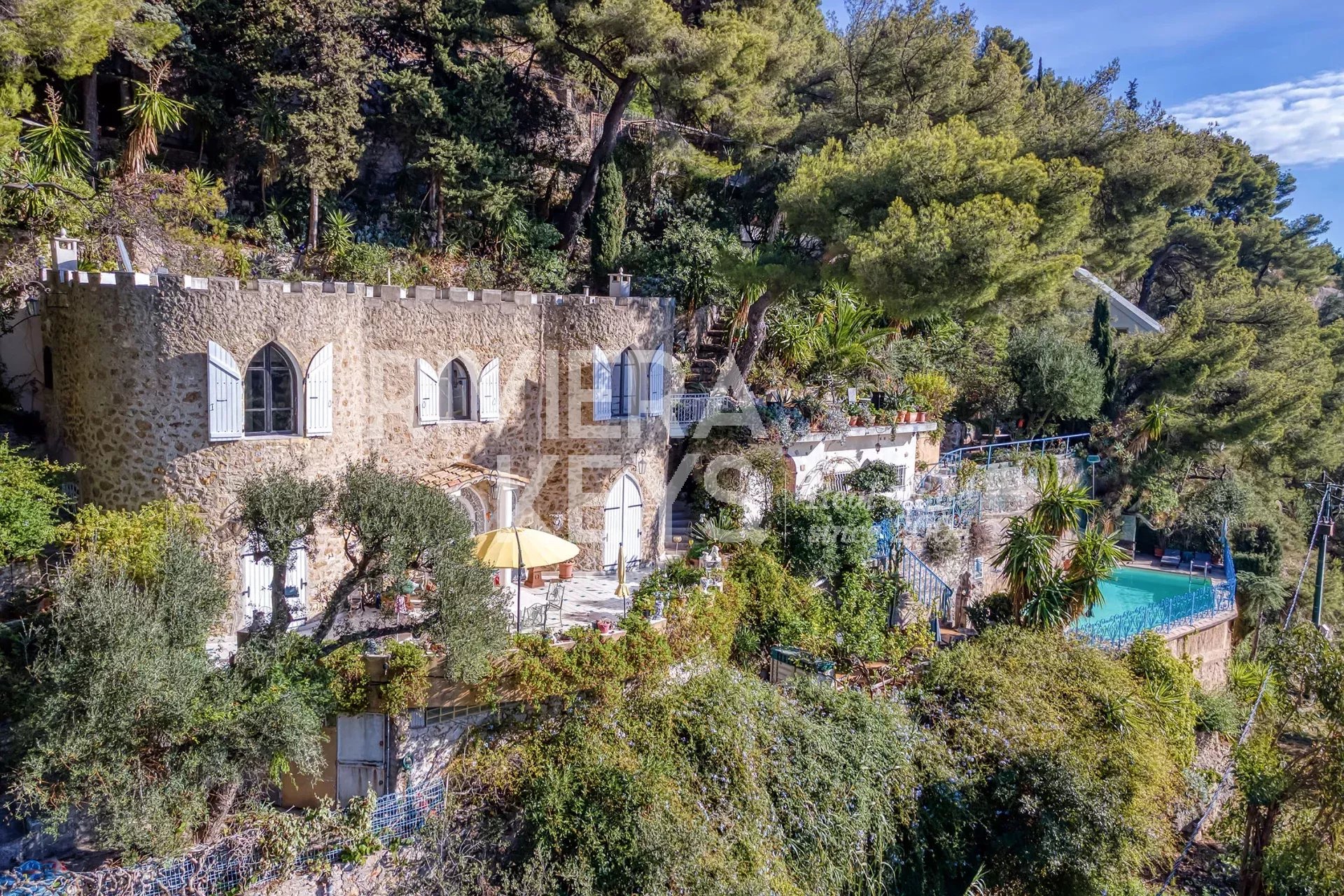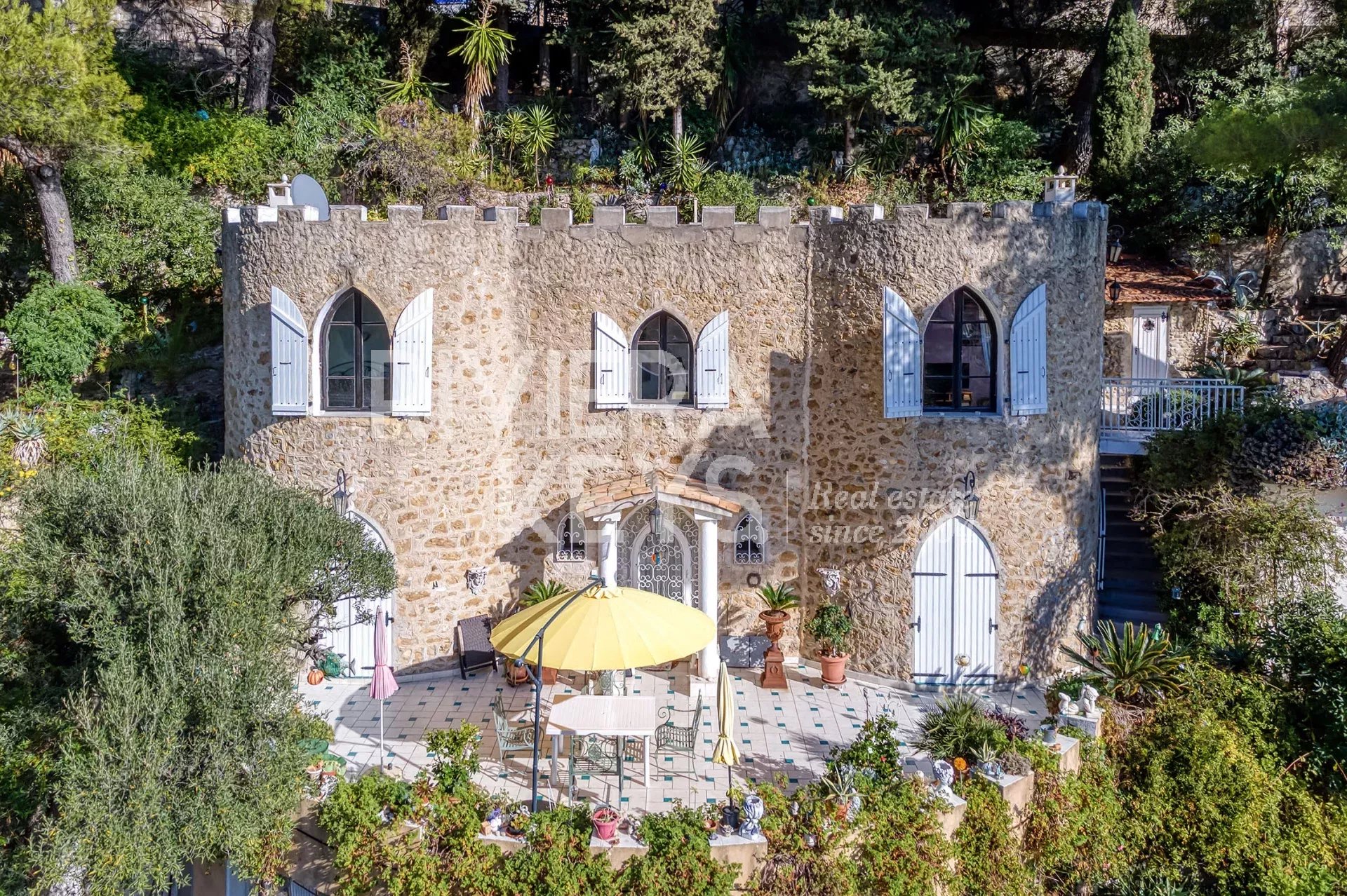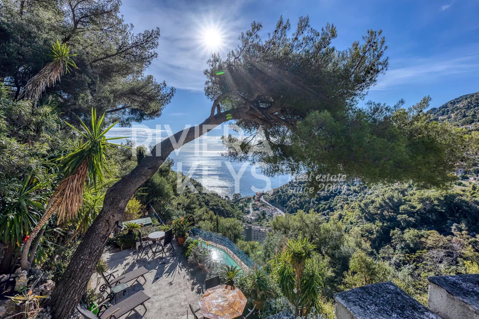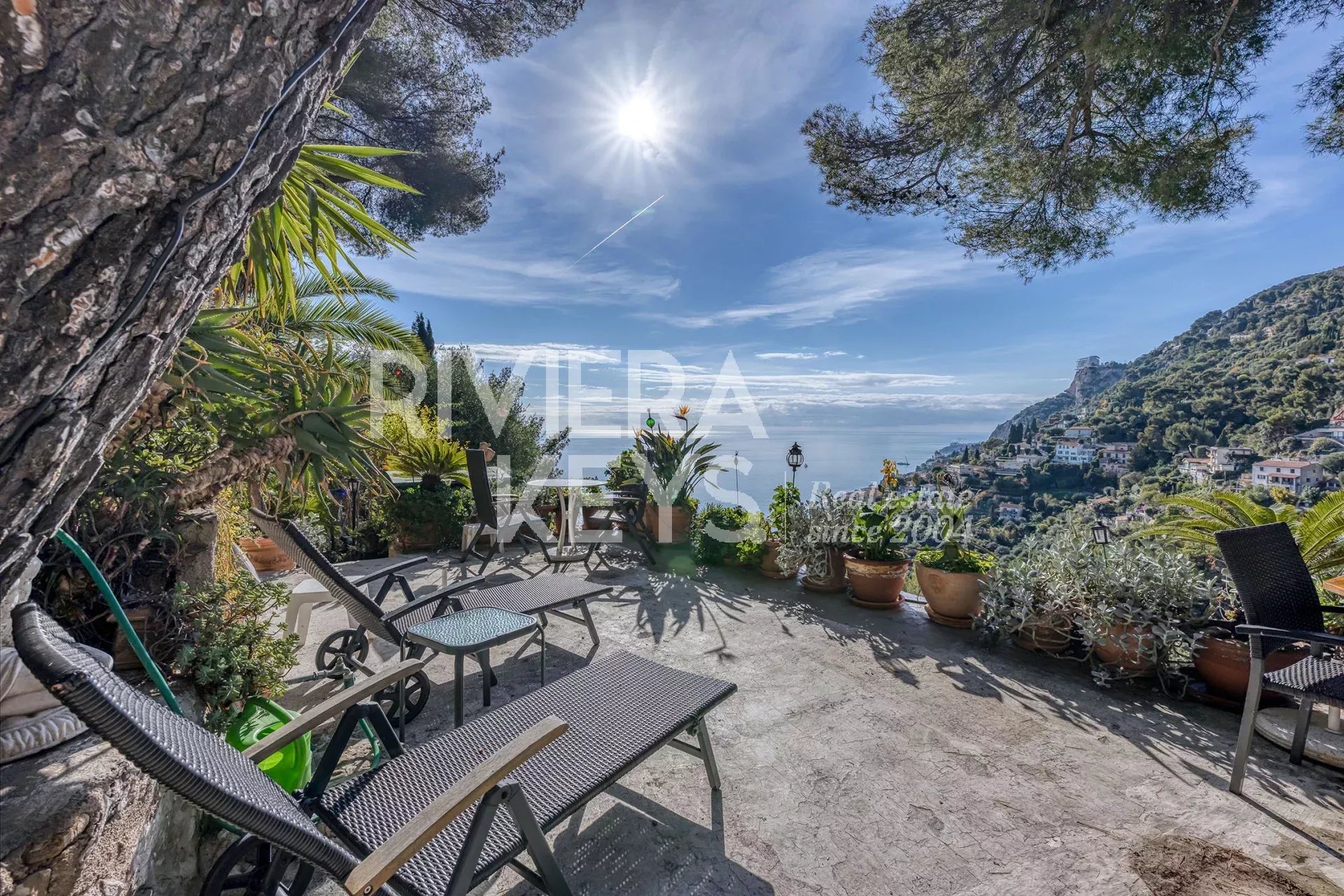 De 7 terrasserna, alla i soligt läge, bjuder på en imponerande utsikt över Medelhavet, Mont Gros och Monacos klippa, i ett lugnt och eftertraktat område.