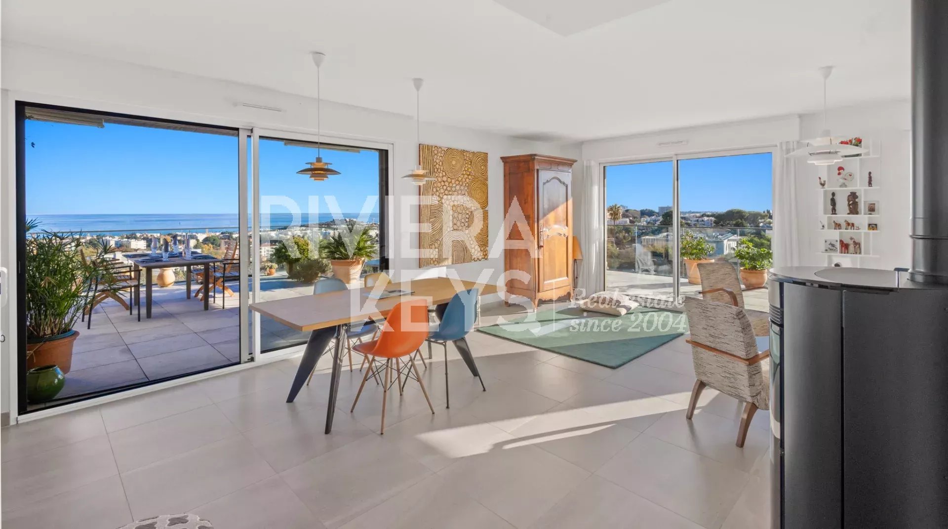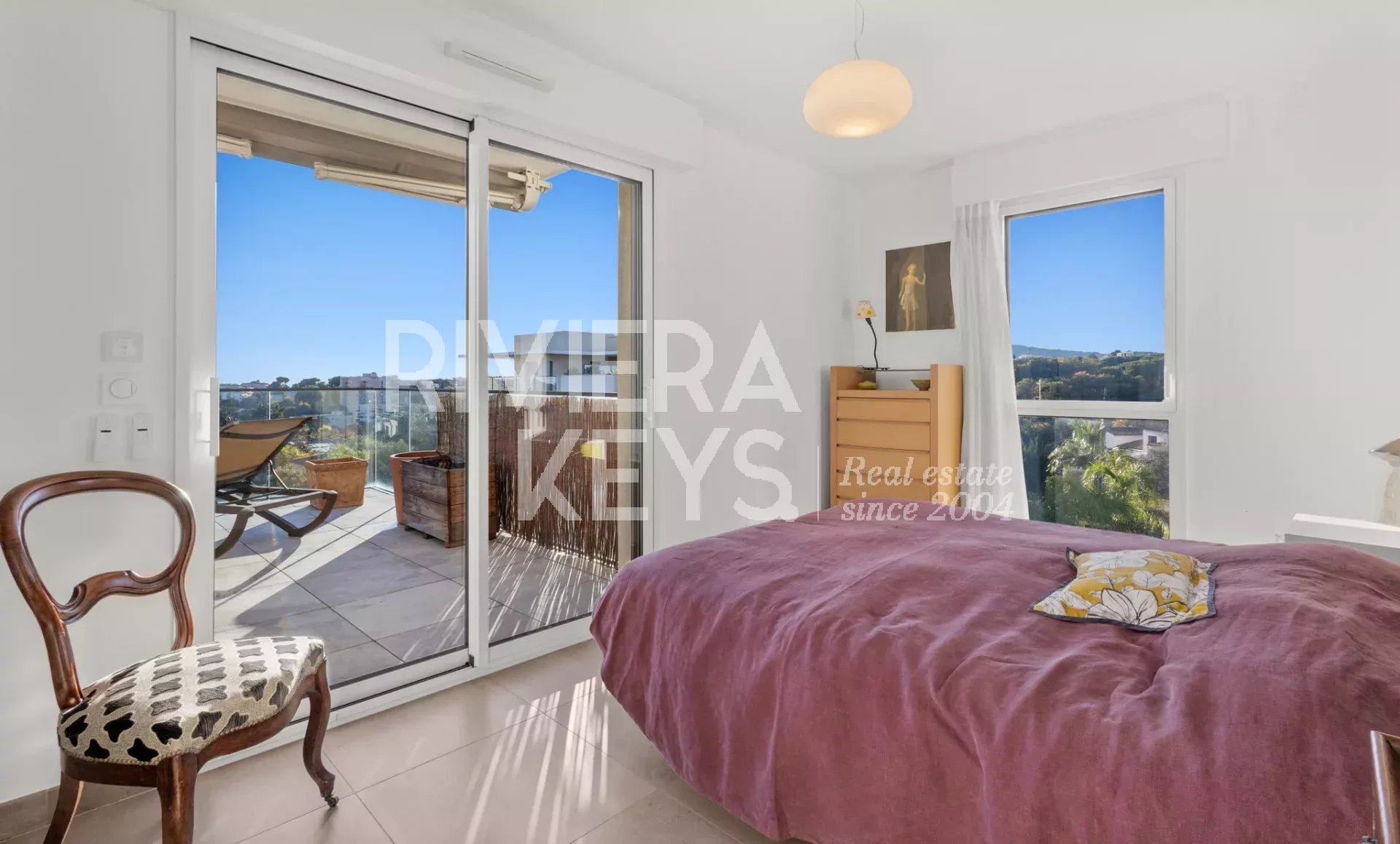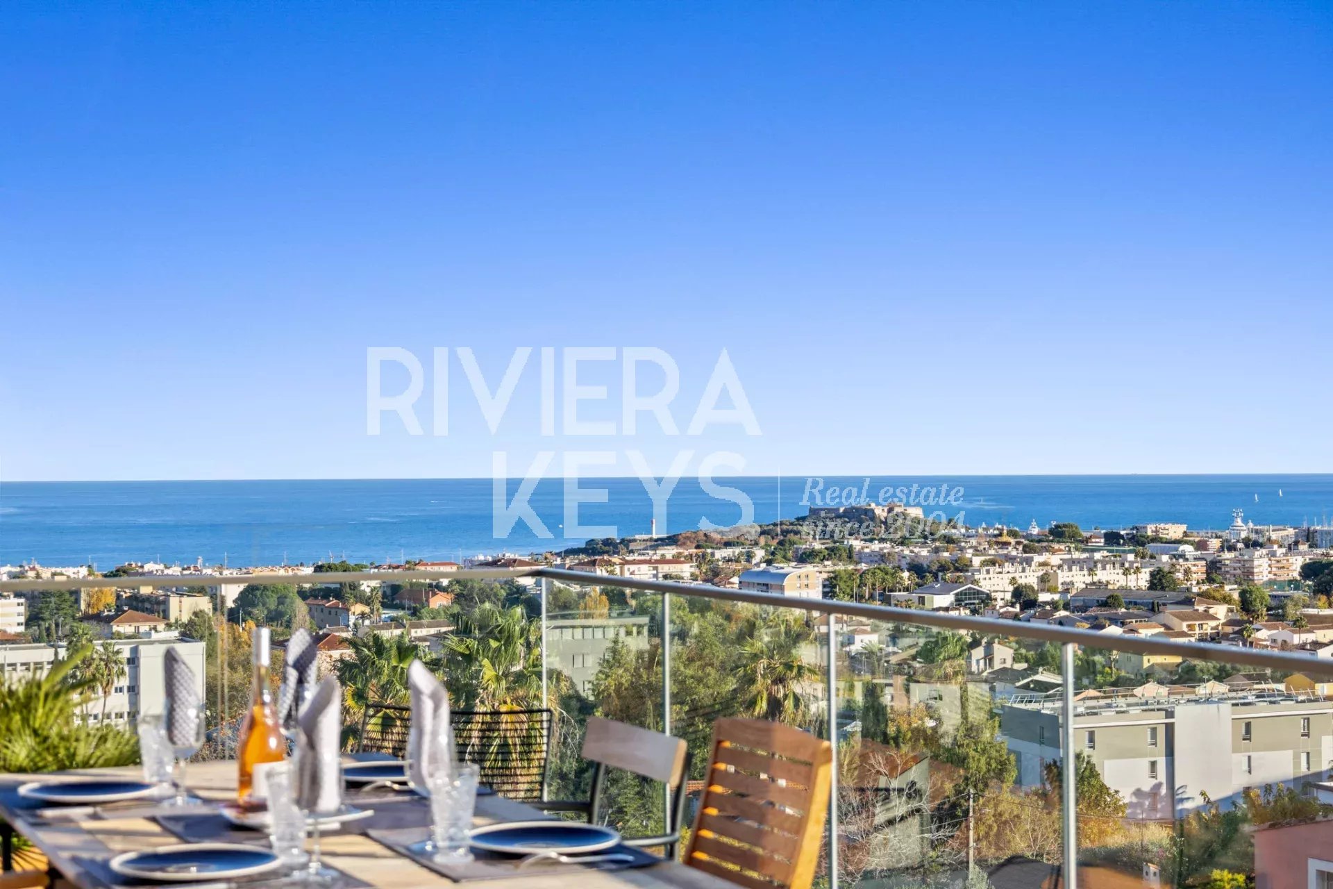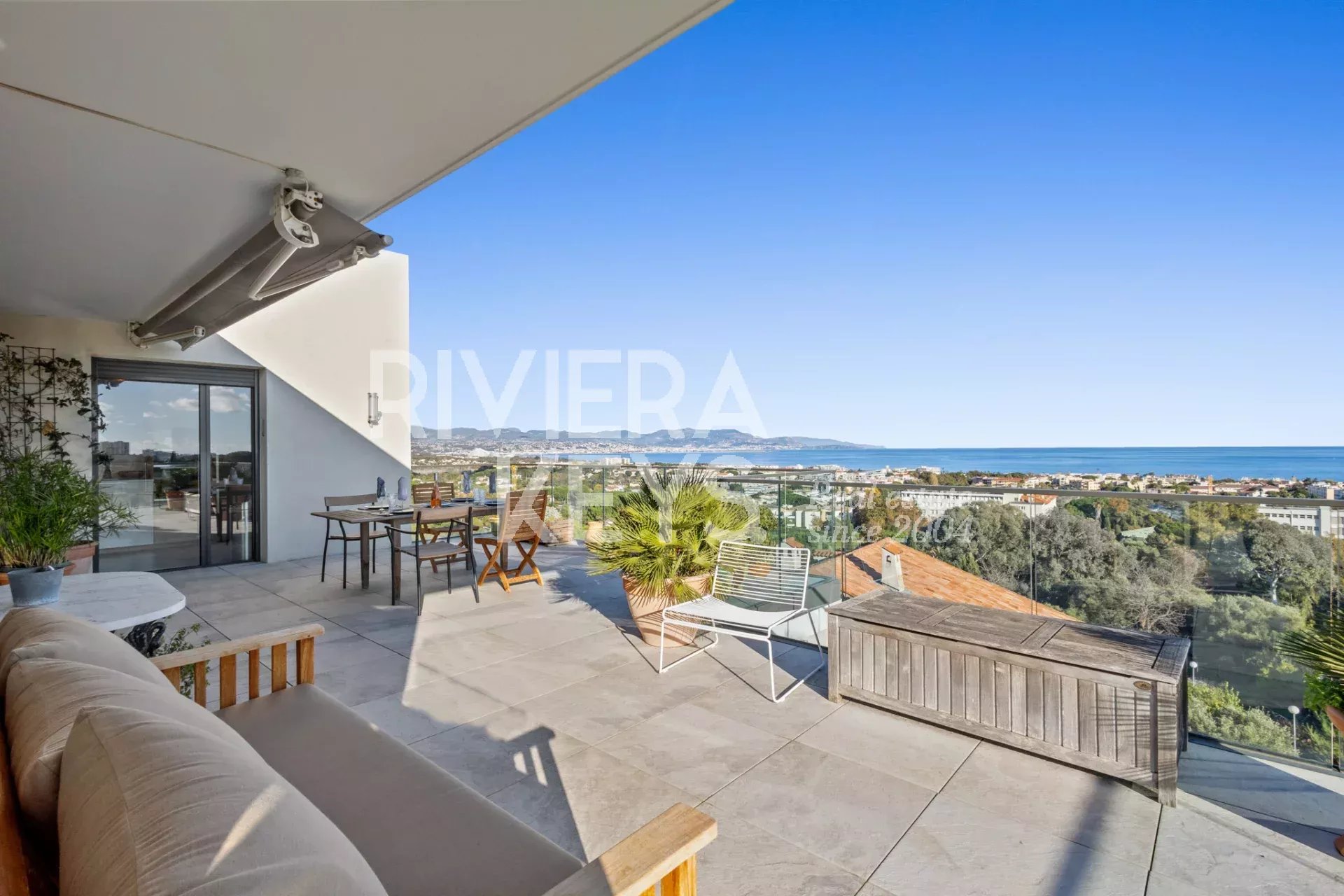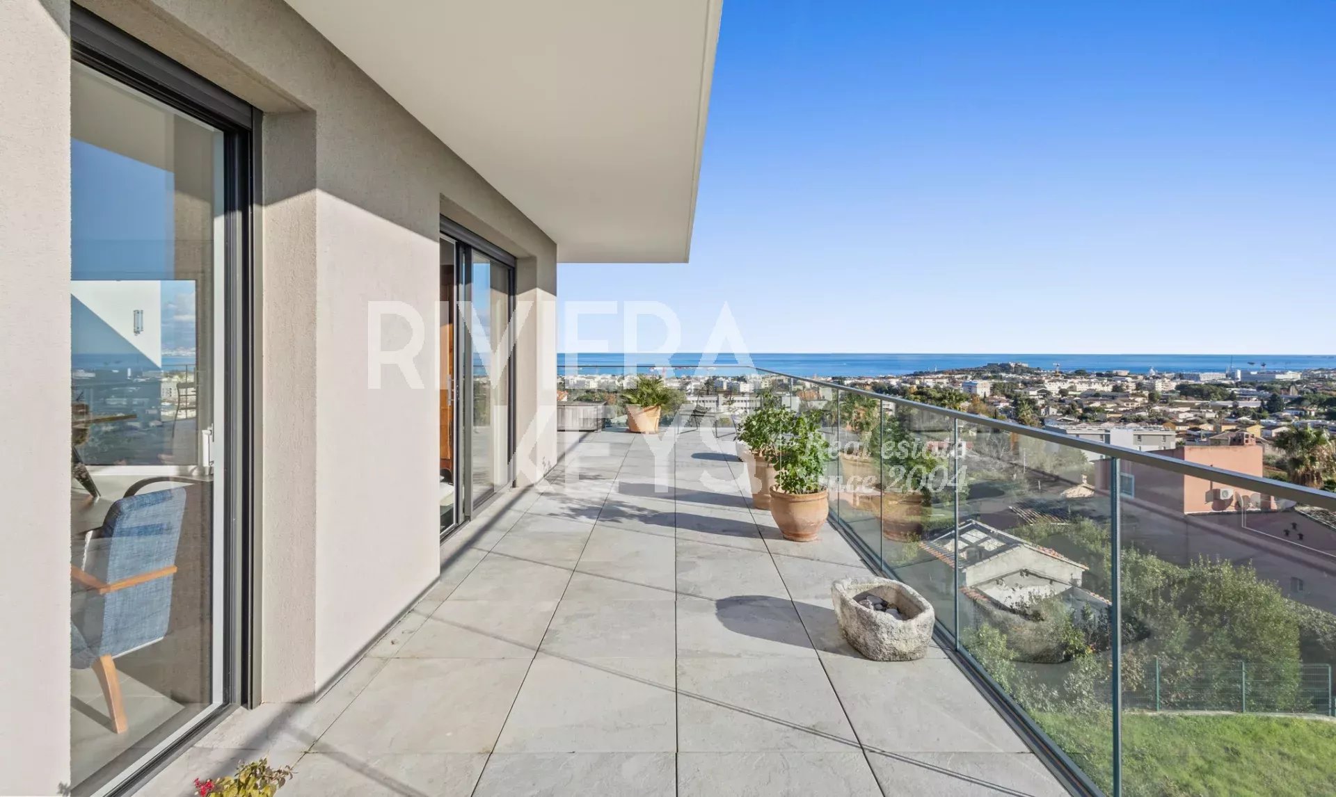 Denna lägenhet ligger i ett litet modernt och exklusivt residens med pool, och erbjuder en solrik terrass på 78 m² med en spektakulär havsutsikt.