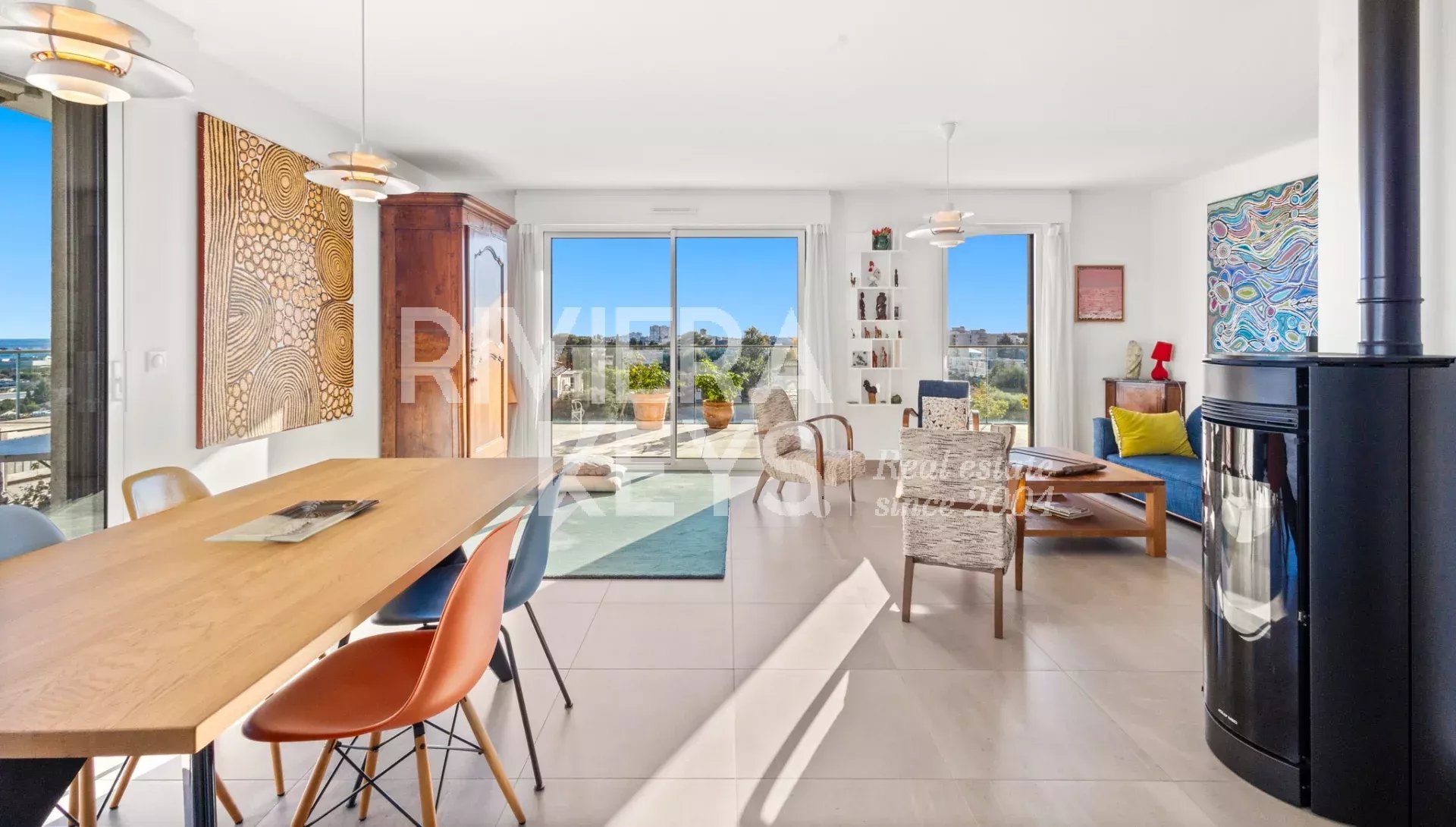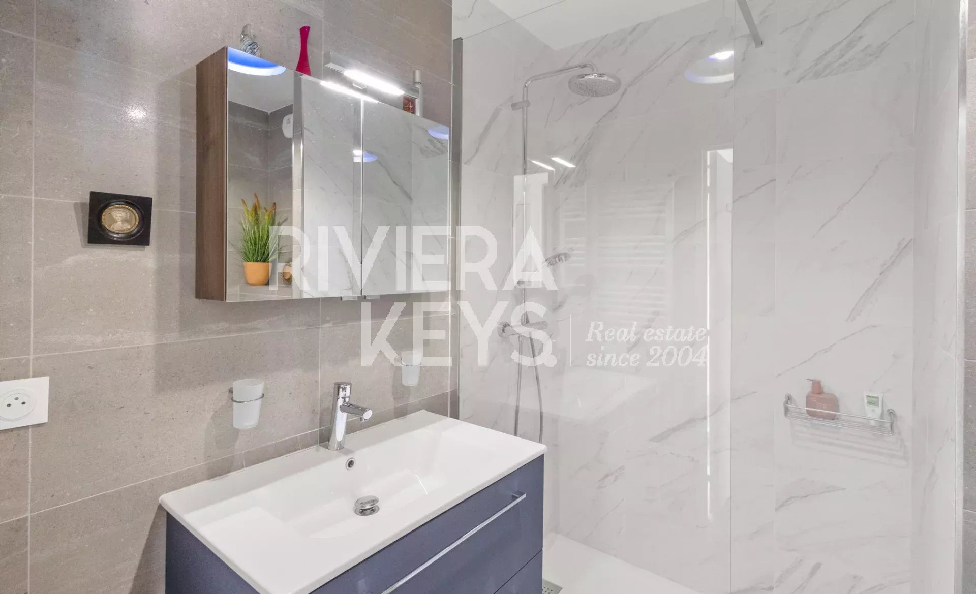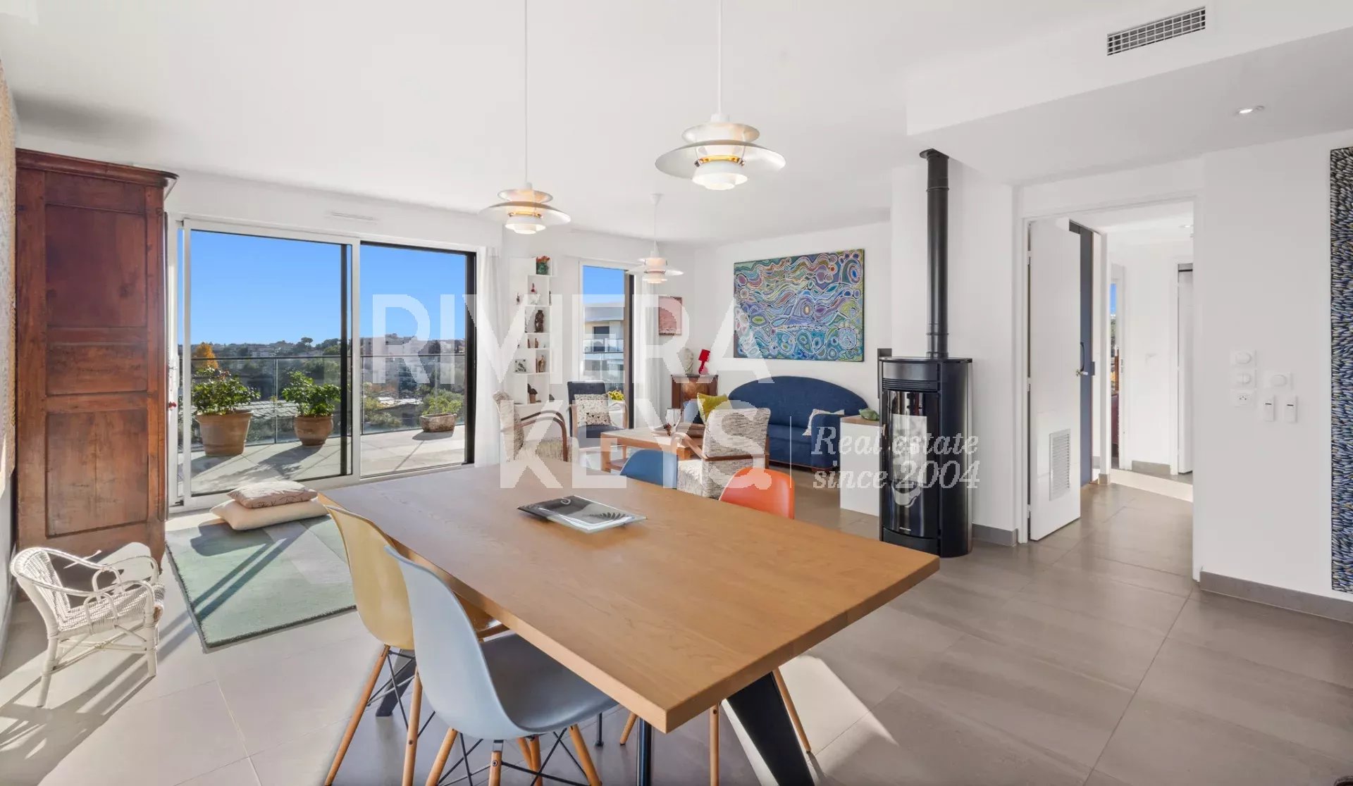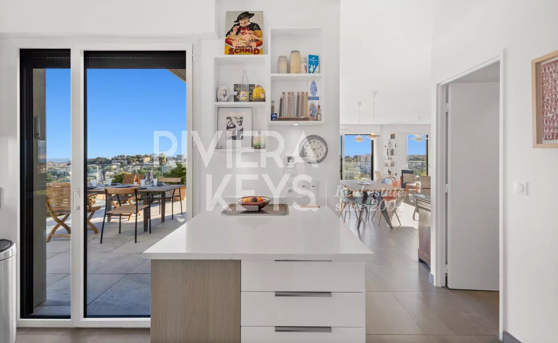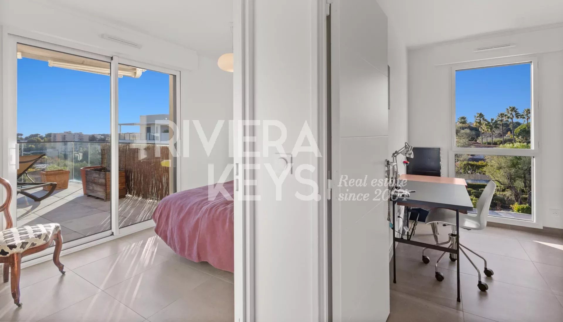 Denna lägenhet ligger i ett litet modernt och exklusivt residens med pool, och erbjuder en solrik terrass på 78 m² med en spektakulär havsutsikt.