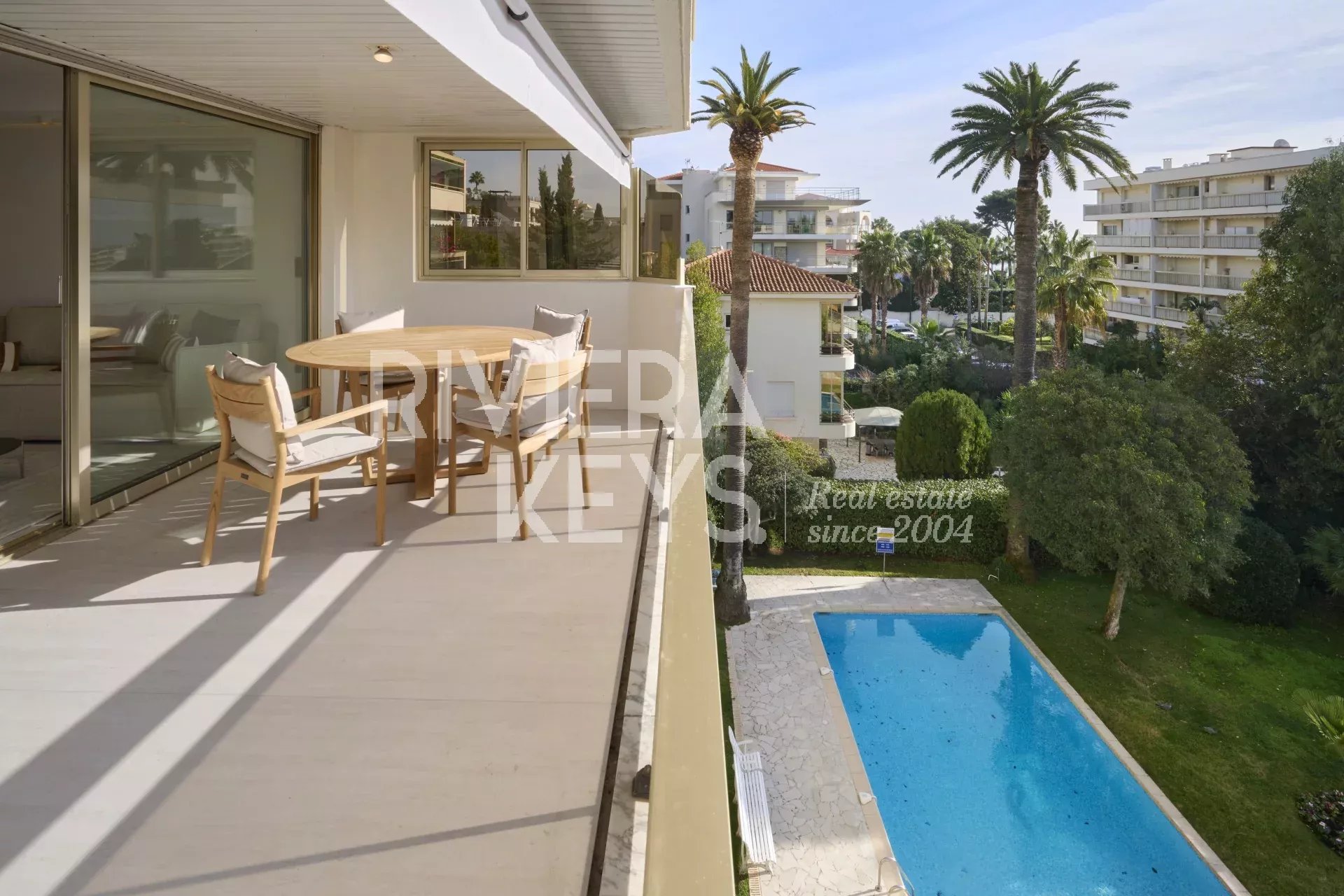 Modern och rymlig 4-rumslägenhet, med en yta på 98m2, belägen i ett residens med pool, i hjärtat av det populära Palm Beach-distriktet.