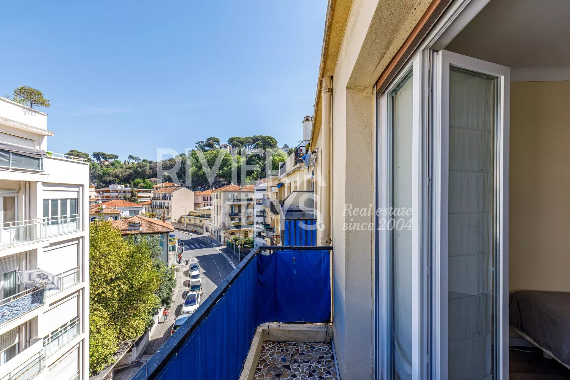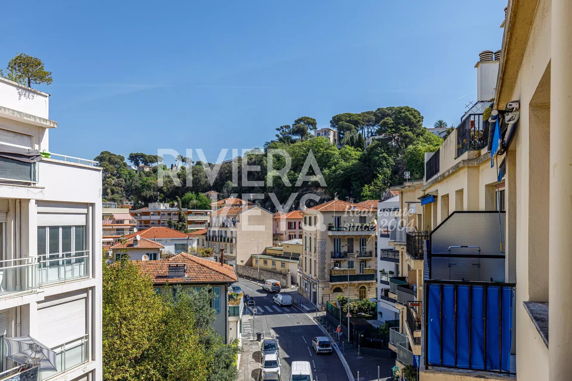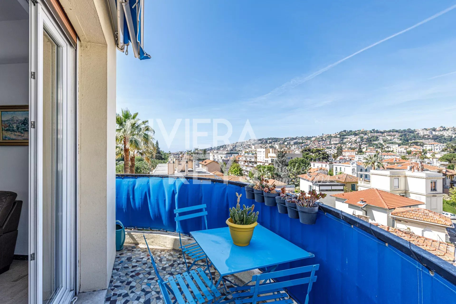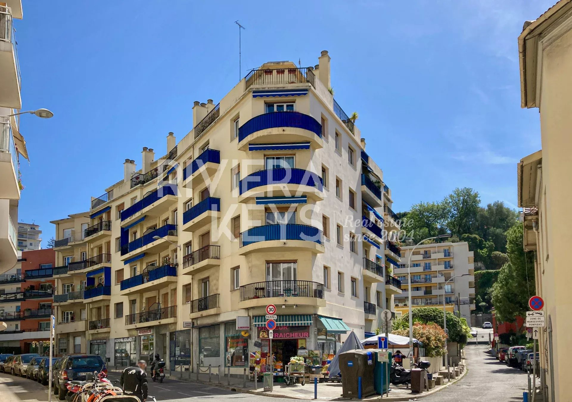Ljus lägenhet i gott skick med högt i tak, på cirka 70 m² med två sovrum, på näst översta våningen med hiss i en välskött fastighet i området Chambrun i norra Nice. Nära affärer, spårvagn, skolor och centrum. Hall, ett vardagsrum som vetter mot en balkong med fri utsikt, kök i öppen planlösning, två sovrum, ett badrum, garderober, en separat toalett och ytterligare en balkong. Möjlighet att köpa garage i tillägg.