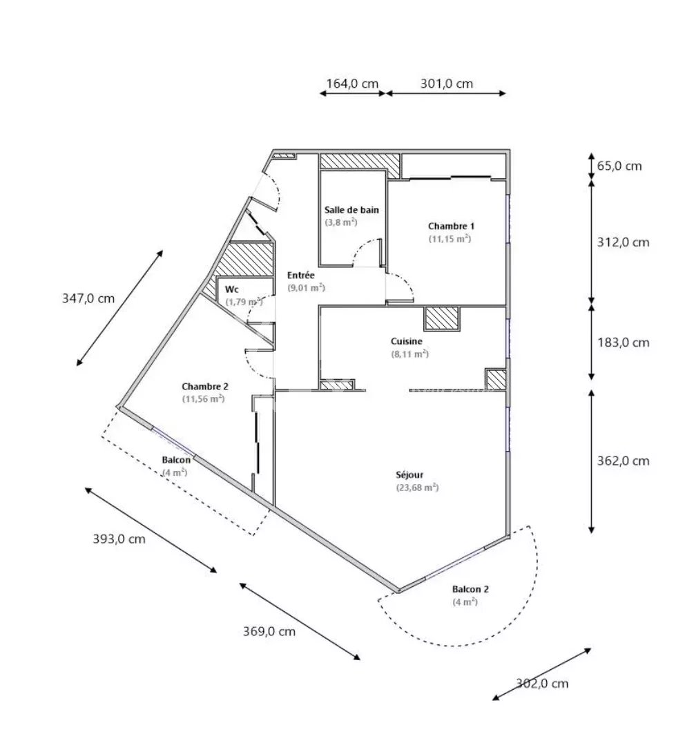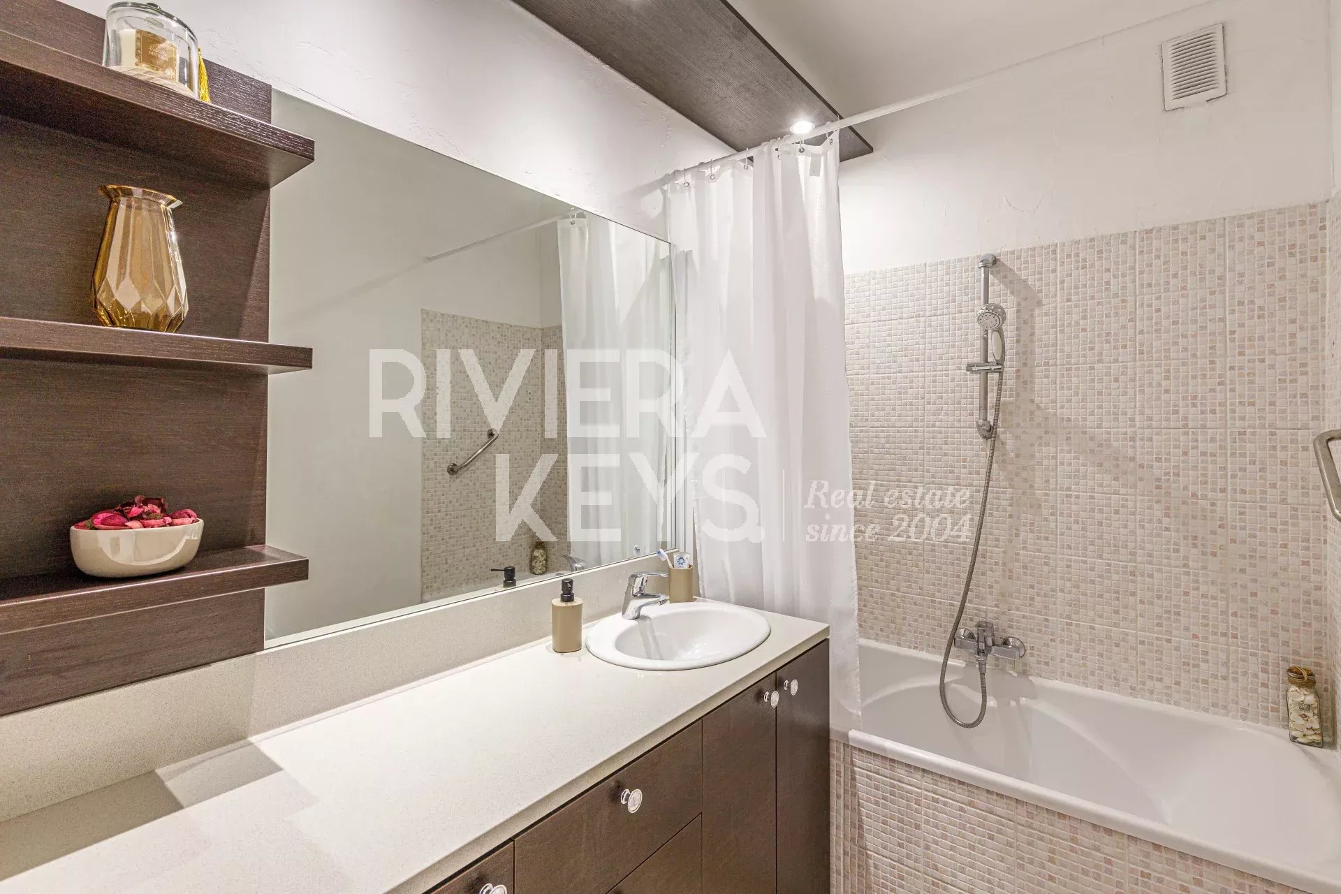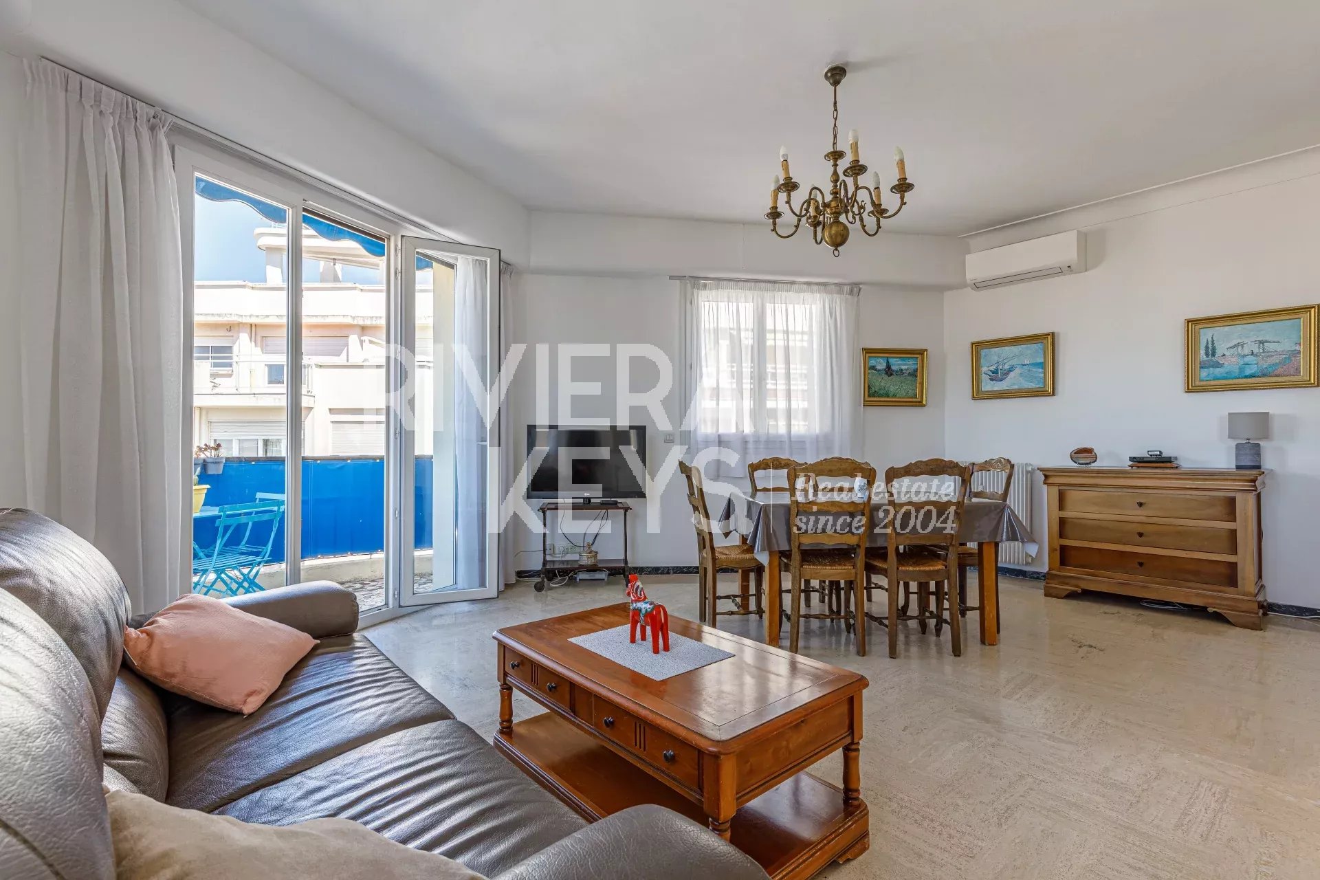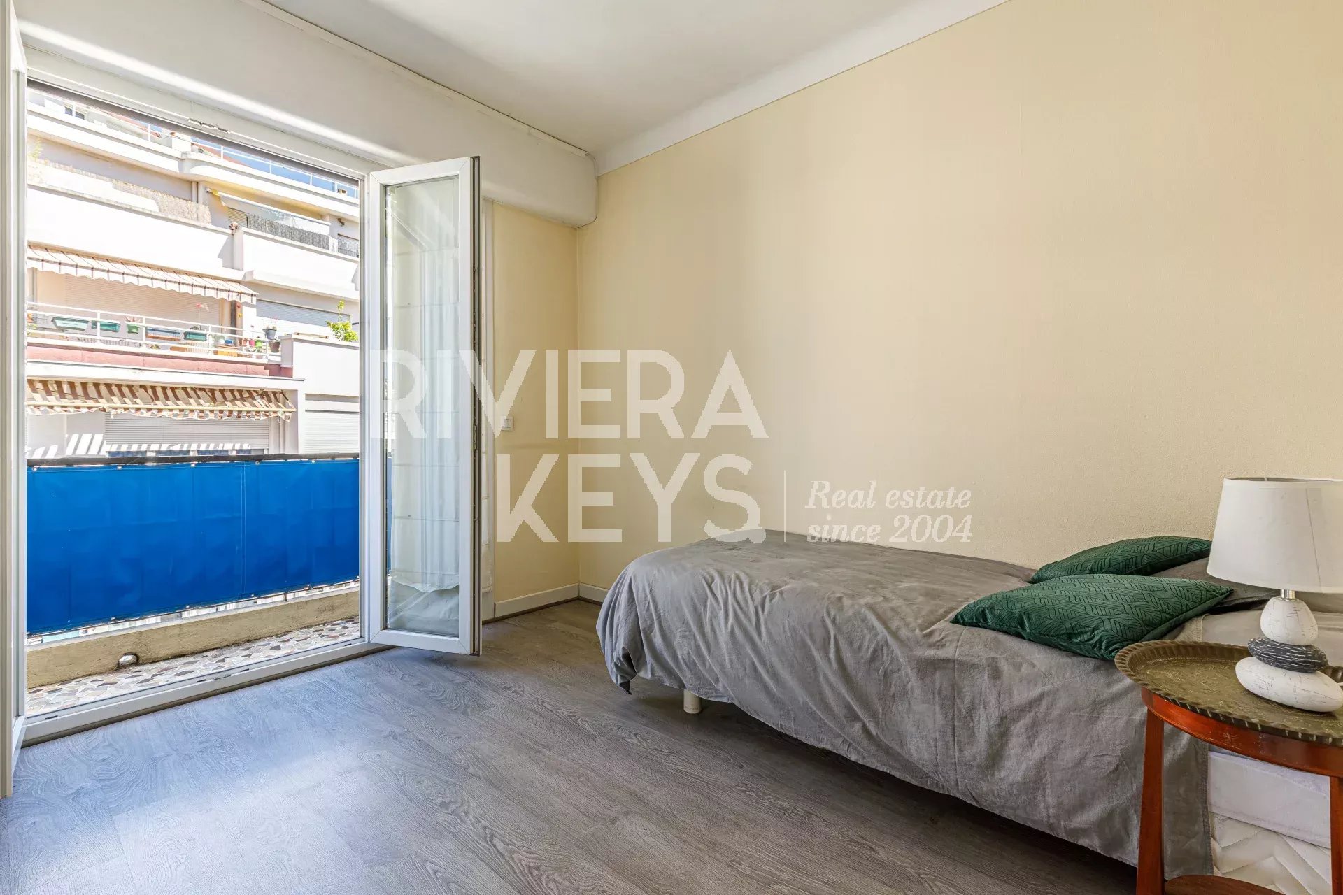 Ljus lägenhet i gott skick med högt i tak, på cirka 70 m² med två sovrum, på näst översta våningen med hiss i en välskött fastighet i området Chambrun i norra Nice. Nära affärer, spårvagn, skolor och centrum. Hall, ett vardagsrum som vetter mot en balkong med fri utsikt, kök i öppen planlösning, två sovrum, ett badrum, garderober, en separat toalett och ytterligare en balkong. Möjlighet att köpa garage i tillägg.
