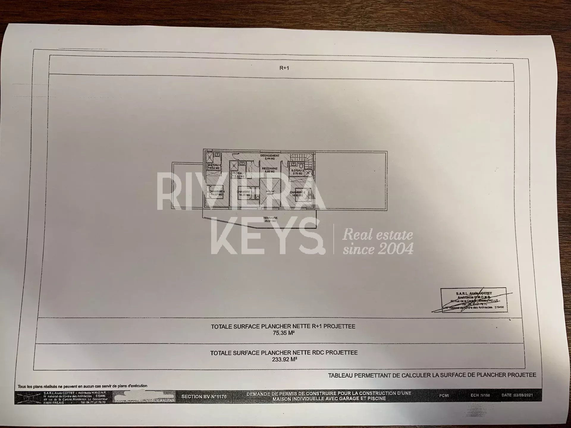 Huset innehåller ett vardagsrum på 80 m² med öppen spis, grovkök och ett öppet kök, samt ett huvudsovrum på över 18 m² med terrass, badrum, separat toalett och klädkammare.
