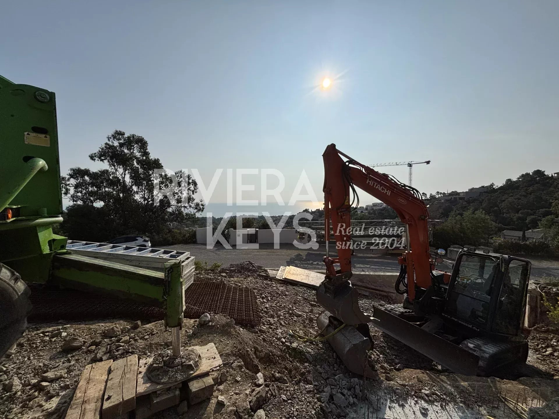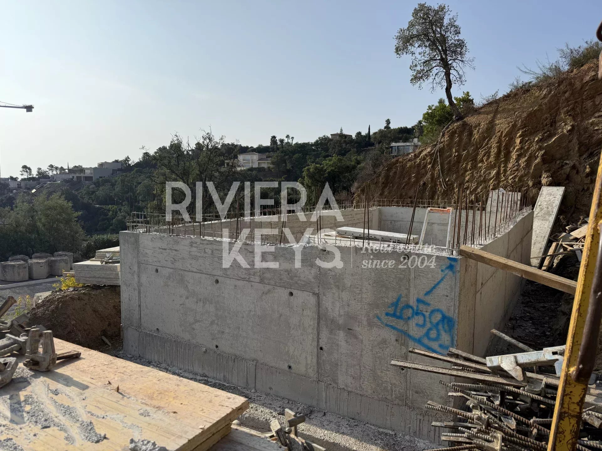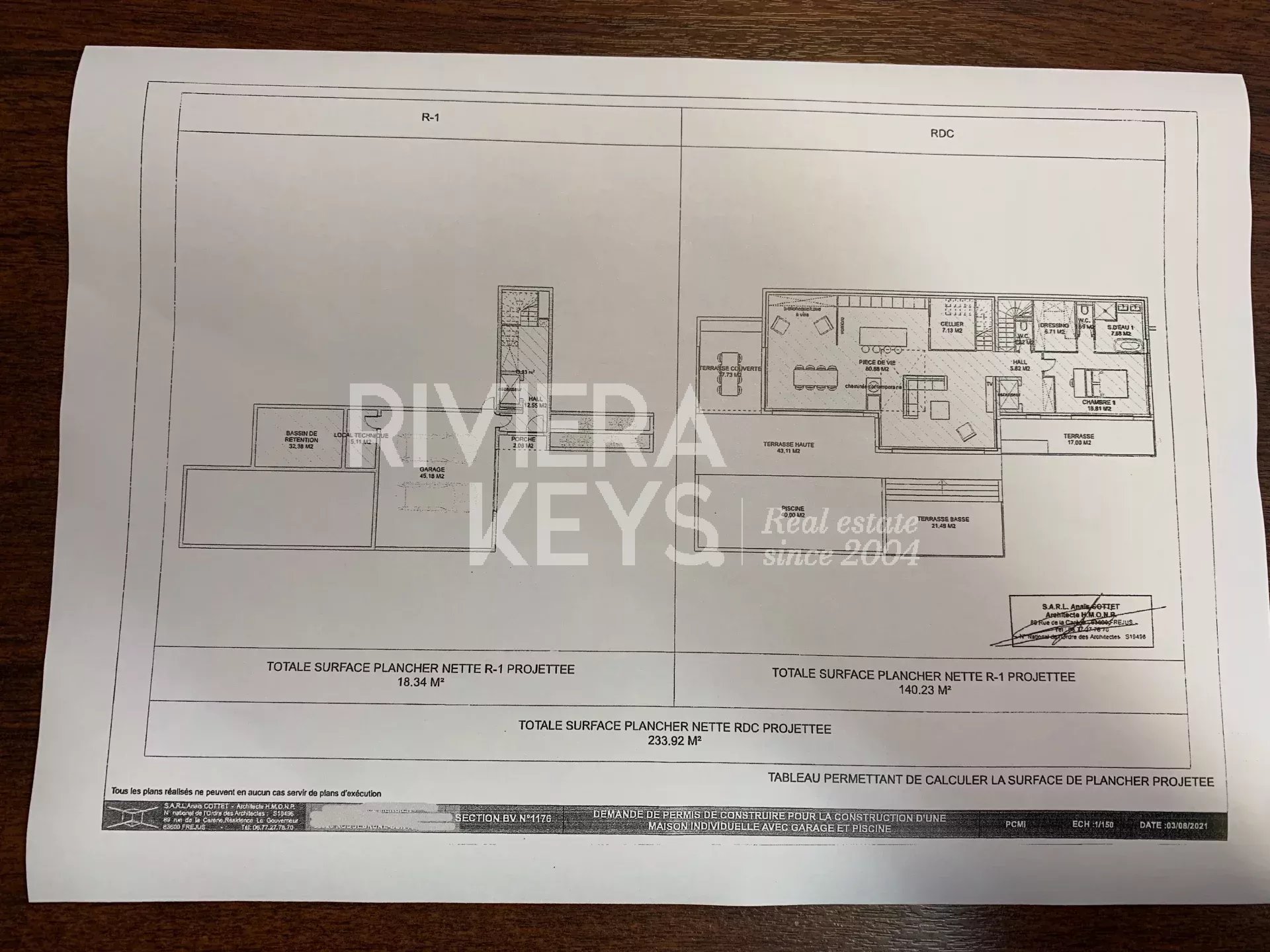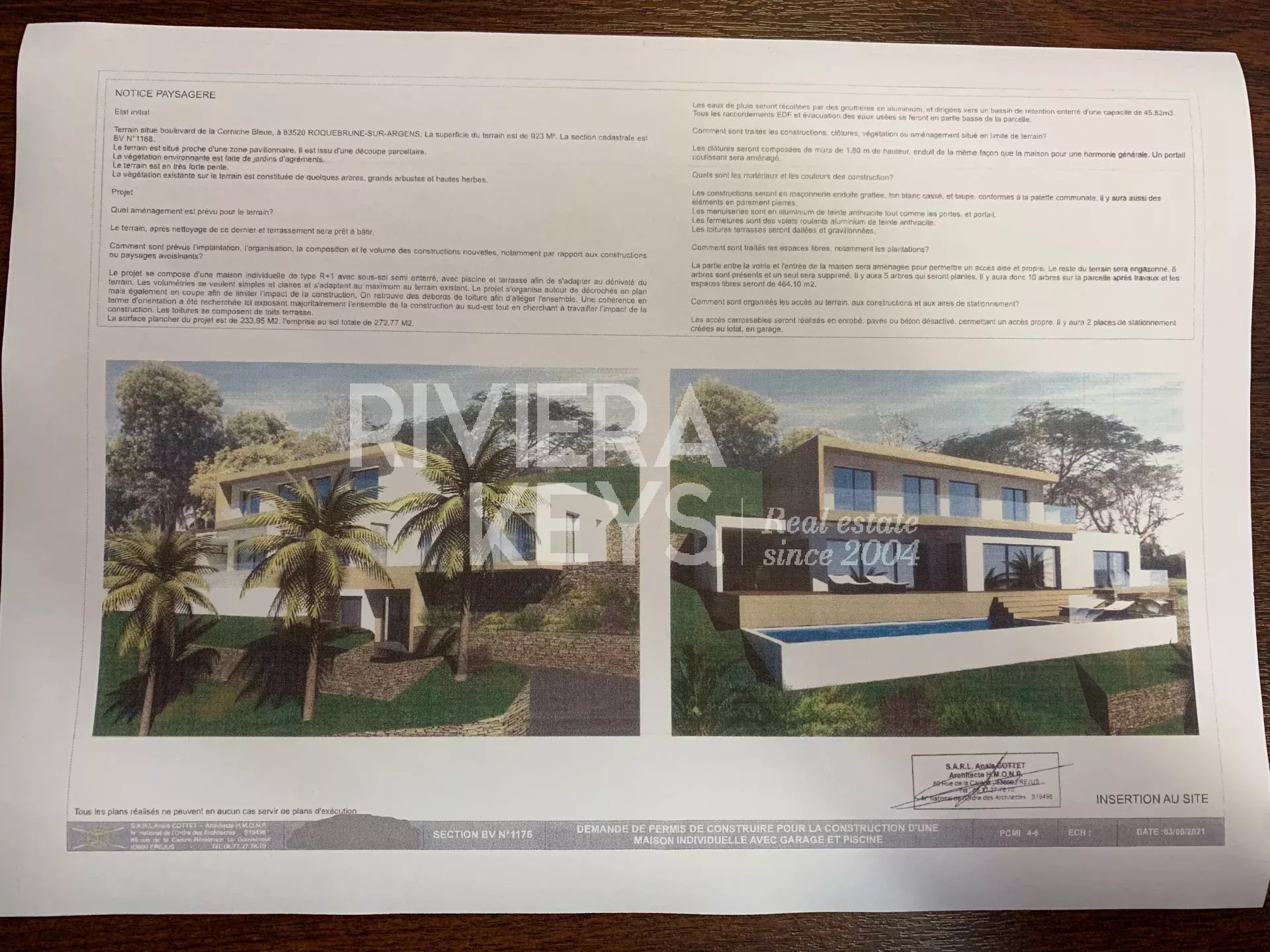 På en tomt på 923 m² planeras ett hus i Californian-stil på 233,92 m² netto boyta, med bygglov beviljat och byggprocessen igång.